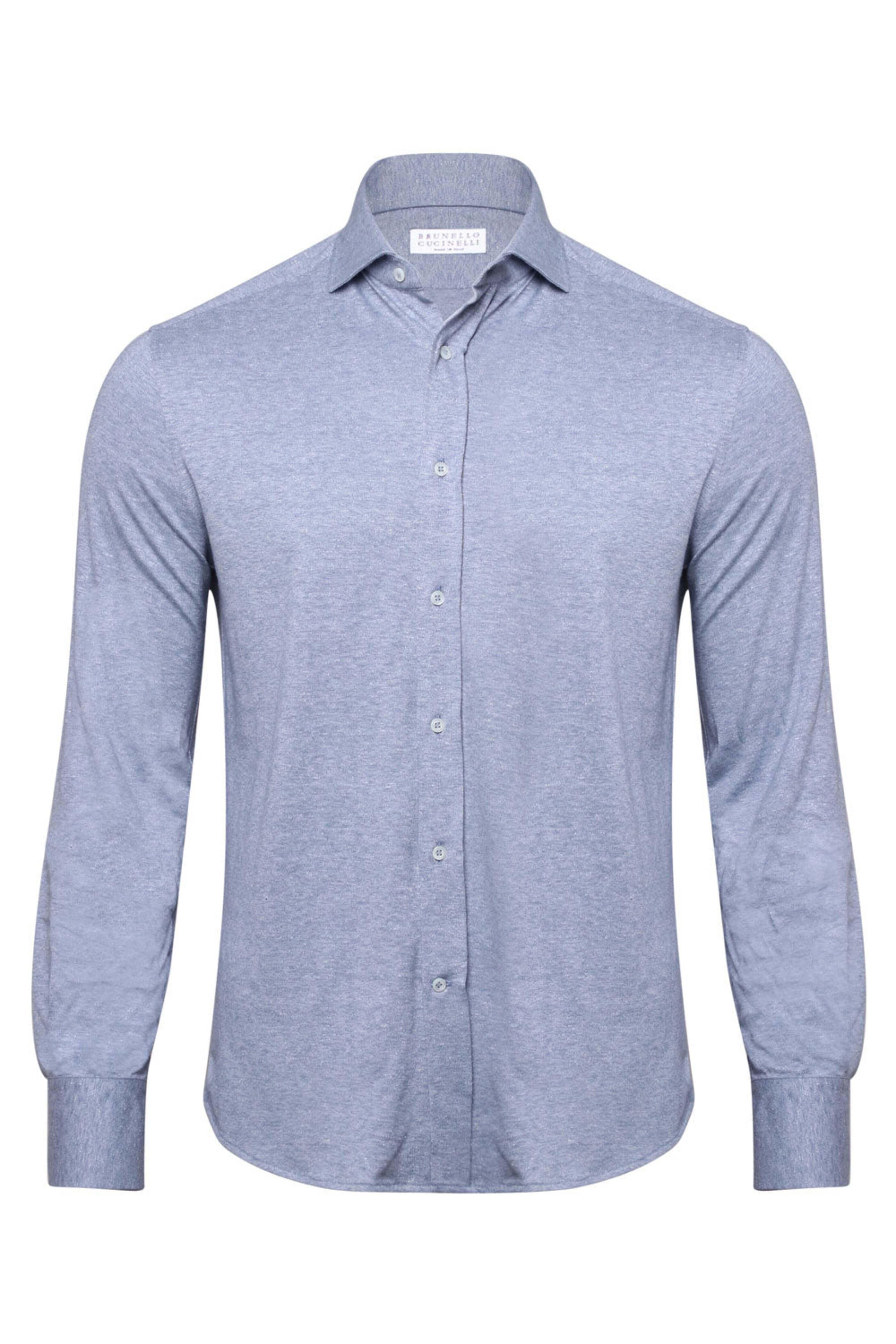 Brunello Cucinelli Celeste Jersey Sportshirt. Spread collar. Button down front. Long sleeves. Double button straight cuffs. Basic fit. Made in Italy. 57% linen, 43% cotton.