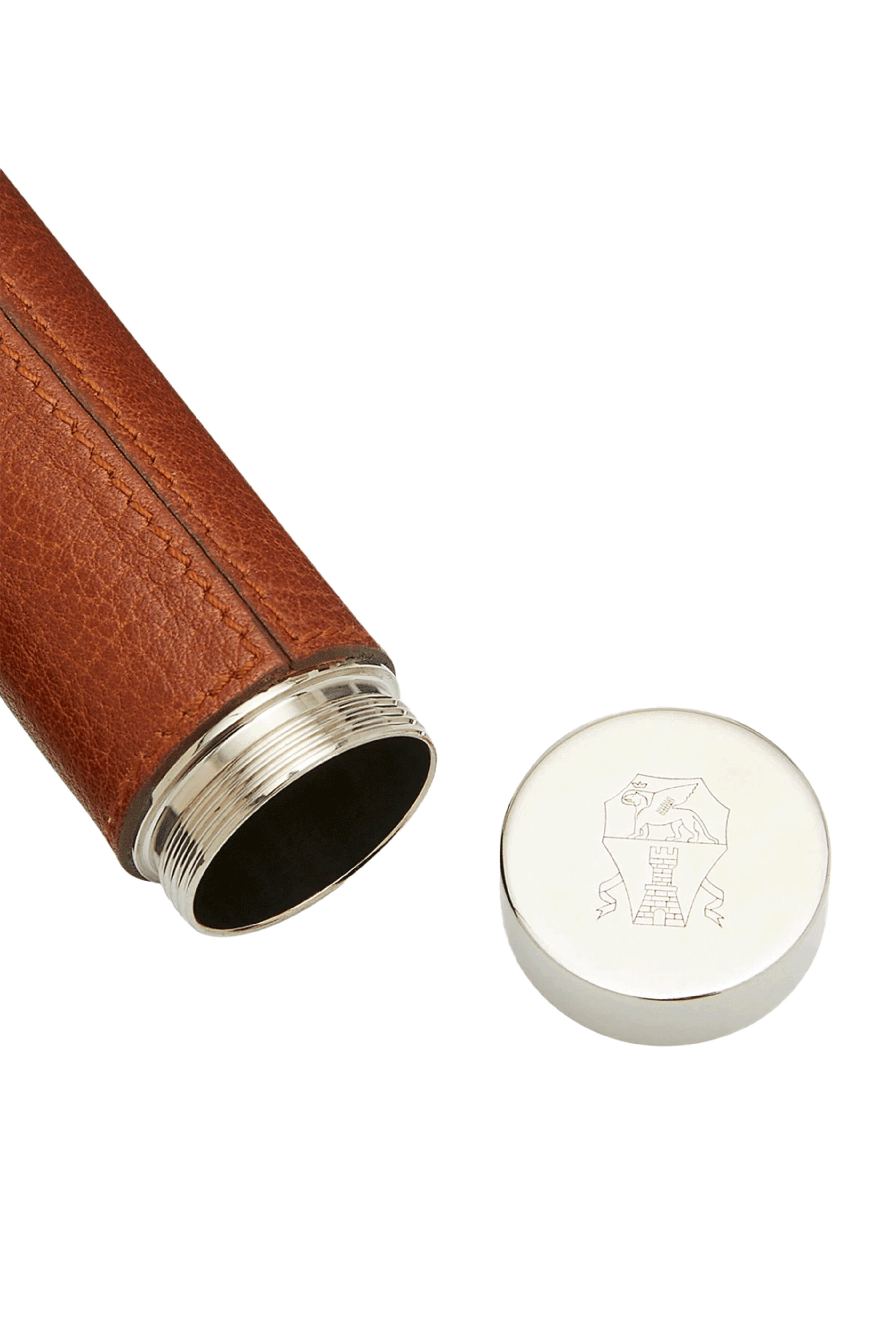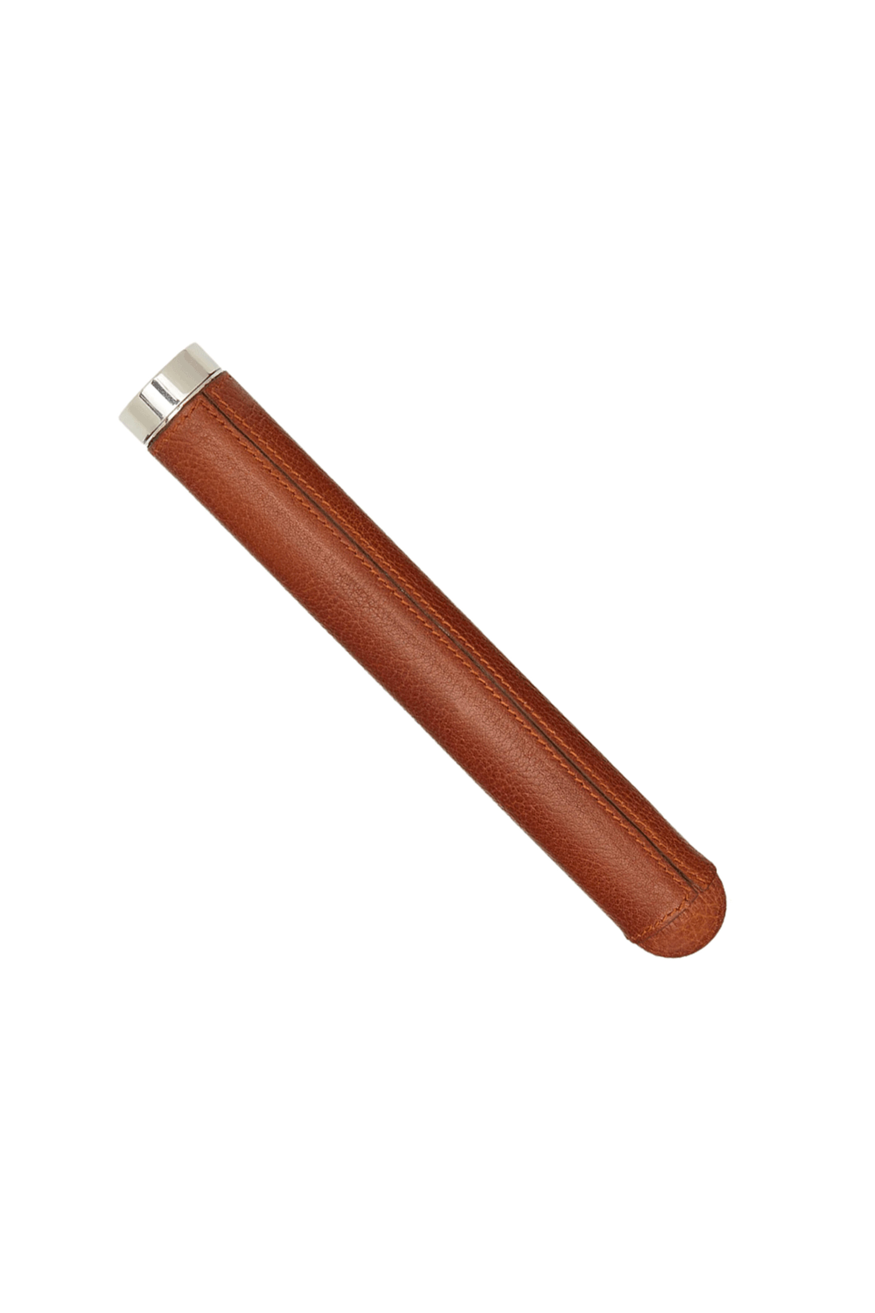 Brunello Cuccinelli Copper Leather Cigar Holder. Steel base. Calfskin leather. Twist-off cap. Engraved Solomeo logo. 1 .2 W x 7.5 H. Made in Italy.