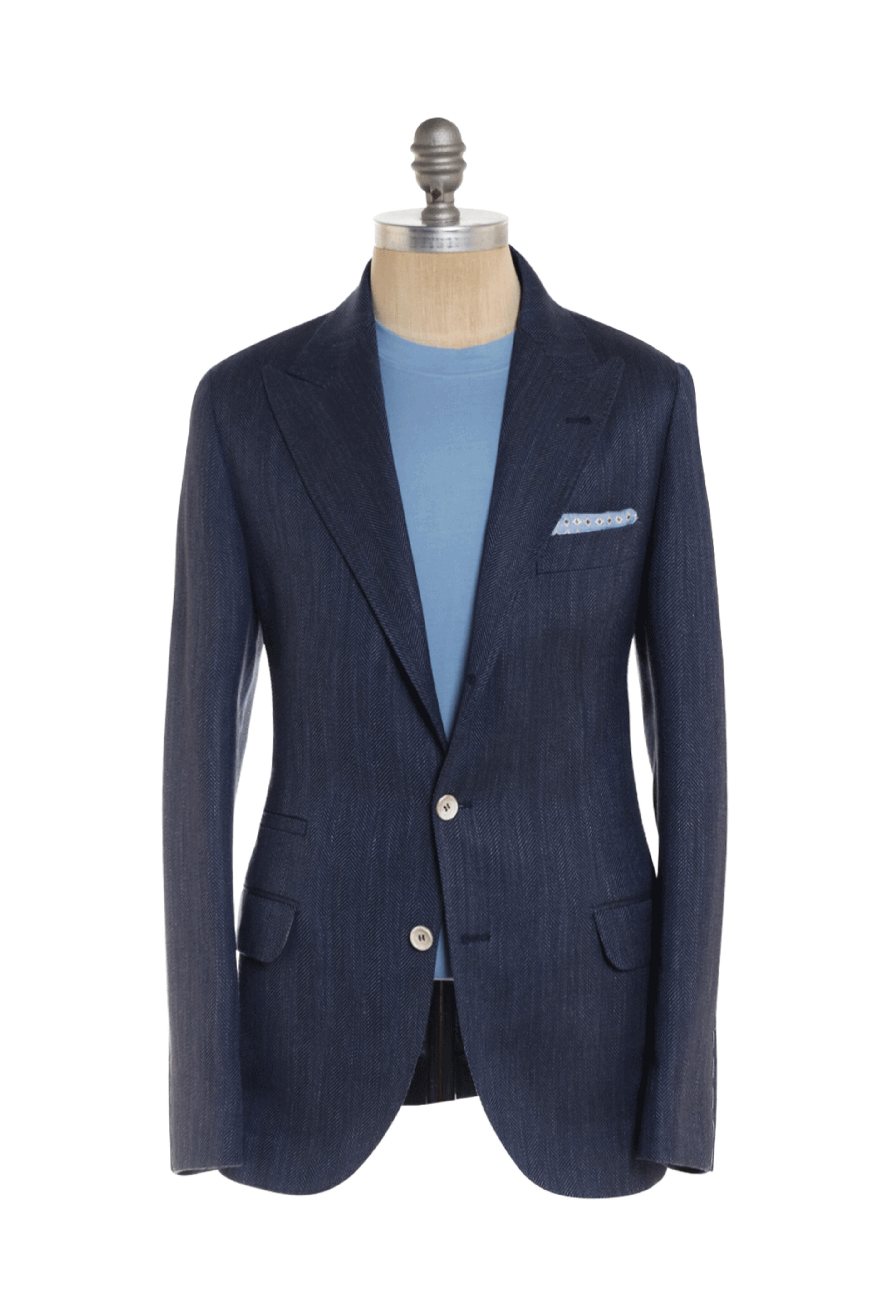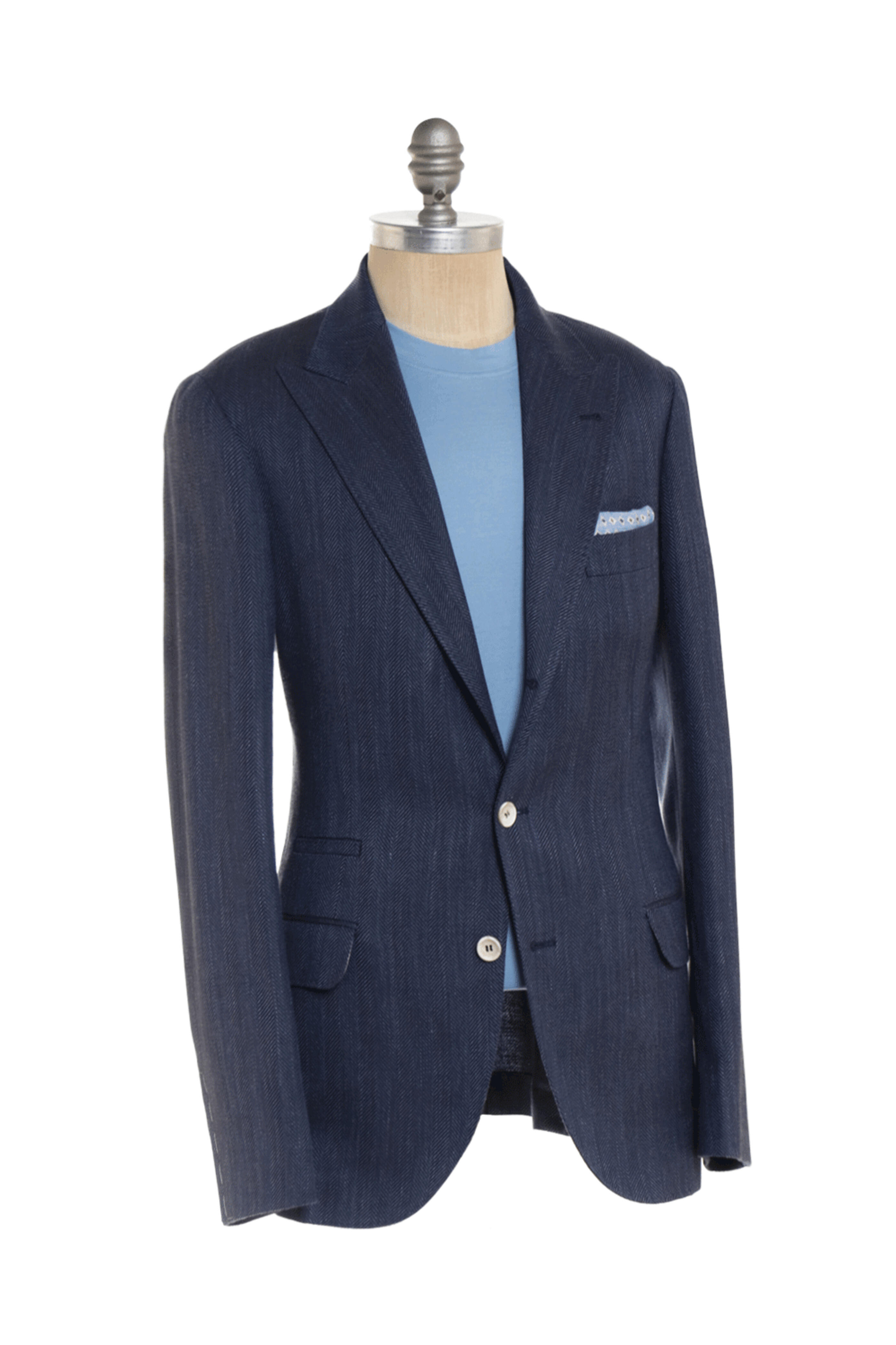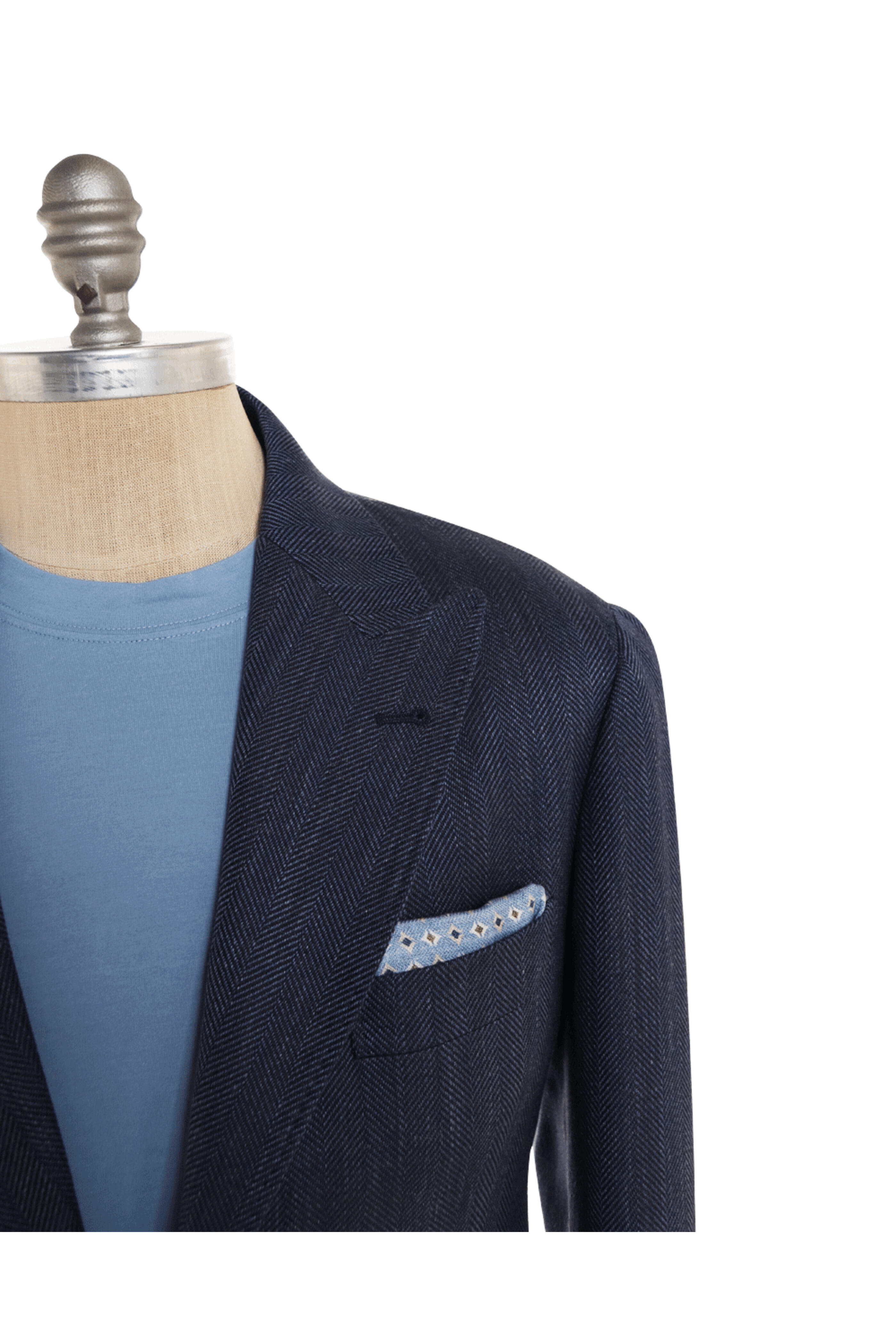- Brunello Cuccinelli Denim Blue Herringbone Wool Blend Sportcoat