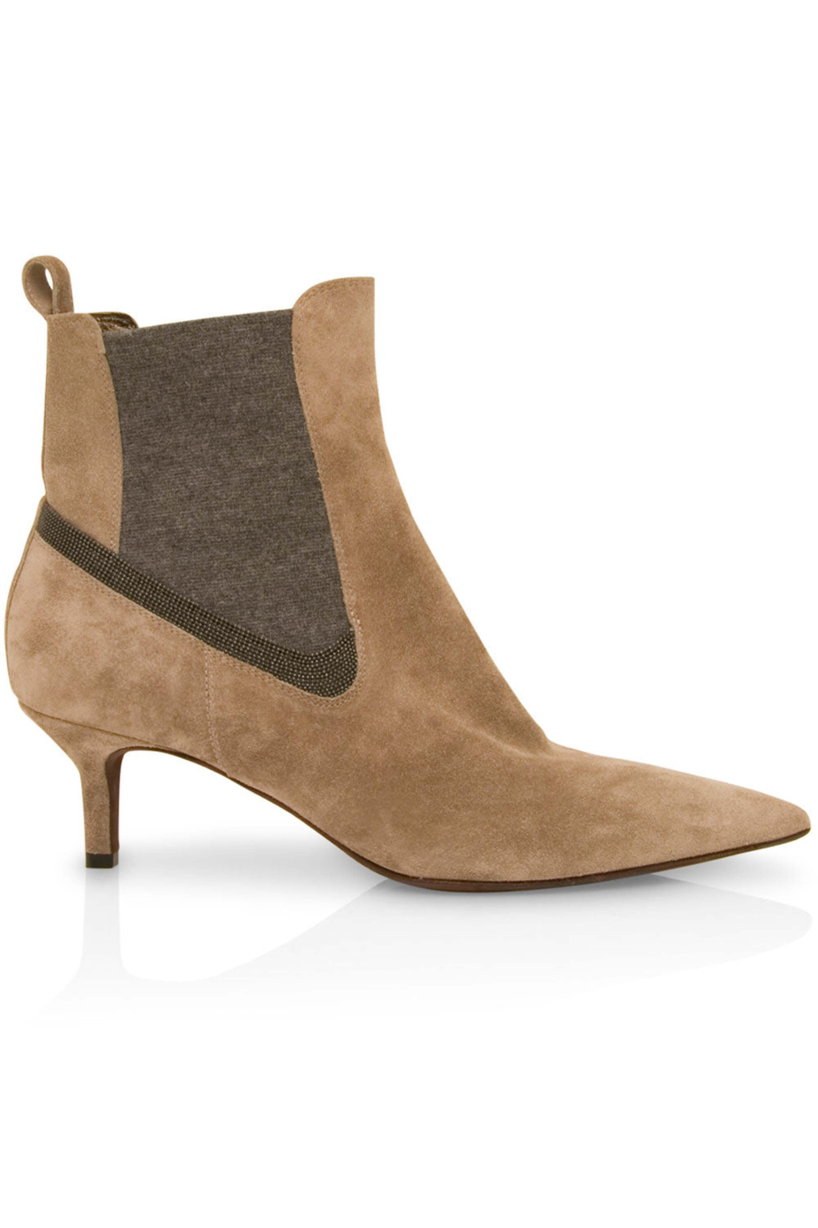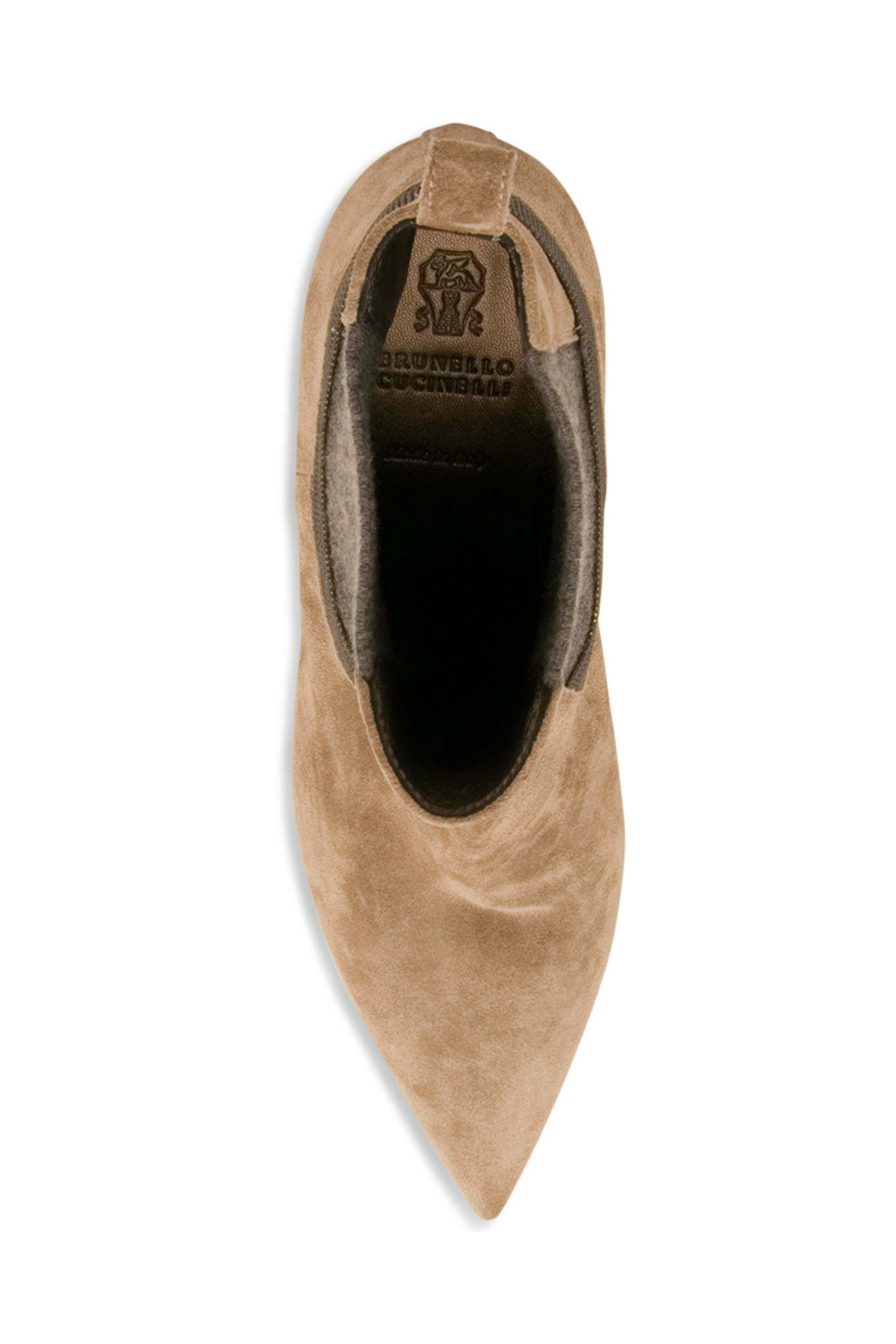- Brunello Cucinelli Light Taupe Pointed Toe Suede Bootie