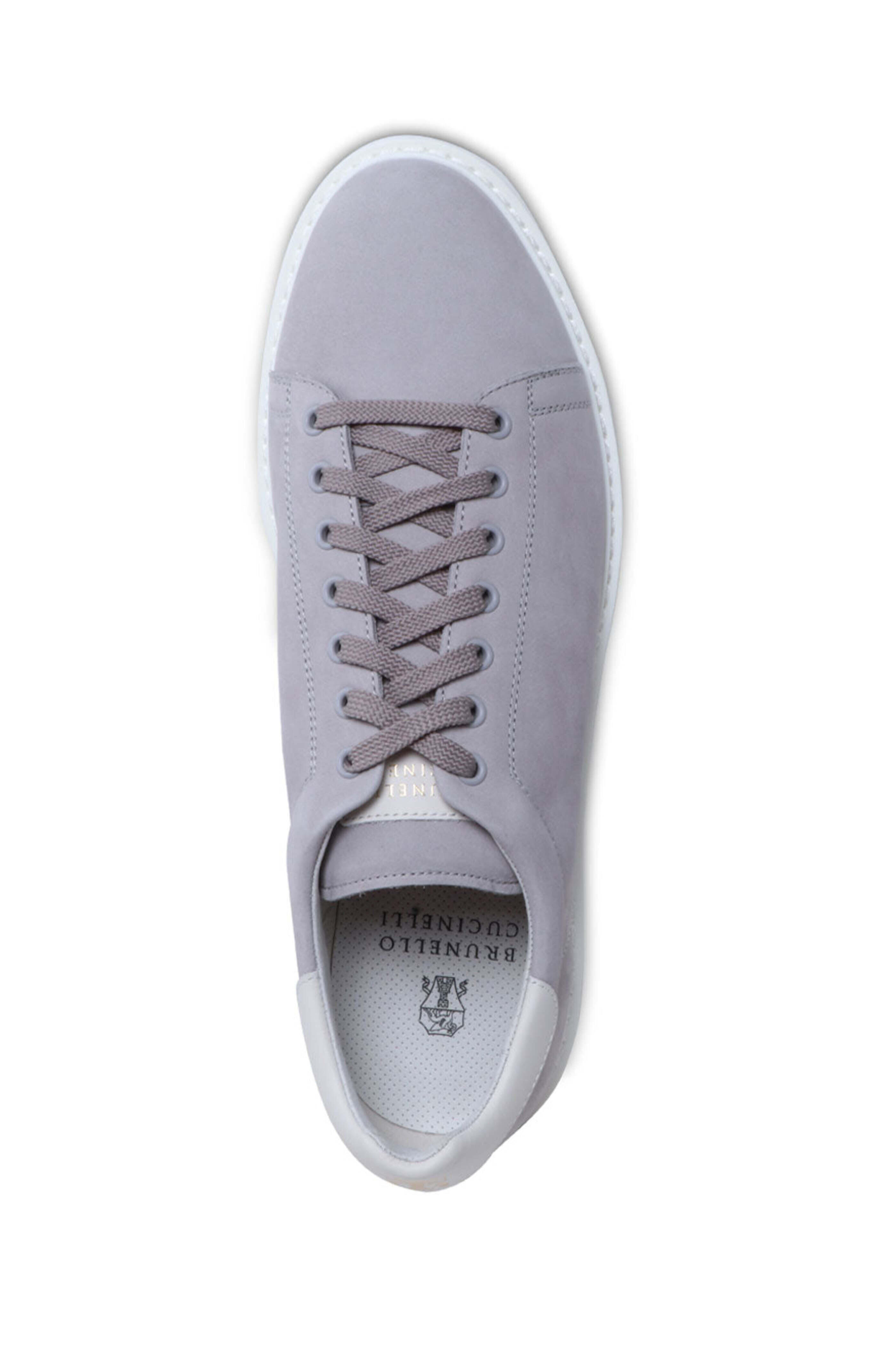 Suede upper. Almond closed toe. Lace-up vamp. Flat fabric laces. Solomeo logo on heel. Leather lining. Lightweight micro rubber outsole. TPU rubber tread. Made in Italy.