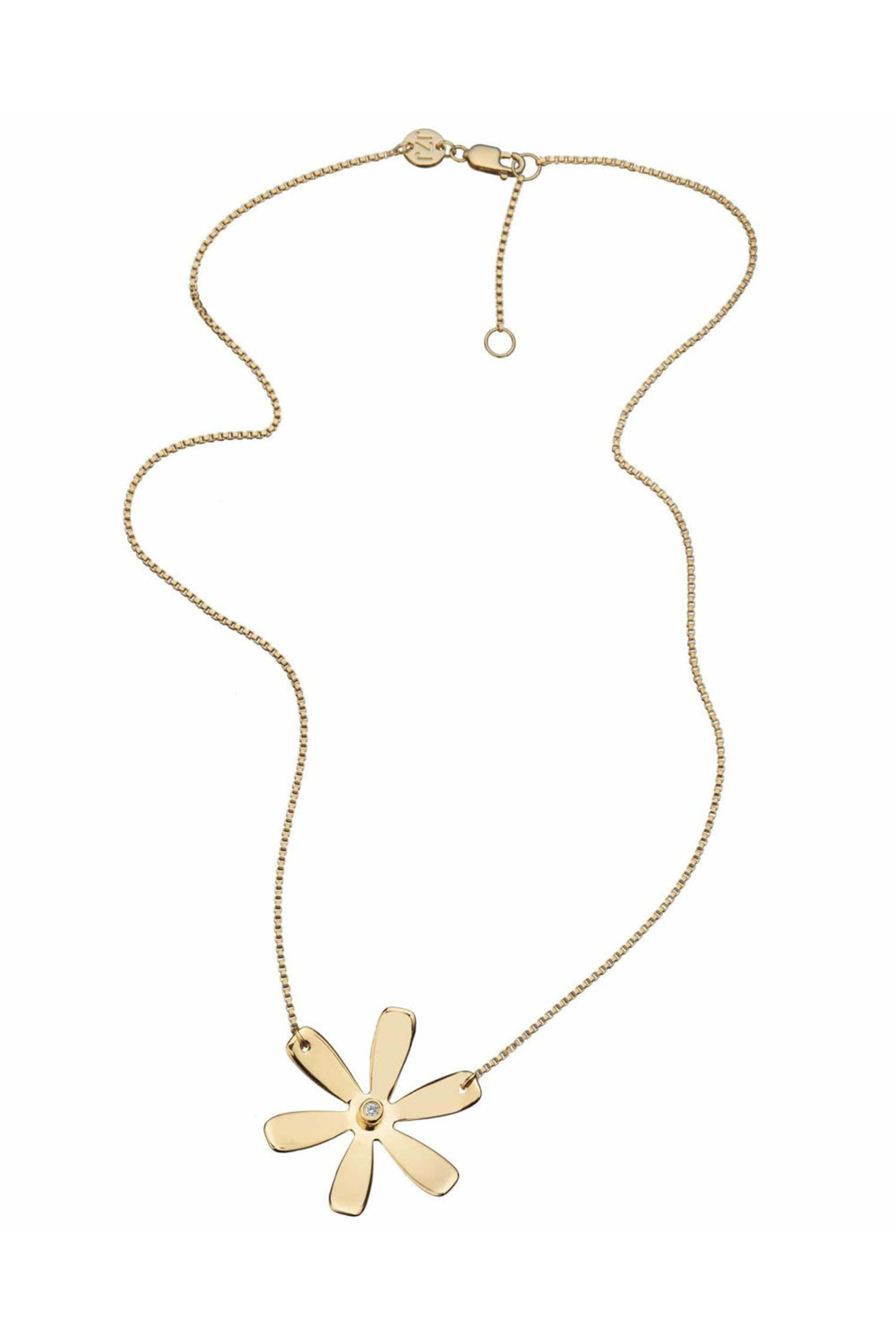 Jennifer Zeuner Paula Necklace. 14k yellow gold vermeil. Diamond. Flower motif. Chain: 15/16 L. Flower: 1 L. Adjustable lobster claw closure.