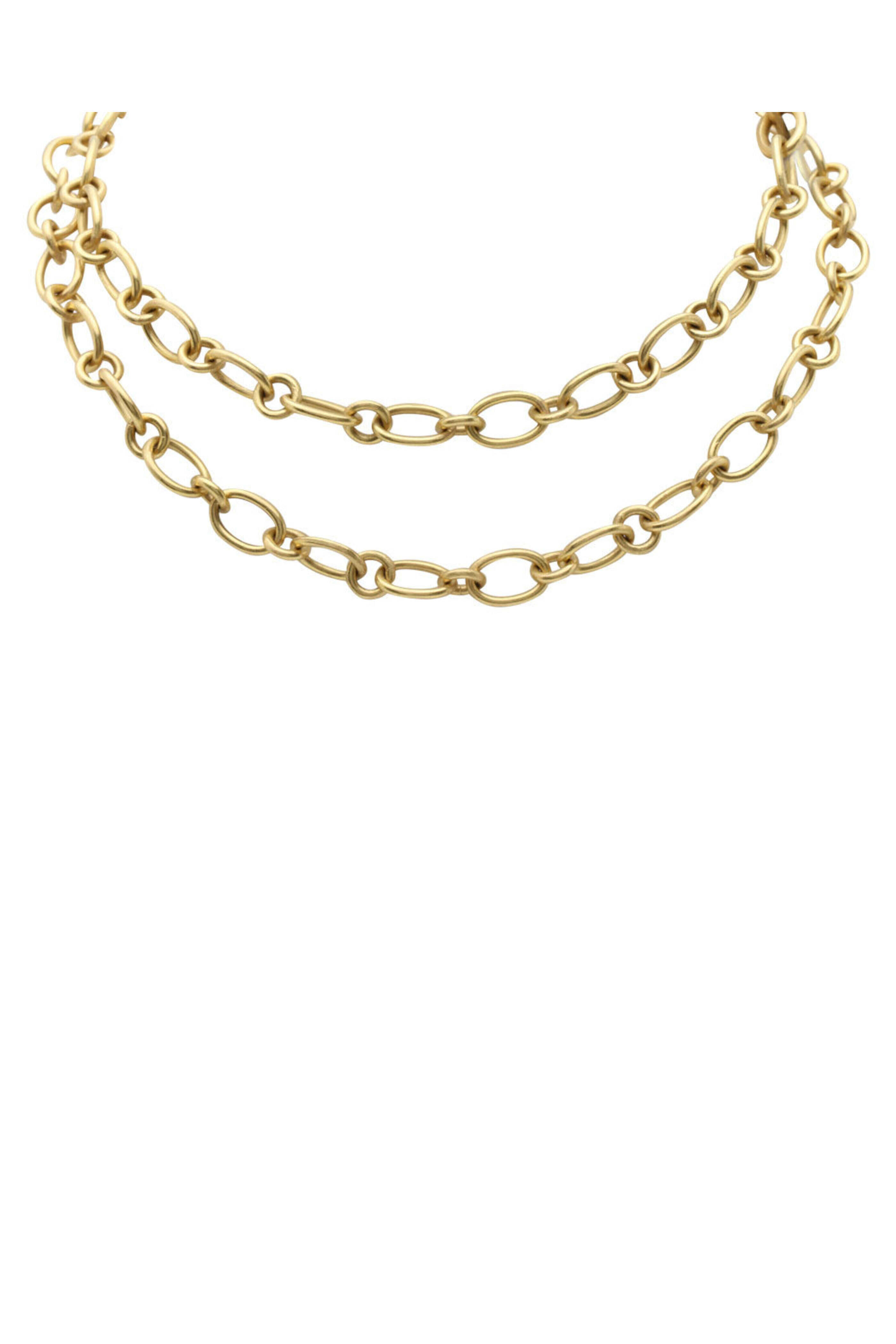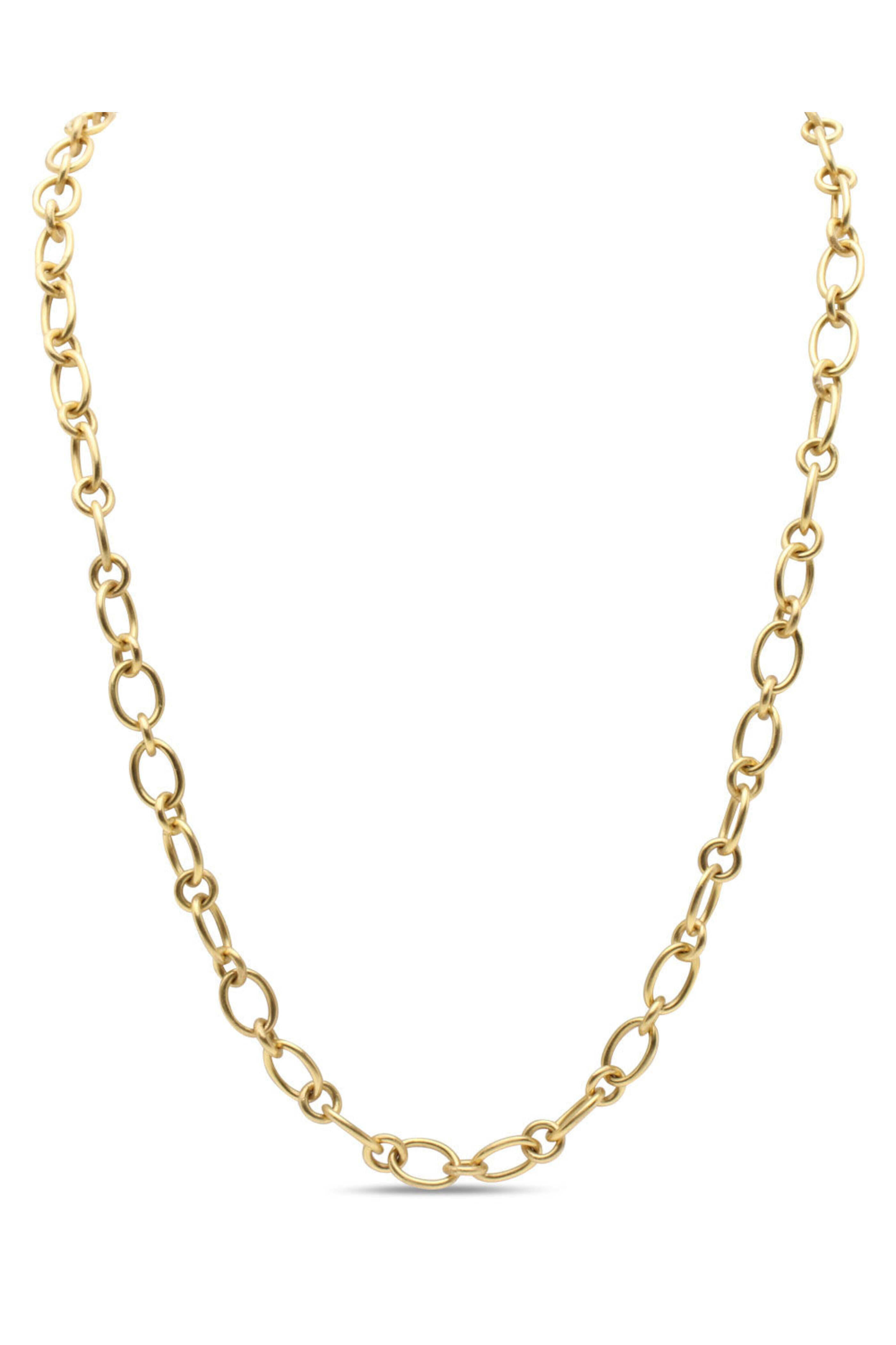 Loren Nicole Cable Link Necklace. 22k yellow gold. Cable link. Smooth finish. 27 L. Hook and eye clasp. Designed and handmade in California.
