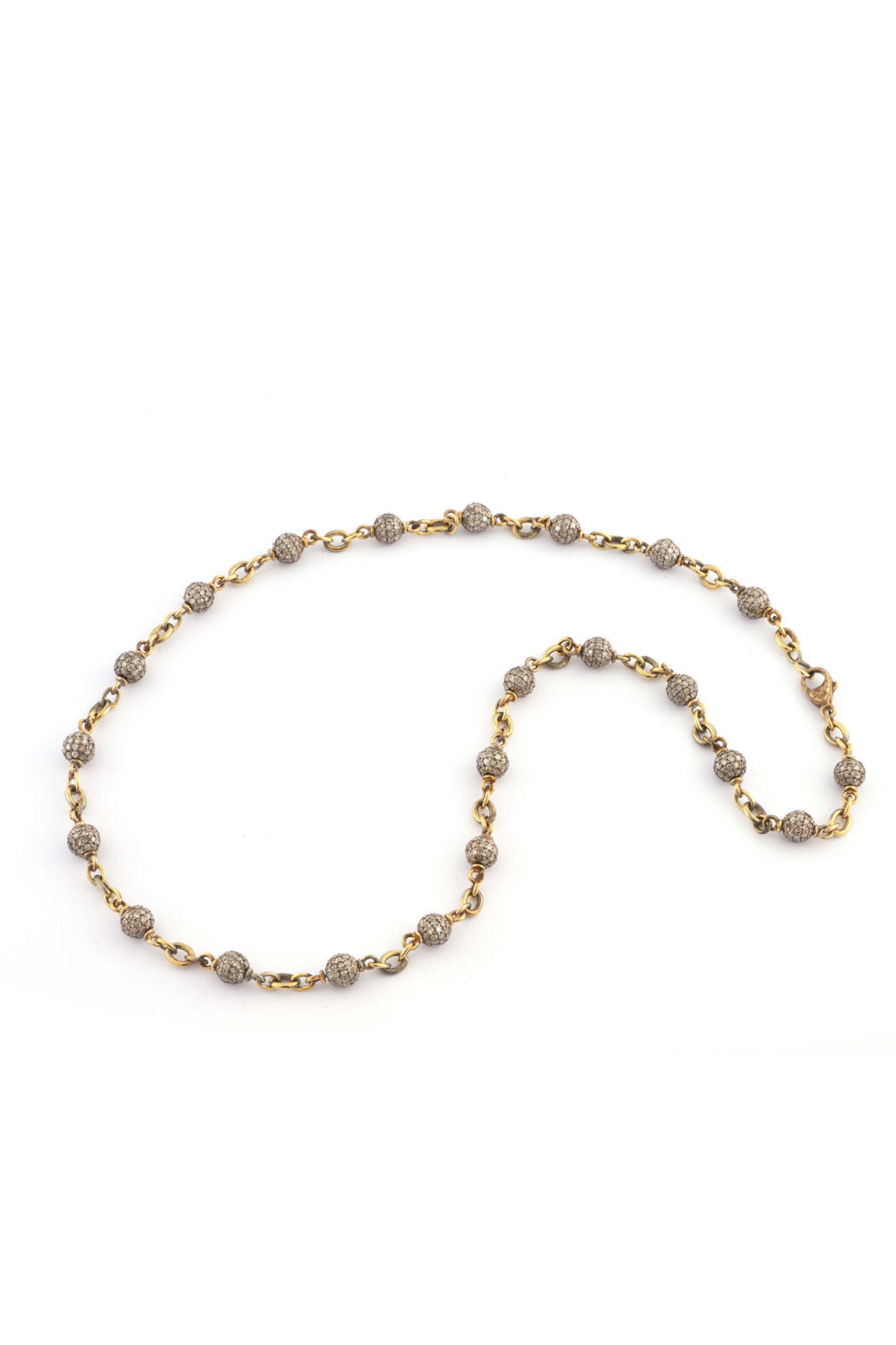 Sylva & Cie Diamond Bead Necklace. 18k yellow gold. Diamond. Alternating diamond beads with yellow gold links. 6mm beads. 18 L. Lobster claw clasp. Made in USA.