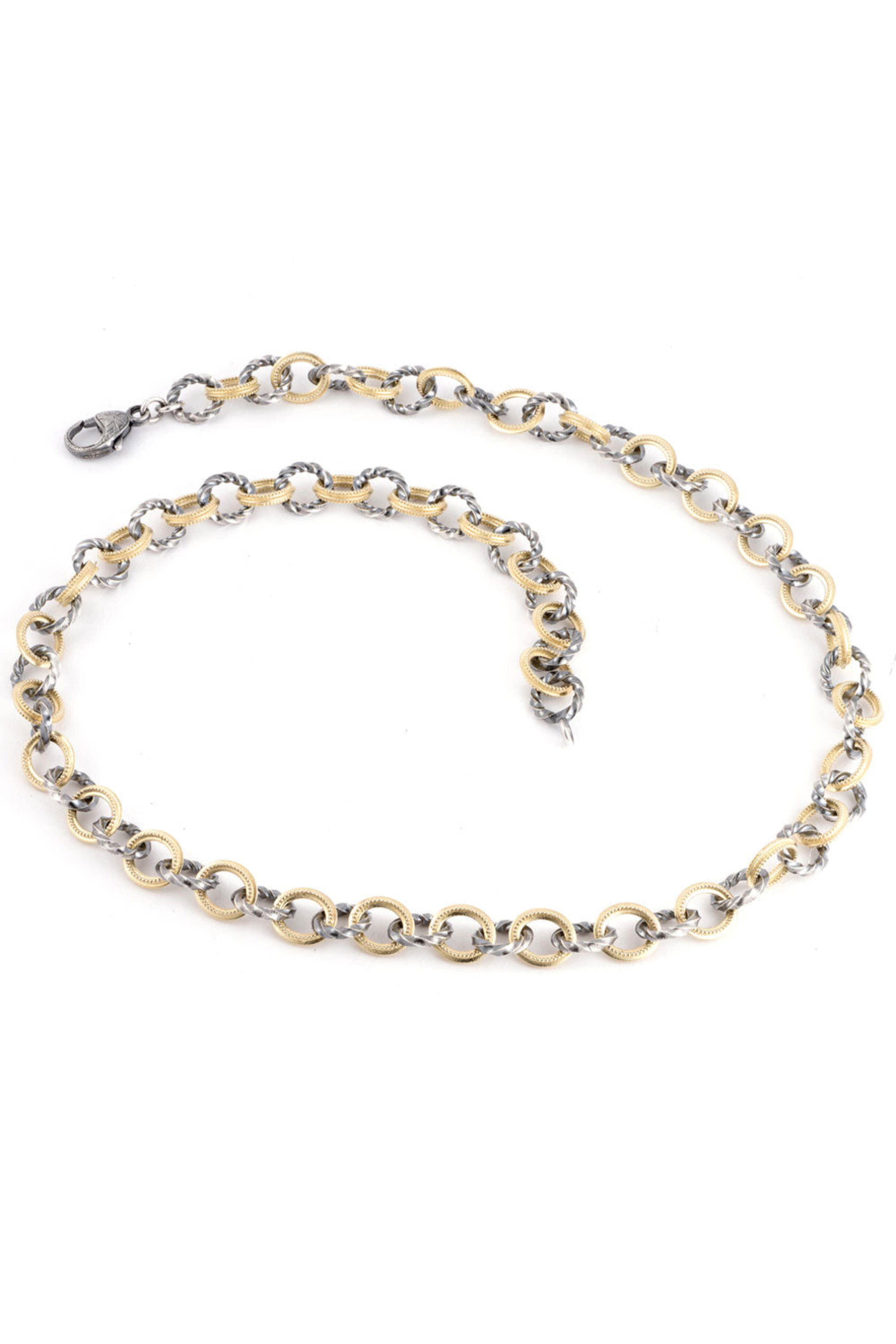 Sylva & Cie Pirate Chain Platinite. 18k gold. Sterling silver. Chain style necklace. Lobster claw clasps. 32" L. Made in the USA.