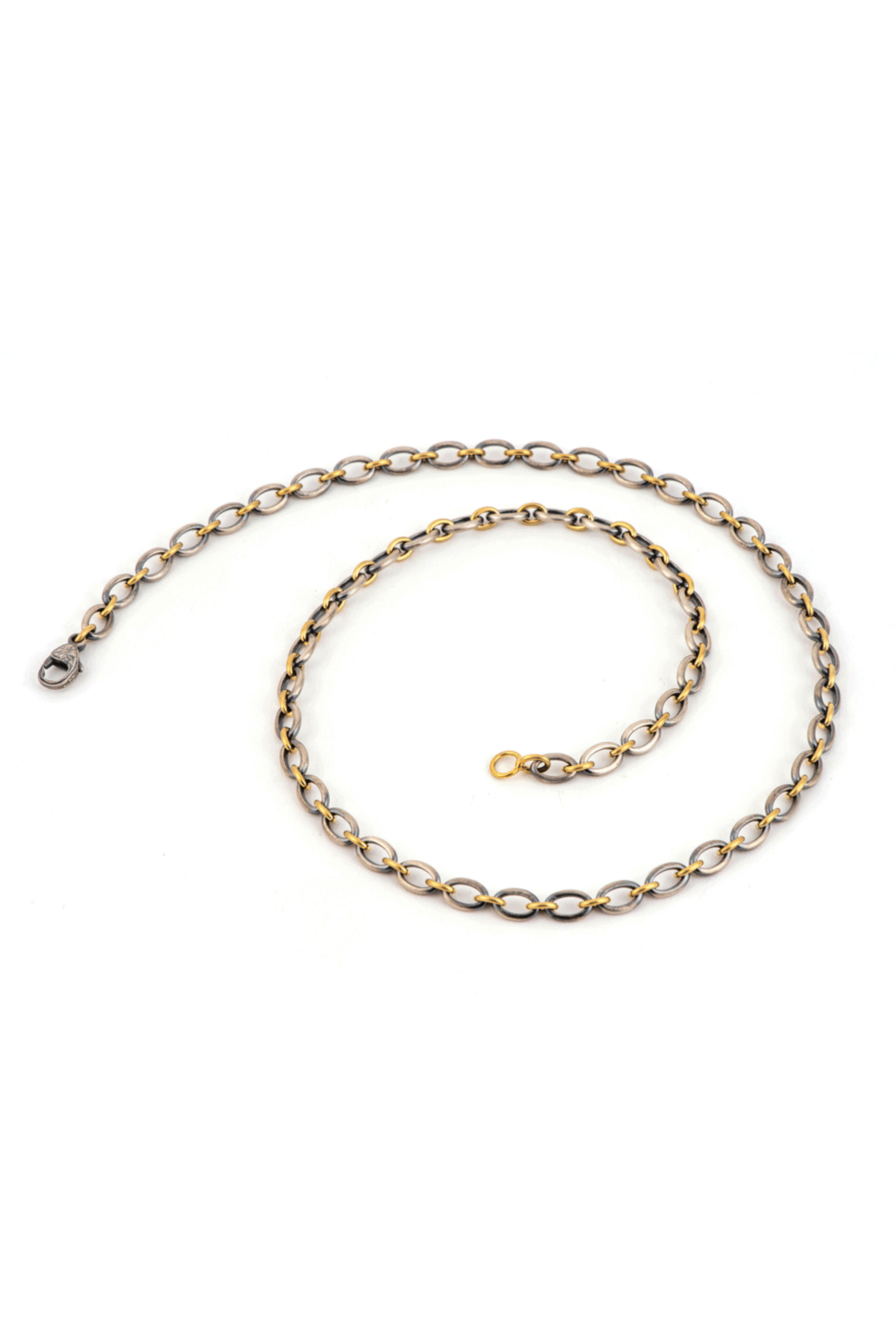 Sylva & Cie Two Tone Link Chain Necklace. 18k yellow gold. Platinum. Link chain. Two tone design. Lobster claw clasps. Made in the USA.