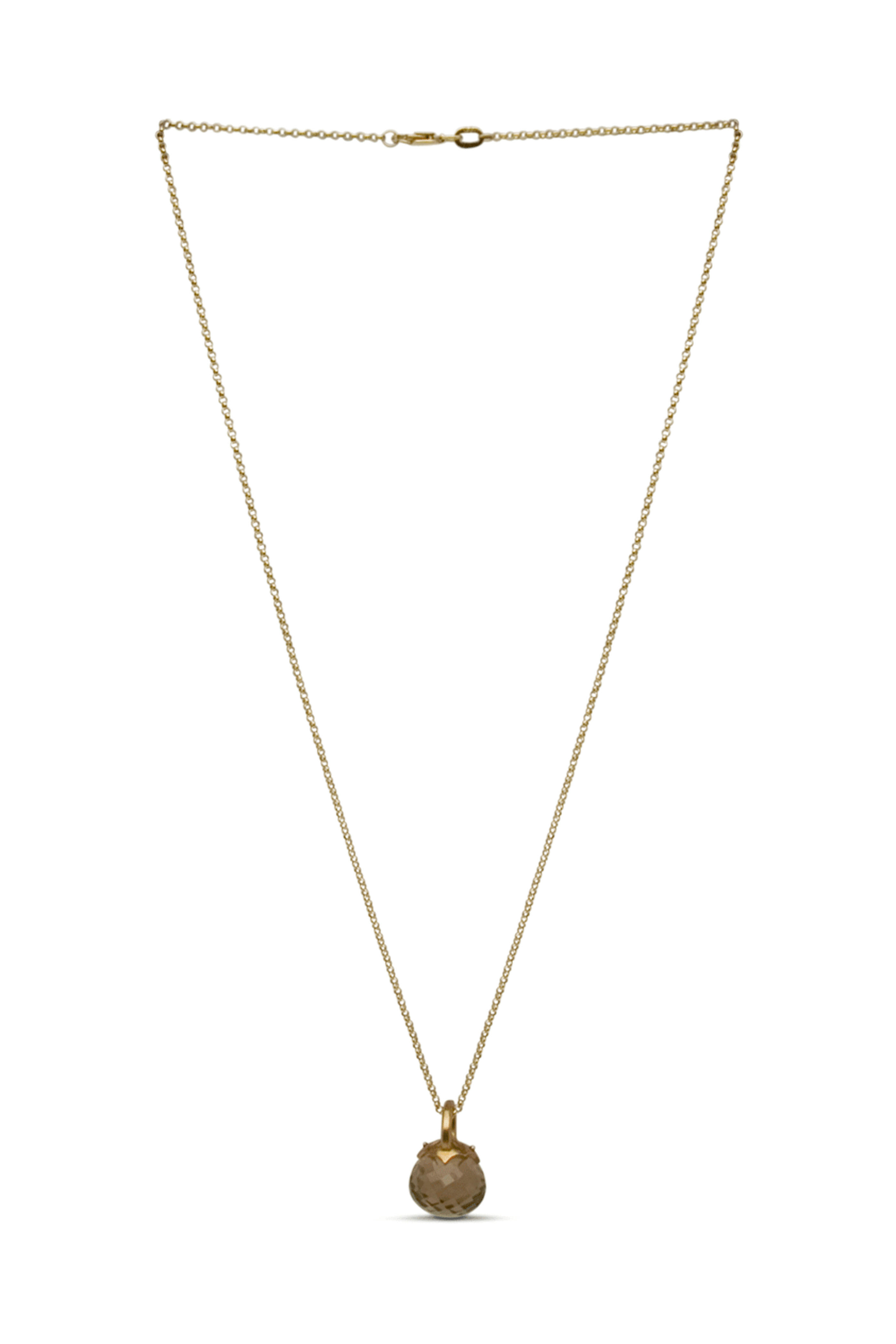Carla Rockmore 18k Yellow Gold Bell Jar Necklace. 18k yellow gold. Smokey topaz. 0.5 H x 0.5 W pendant. 9 chain length. Lobster claw clasp.