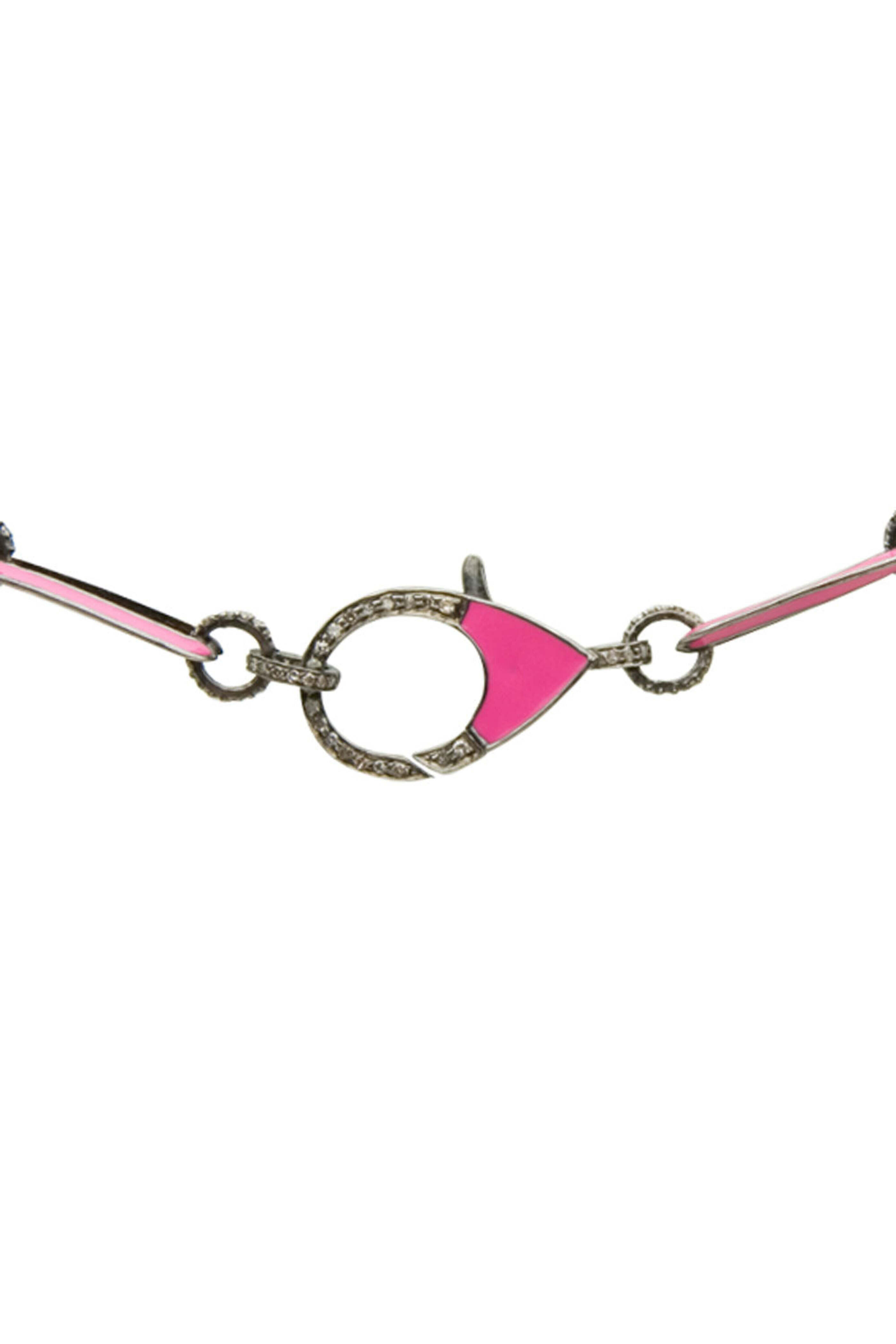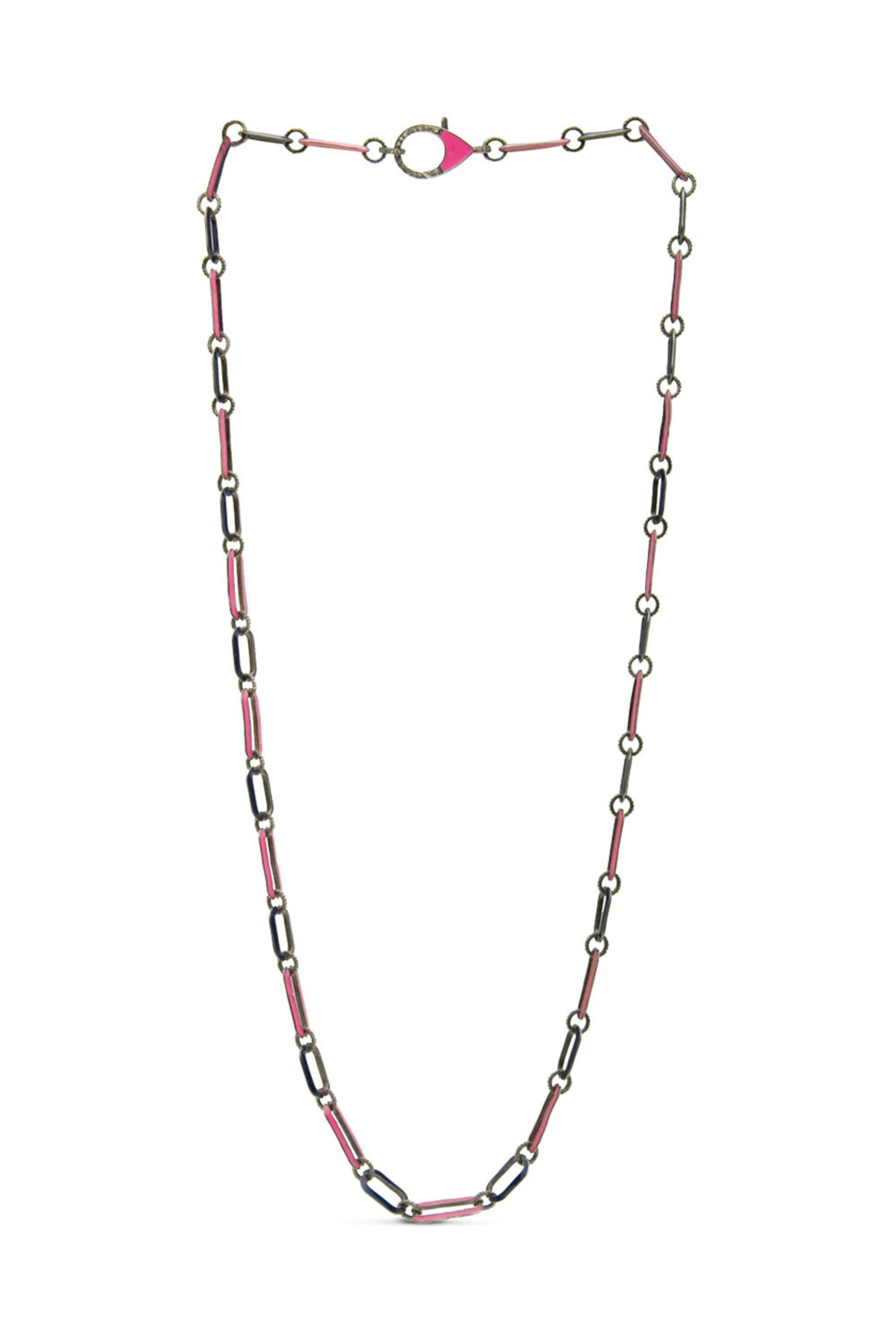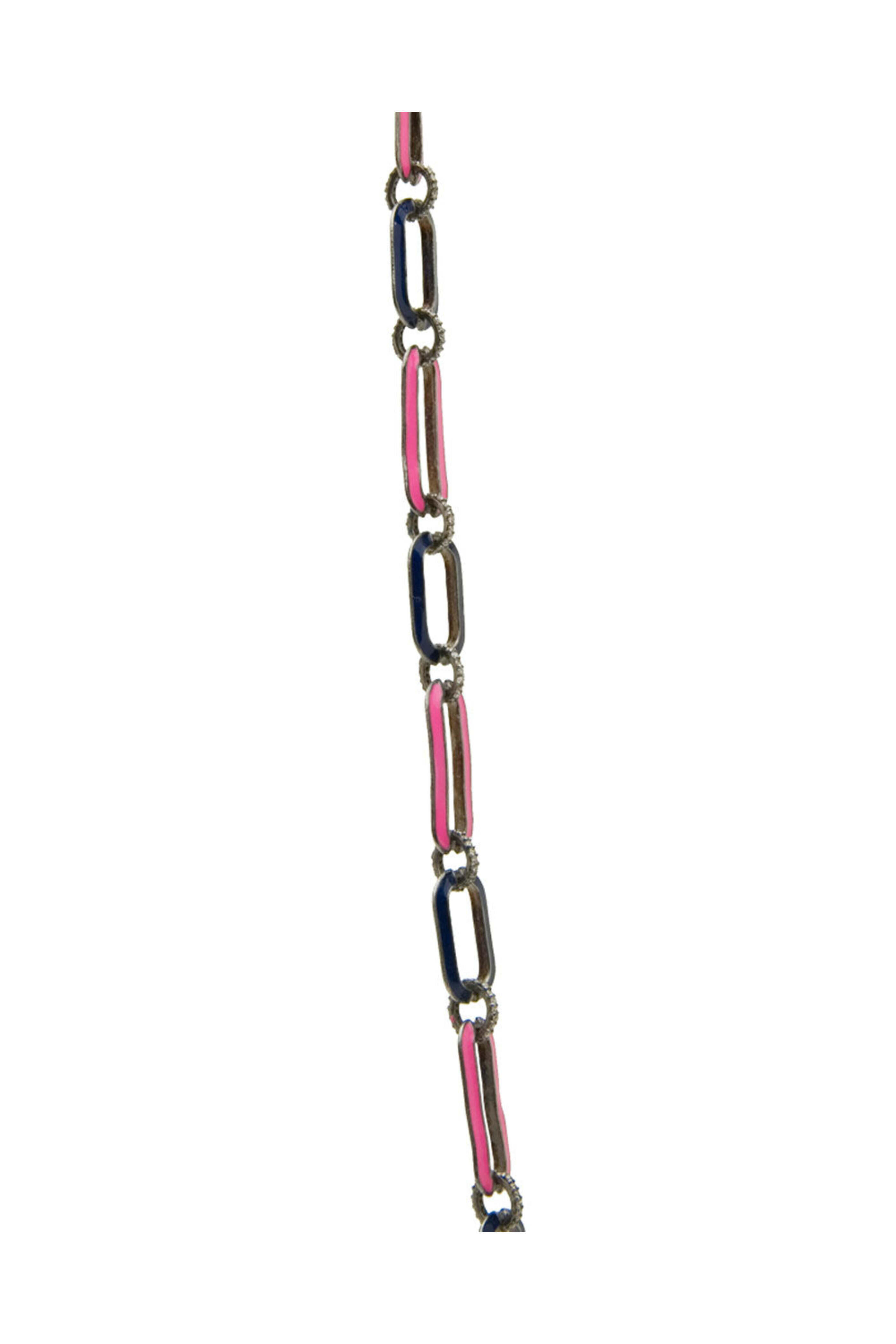 Royal Nomad Pink and Navy Enamel Necklace. Sterling silver. Diamond. Chain link design. Pink and navy enamel. Diamond accent chain links. Diamond embellished closure. Lobster claw clasp.