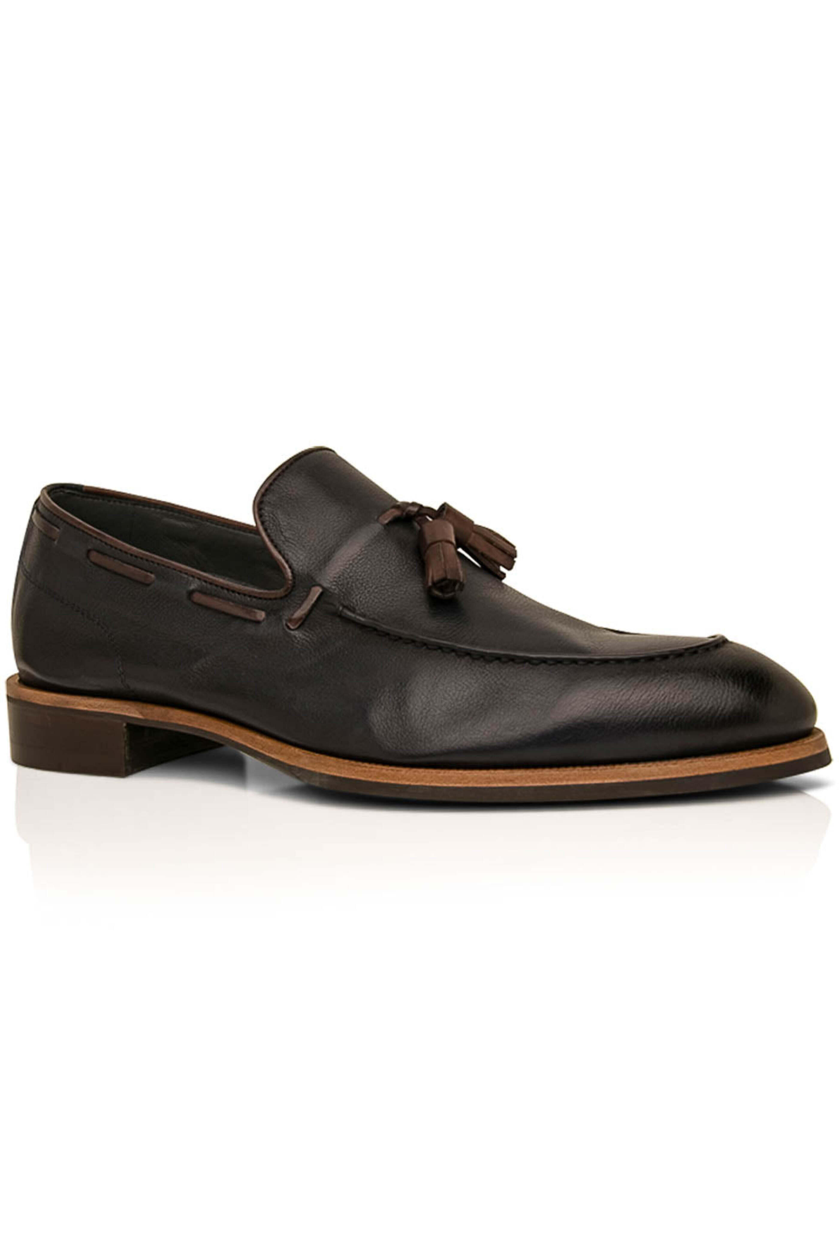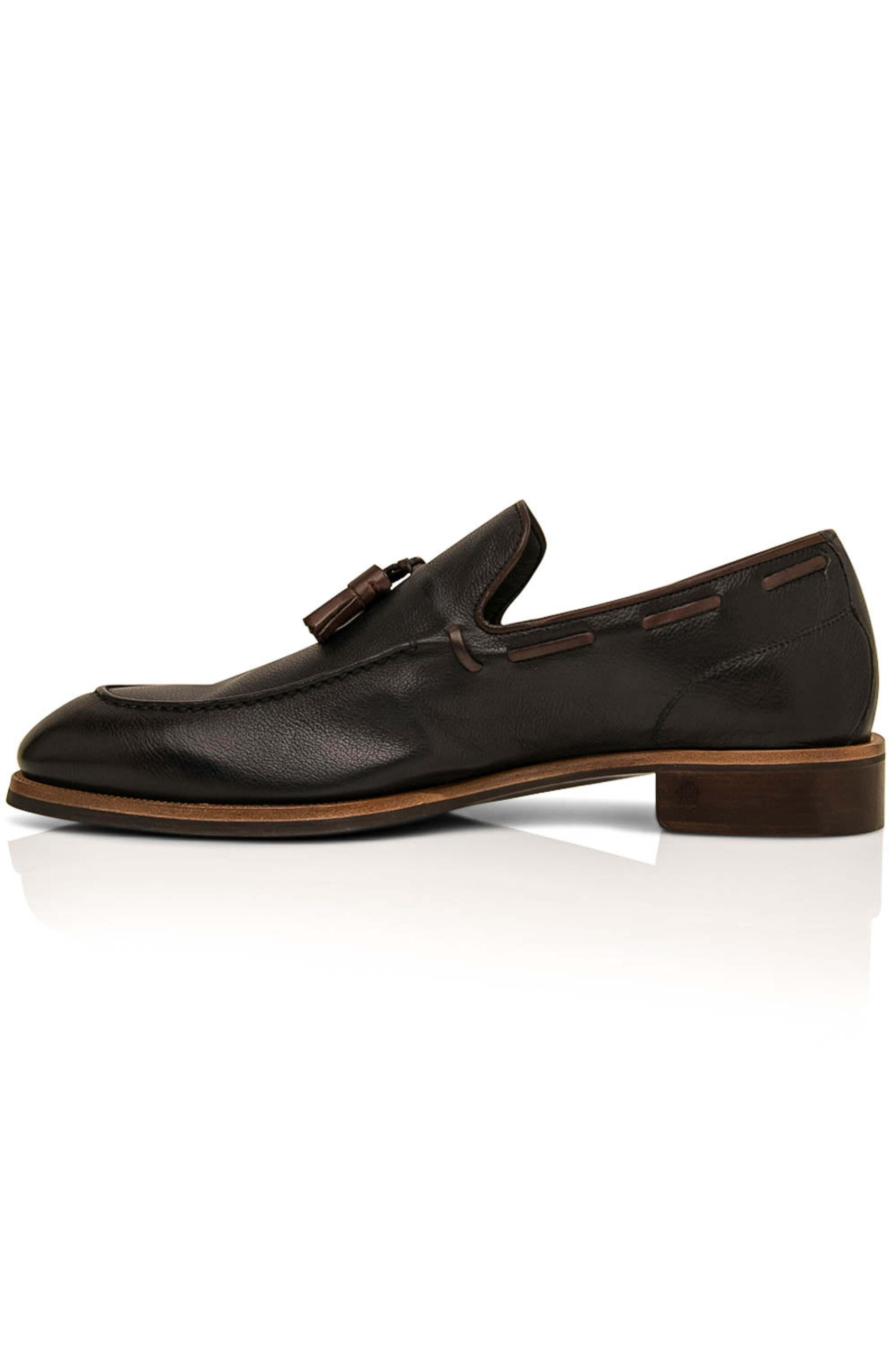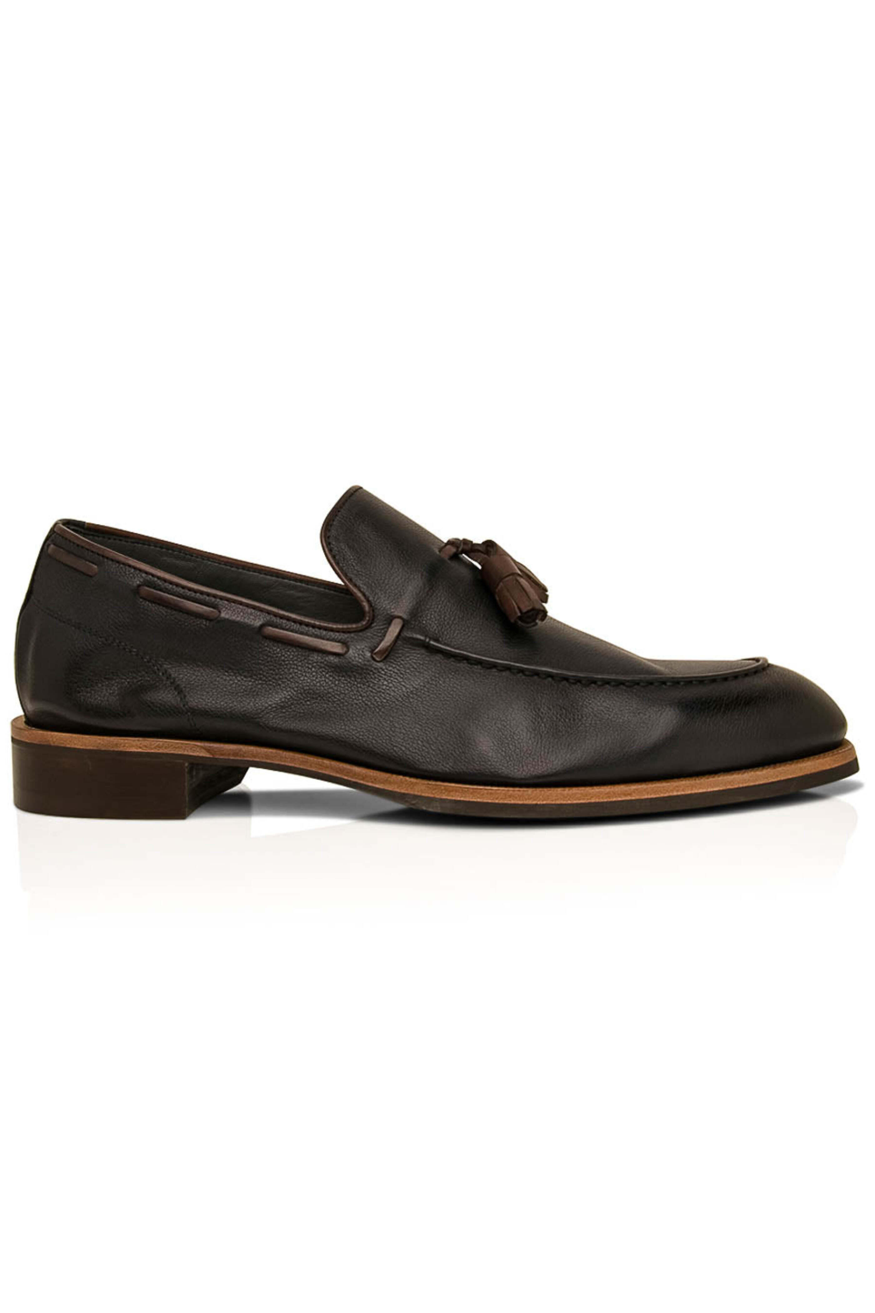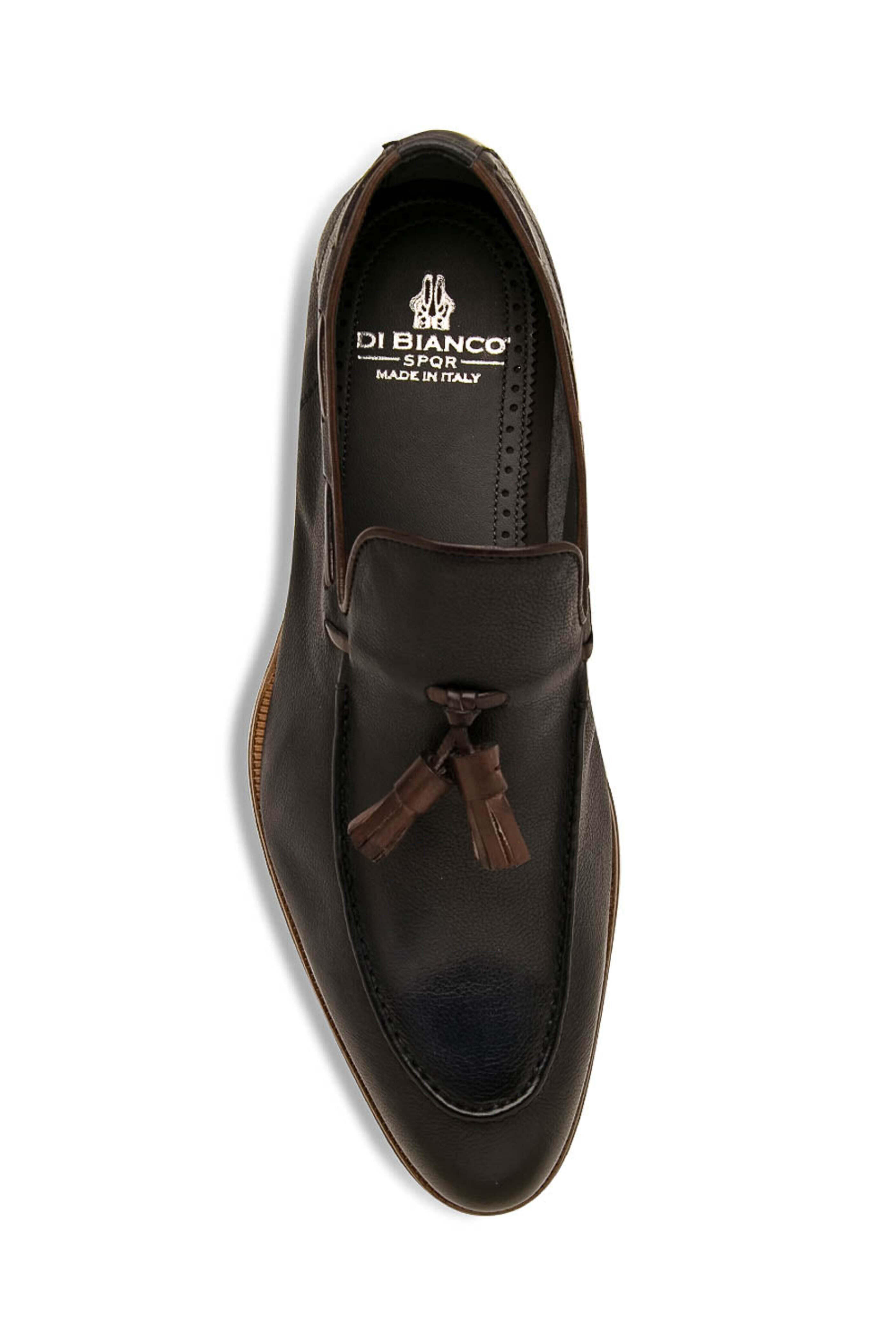 - Bi Bianco Napoli Navy Tassel Loafer Leather upper Slip on style Tassel accents at vamp Almond toe Tonal stitching Leather lining and insole Cushioned footbed Rubber sole Made in Italy