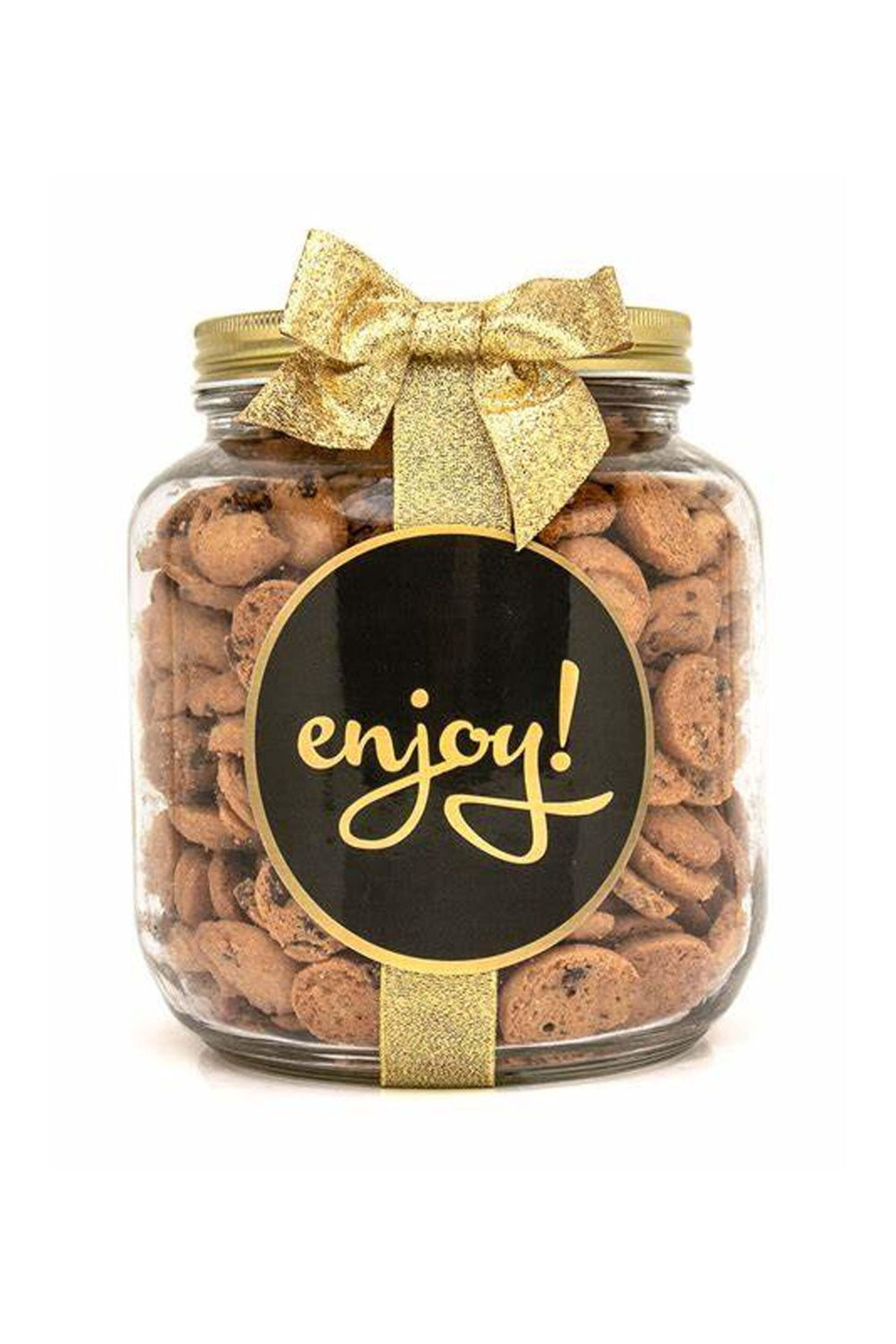 Oh Sugar! Chocolate Chip Bits Half Gallon Jar. Reseal-able Quart or Half Gallon Jar. Mini-Chocolate Chip Cookies.