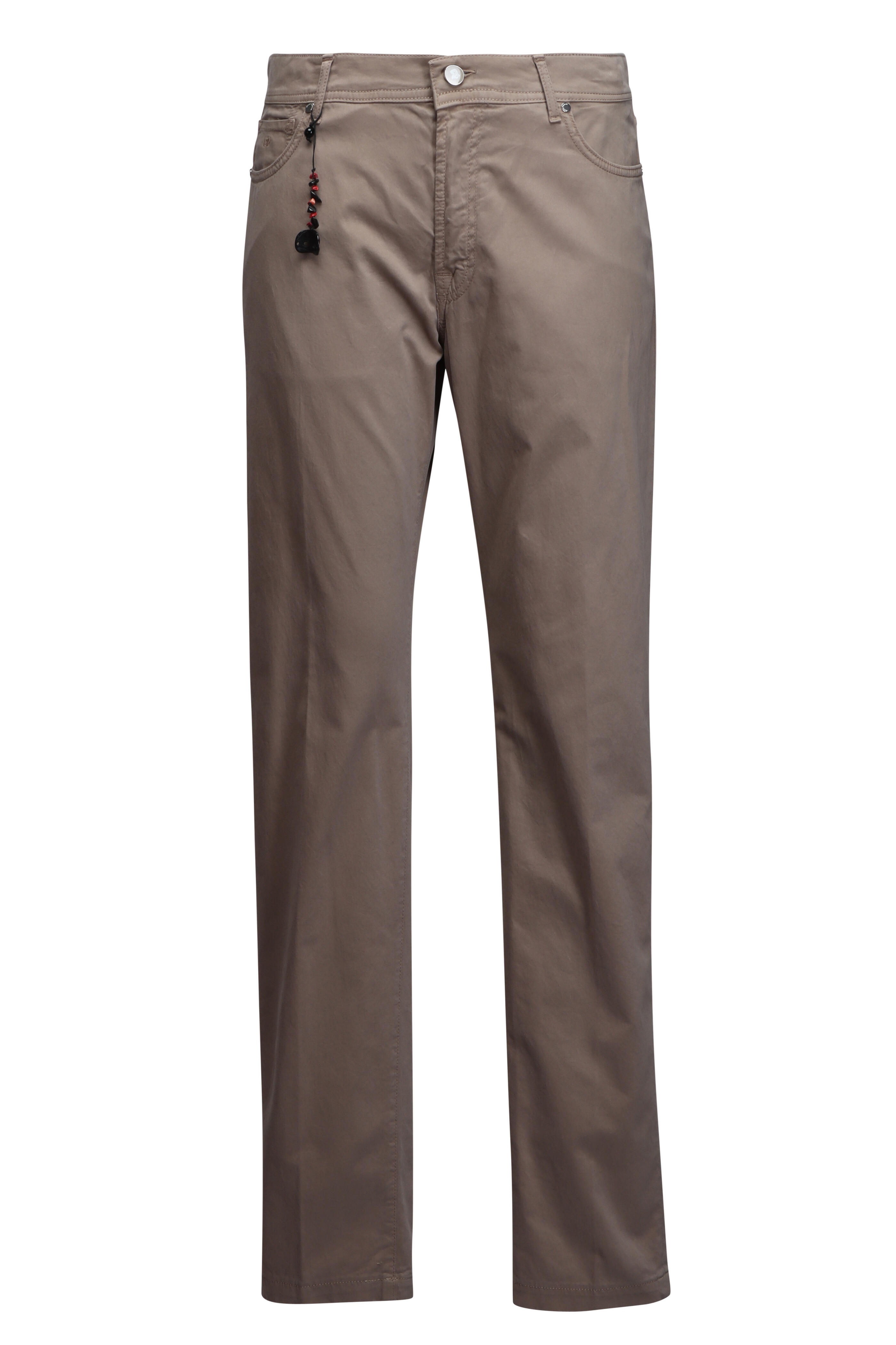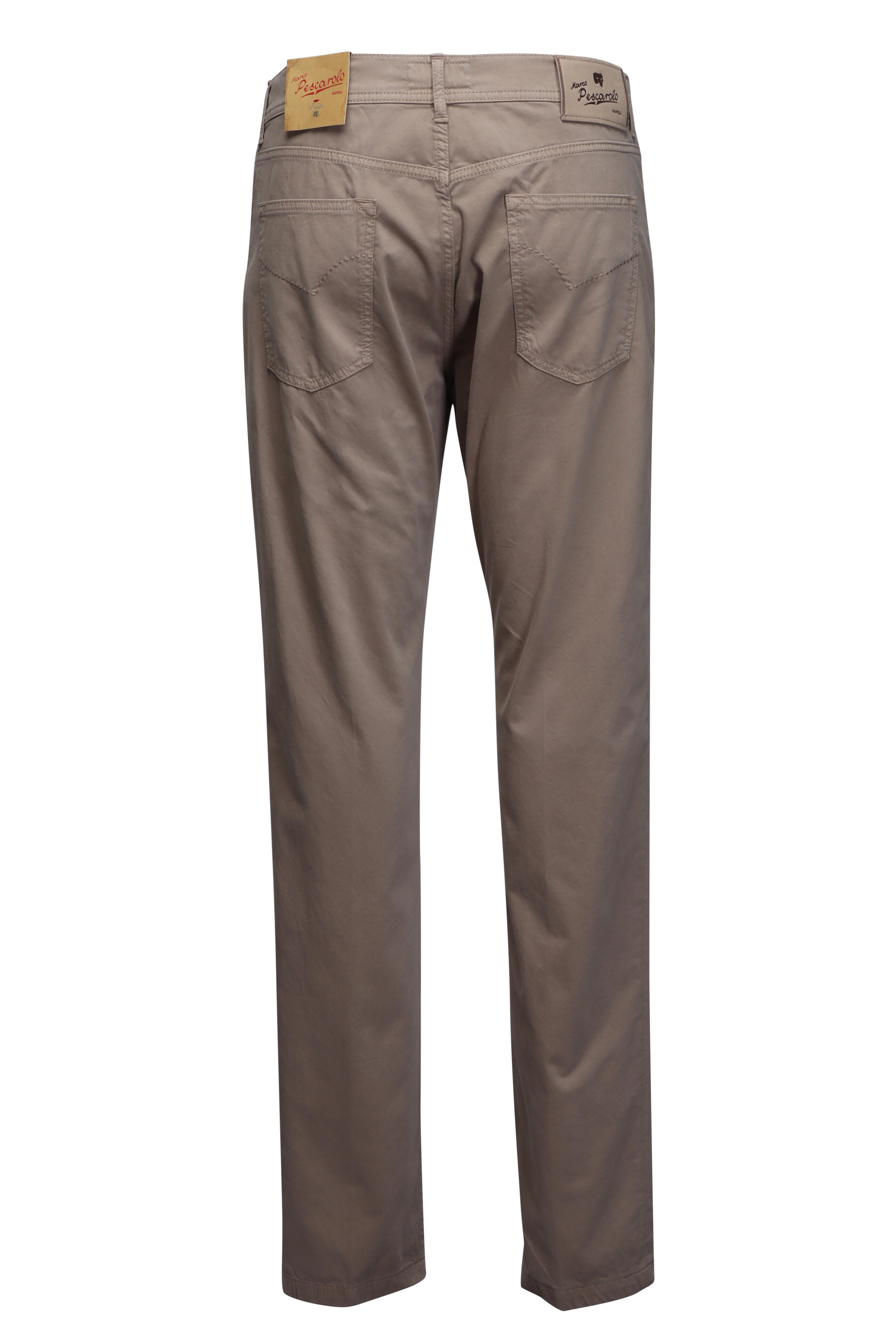 Zip fly with button closure. Banded waist; belt loops. Five pocket styling. Made in Italy. Inseam 34". 98% cotton, 2% elastane. Dry clean.