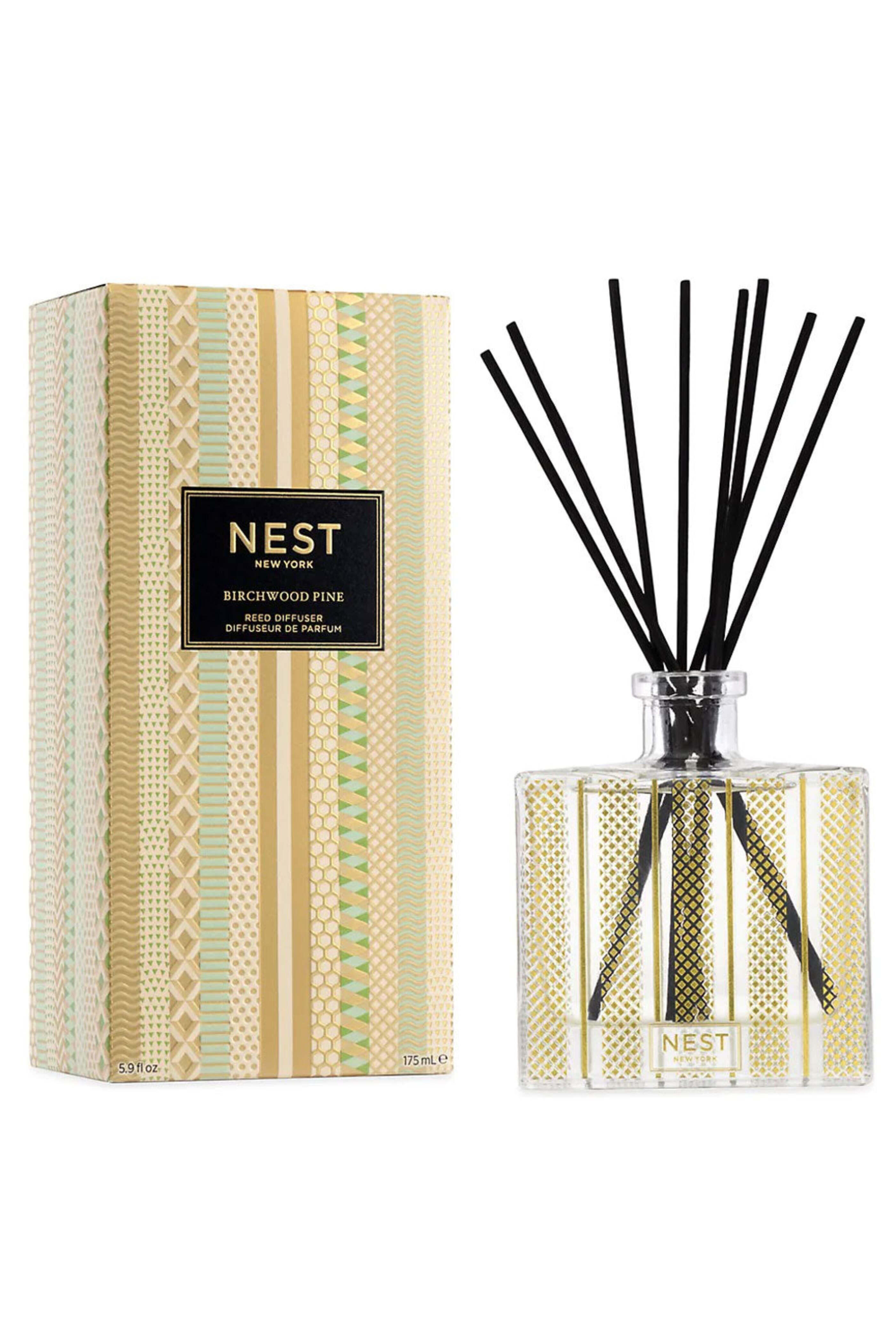 Nest Birchwood Pine Reed Diffuser. Aroma of a majestic winter forest by blending white pine, fir balsam and Birchwood over a base of rich musk and amber.. 5.9 oz.. Made in USA.