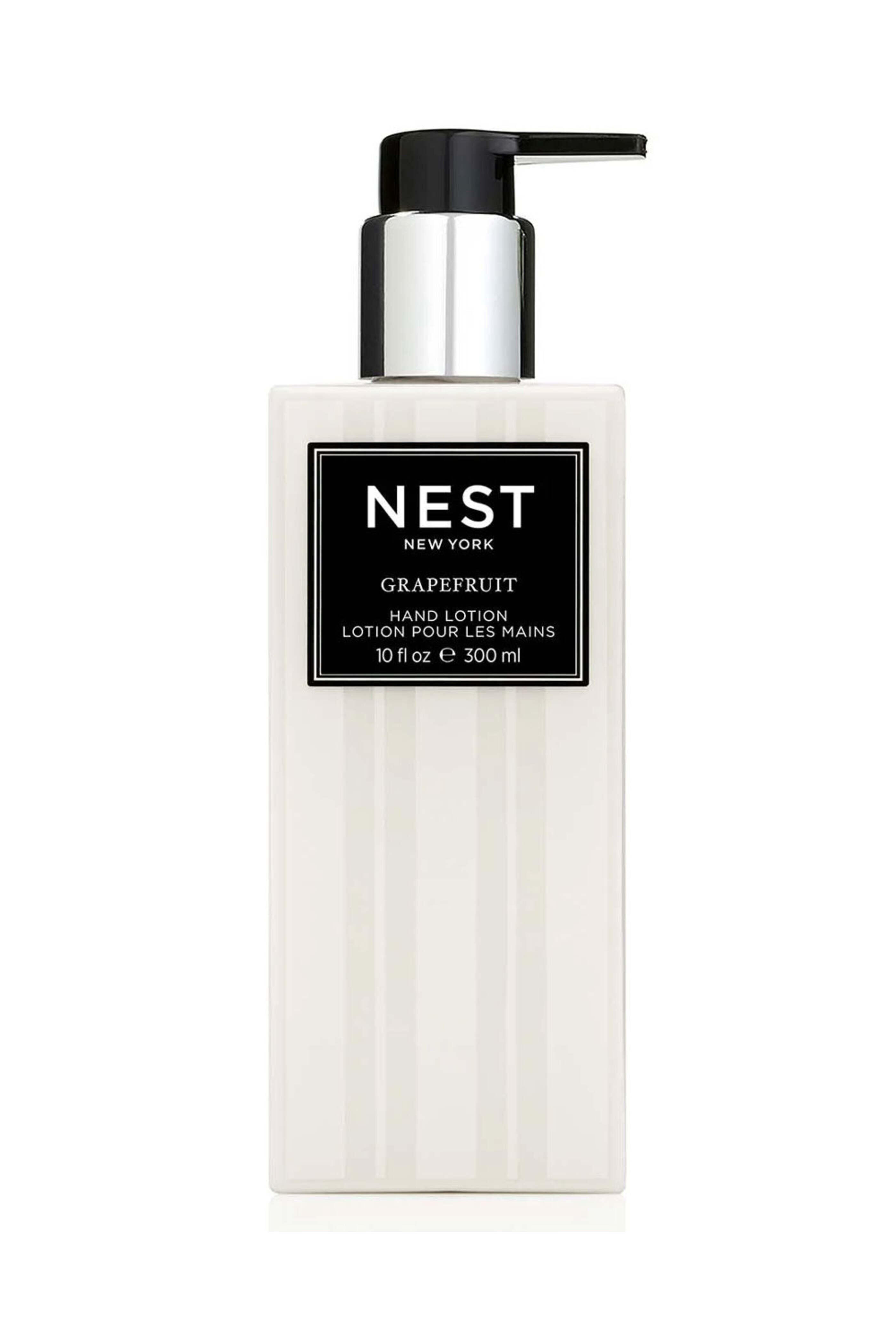 Nest Fragrances Grapefruit Hand Lotion. This exquisitely fragranced hand lotion absorbs quickly and is infused with natural botanicals, antioxidants, and plant extracts to help protect and condition the hands. Pink pomelo grapefruit and watery green notes combine with lily of the valley and coriander blossom. Pump top. 300 mL/10 fl oz.