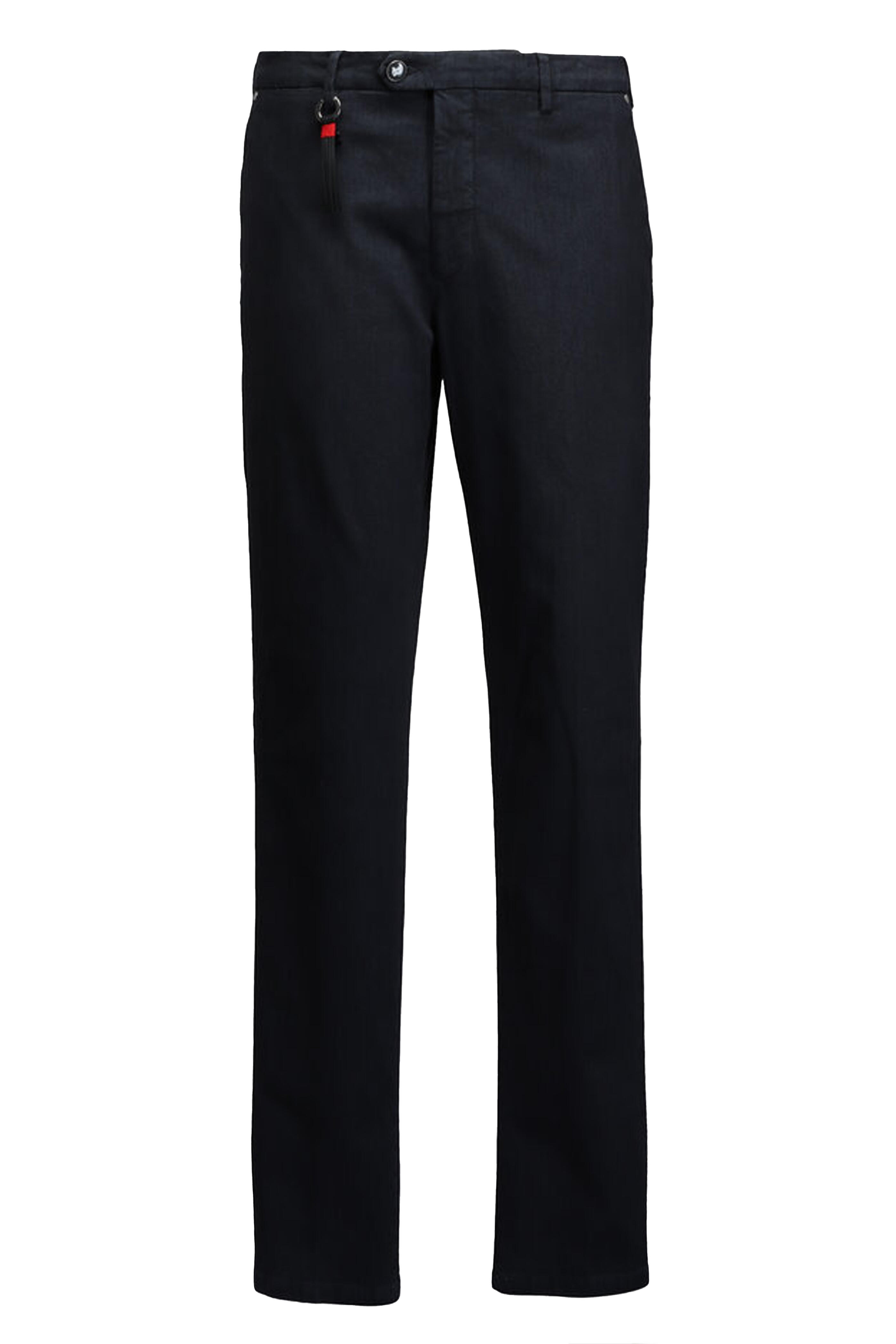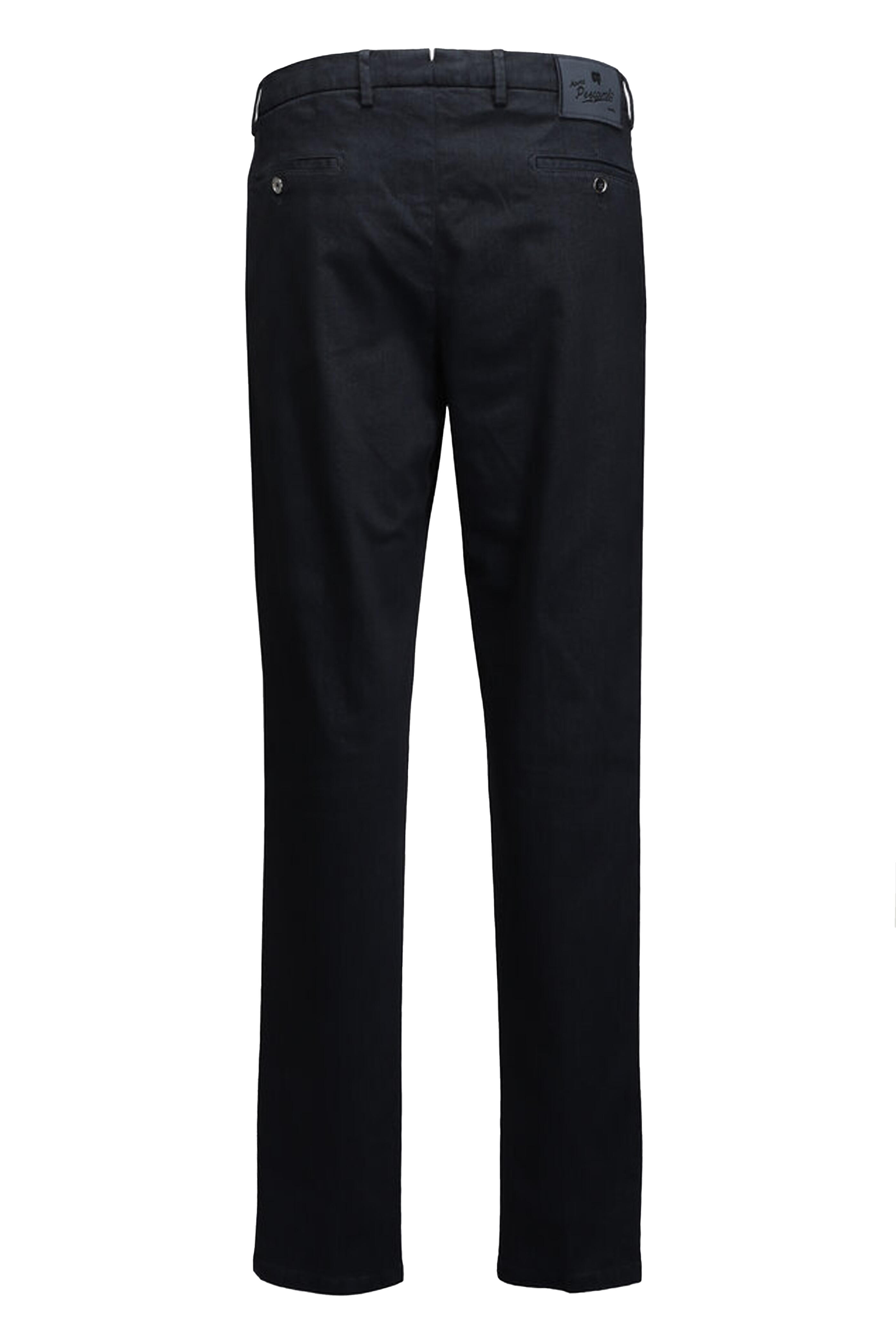 Zip fly; two button closure. Banded waist; belt loops. Side slash pockets; back welt pockets. Made in Italy. 99% cotton, 1% elastane. Dry clean.