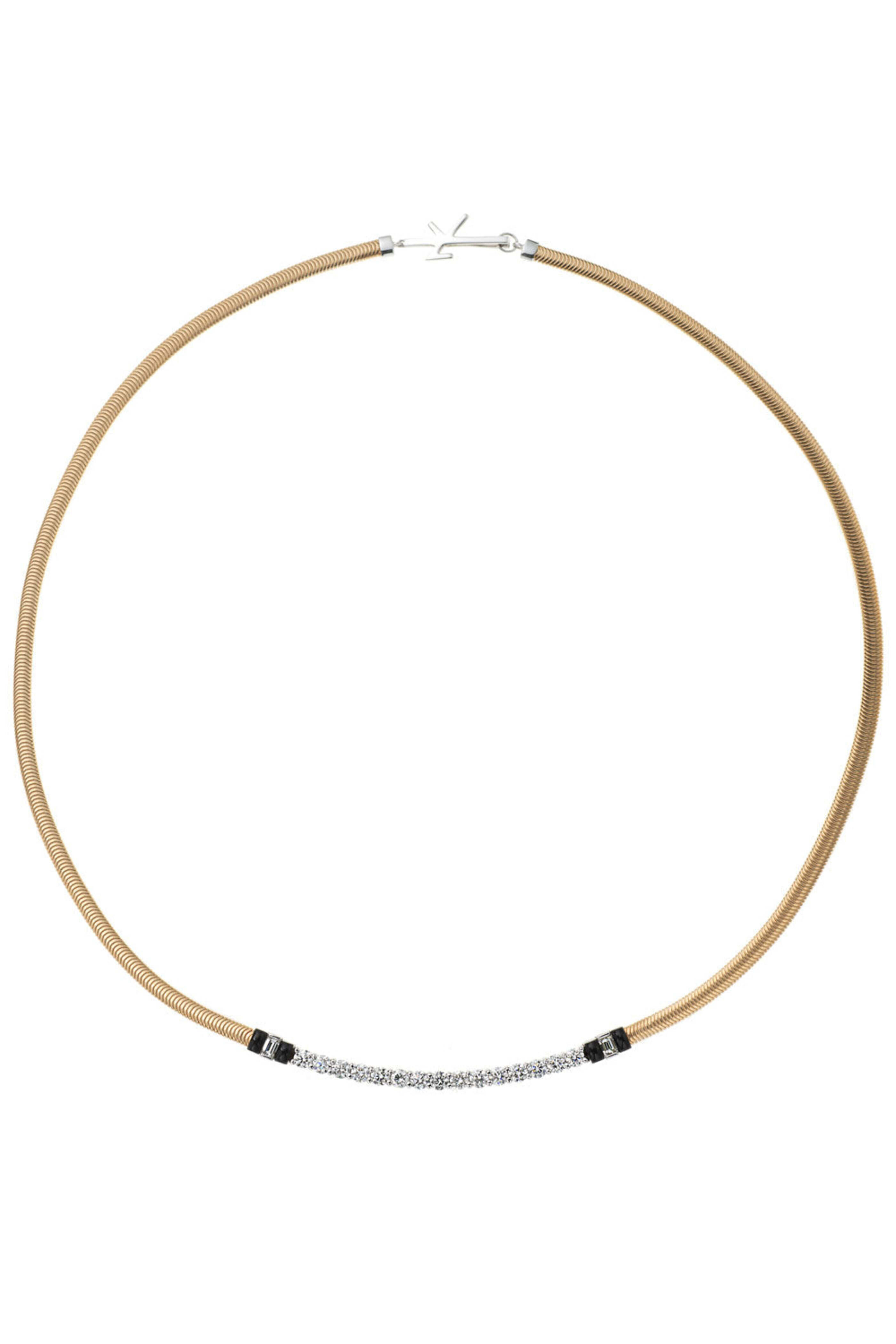 - Nikos Koulis Yellow Gold Baguette Diamond Bar Necklace 18k yellow gold Black enamel 1.30 ct. white baguette diamonds Front diamond bar station Toggle clasp Feelings Collection