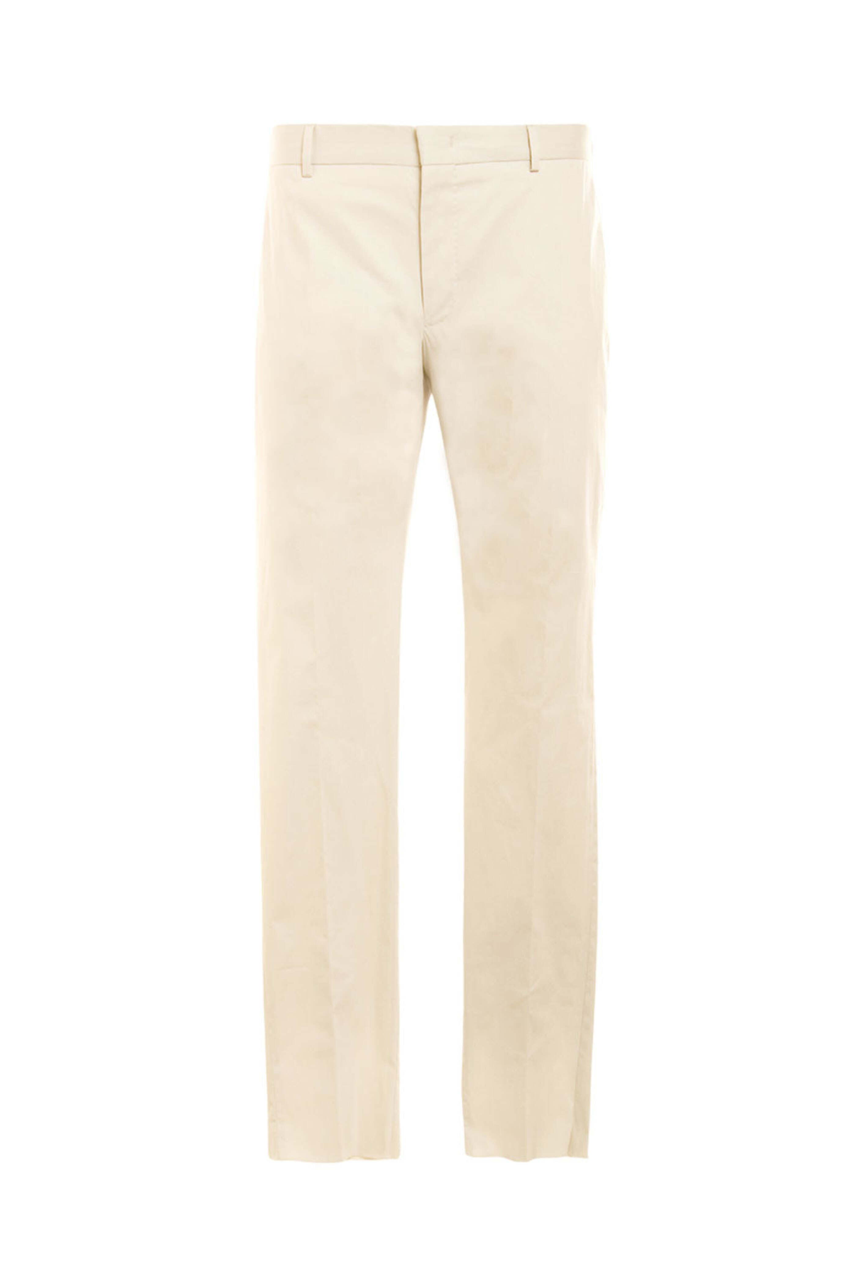 PT Torino Slim Tech Gabardine Pant in Light Stone. Zip fly. Button and hook and eye closure. Slant waist pockets. Back welt pockets. Belt loops. 10 rise. 6.5 hem opening. Tonal pick stitch detailing. Active fit. 65% cotton, 29% polyamide and 6% elastane.