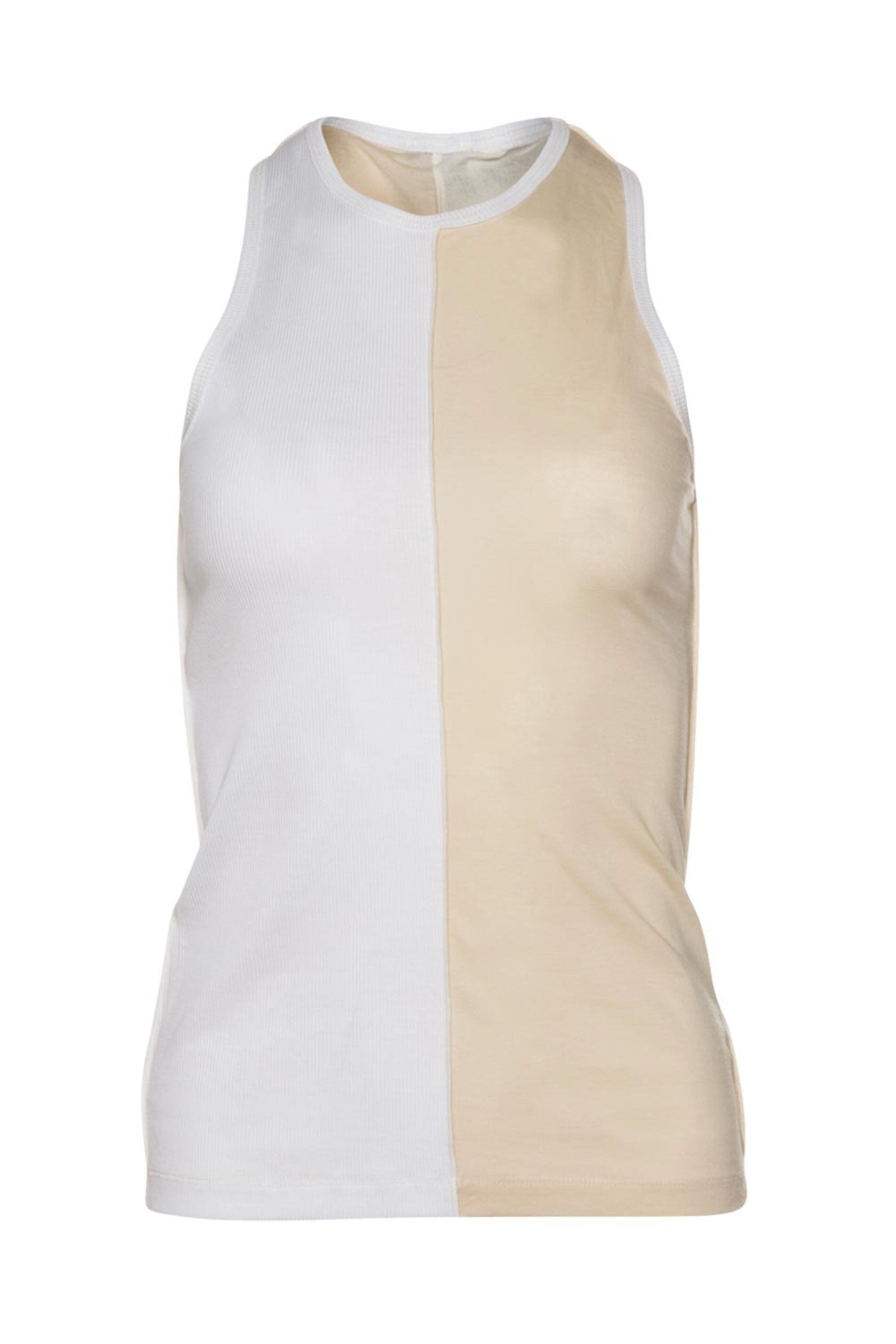 Nanushka Cream Contrast Macha Tank Round neck Sleeveless Contrast panel fabrication Ribbed panel and trim Slim fit Unlined 100% cotton.