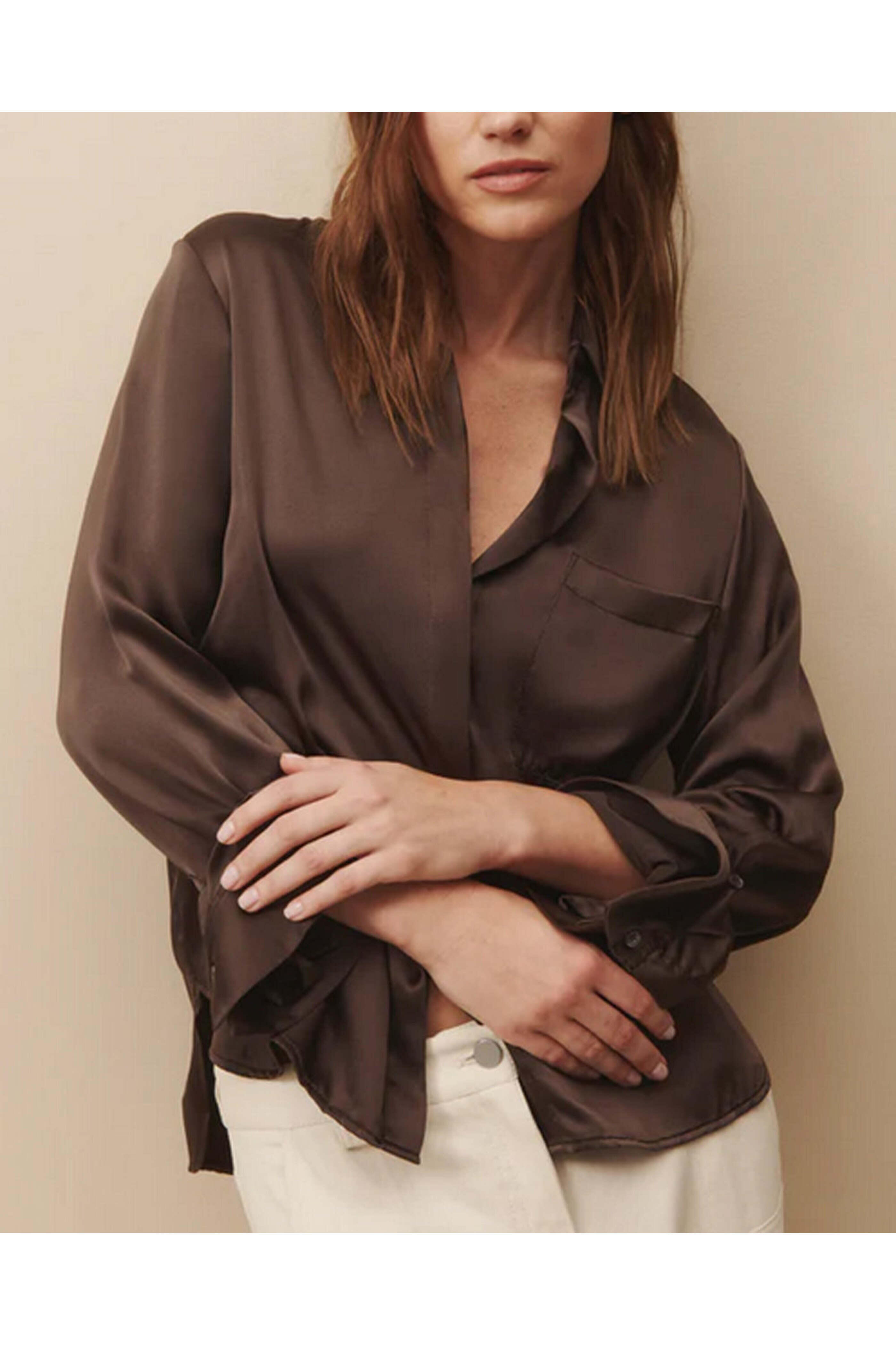 - TWP Turkish Coffee Silk Boyfriend Shirt