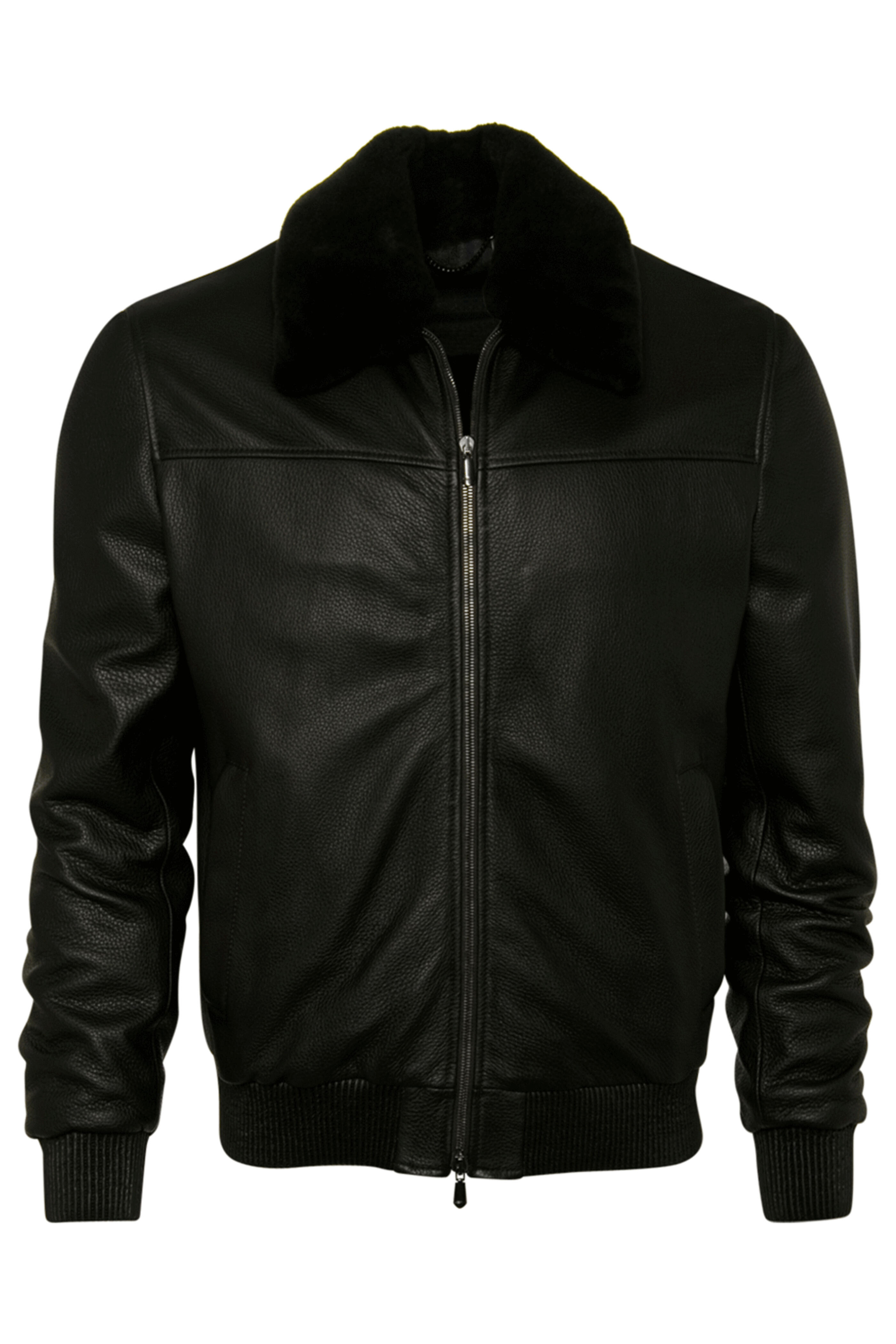 - Cesare Attolini Chocolate Leather Bomber Jacket