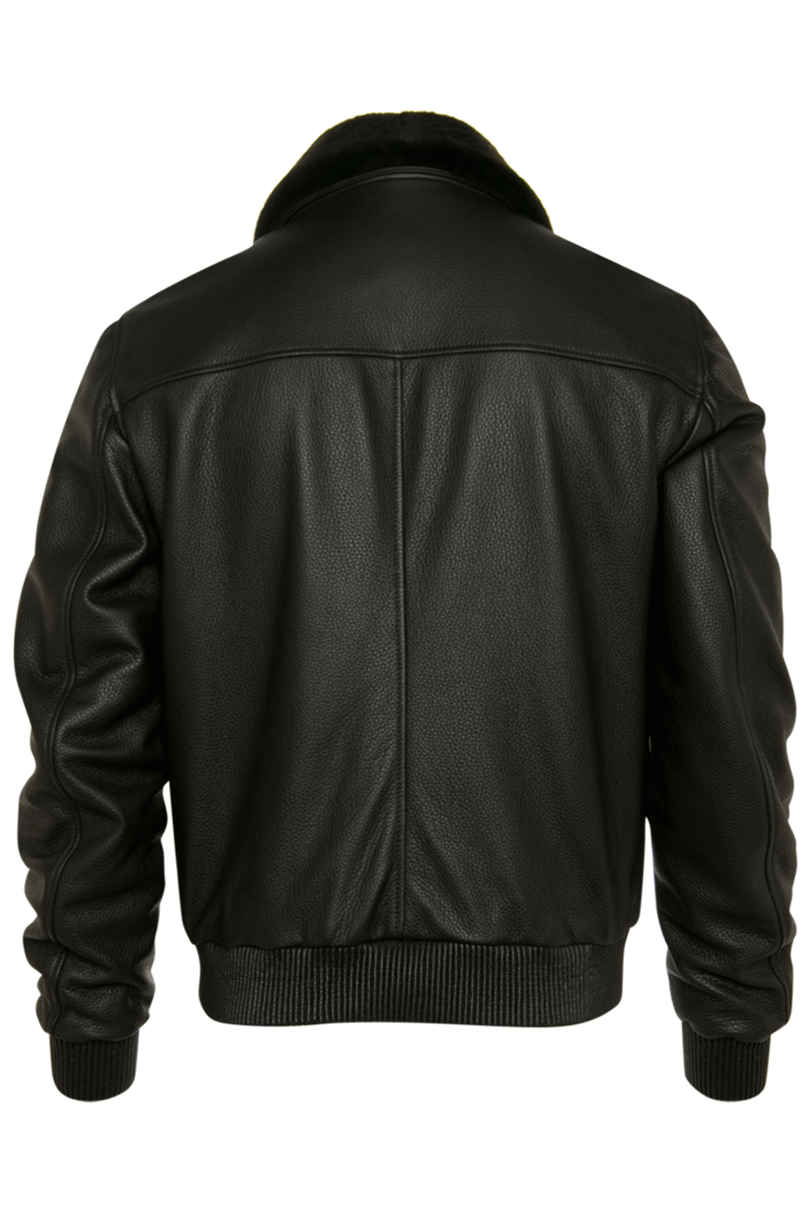 Cesare Attolini Chocolate Leather Bomber Jacket. Spread collar with fur fabrication. Zip closure. Long sleeves. Ribbed cuffs. Tonal stitching. Straight hem. Horizontal shoulder seam detail. Made in Italy. 100% beaver fur collar. 100% wool lining. 100% deer leather.