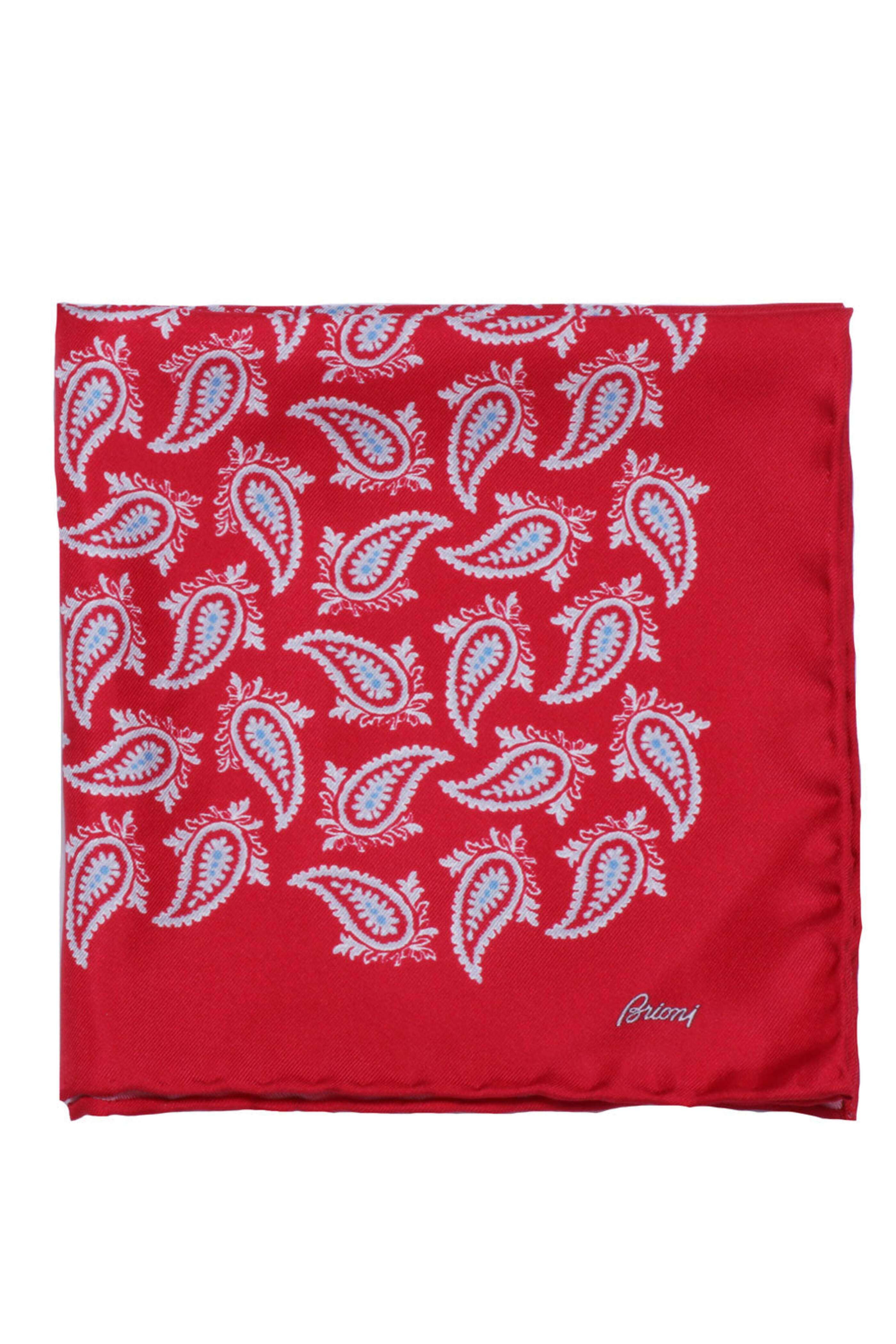 Brioni Flame and Lead Paisley Pocket Square. 12.5€ x 13€. Made in Italy. 100% silk.