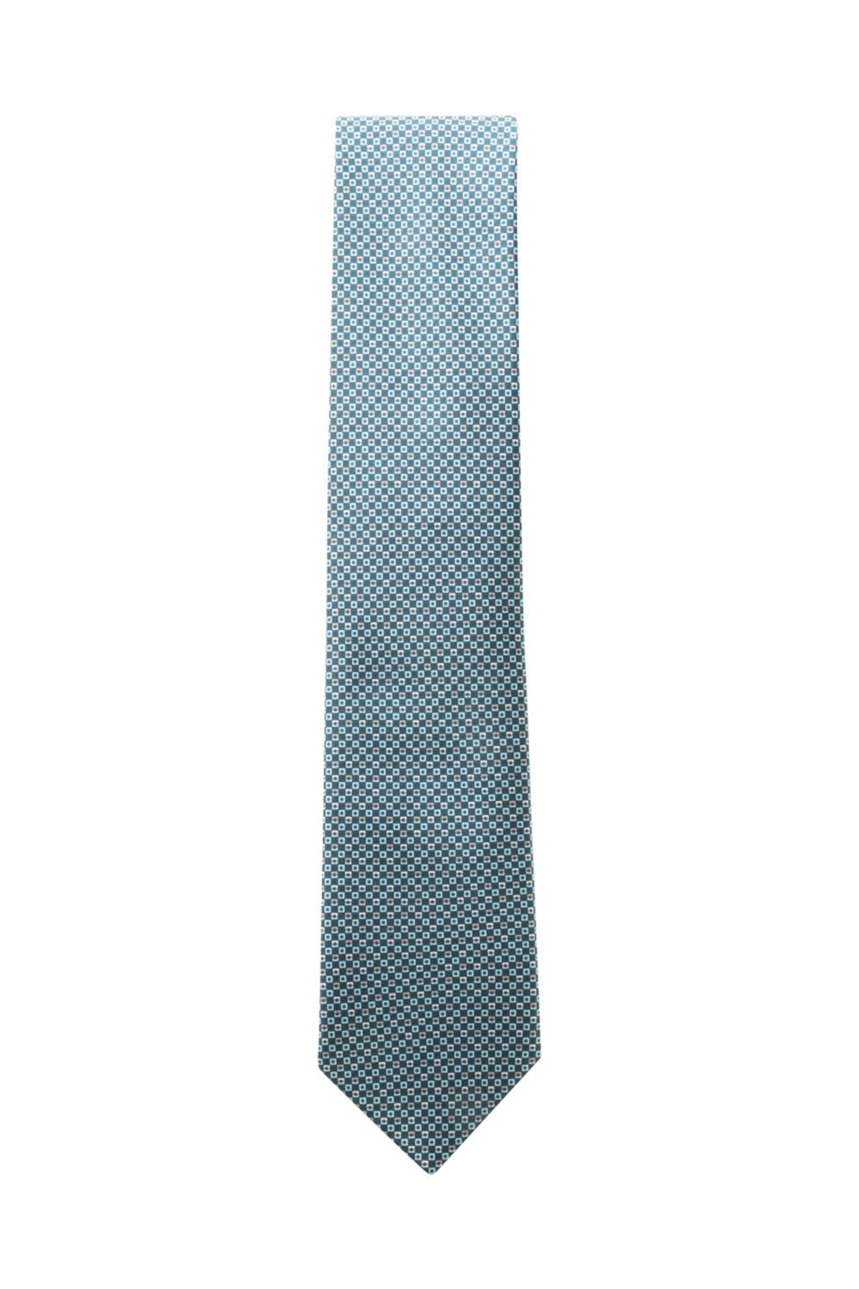 Dark Green and Flannel Micro Patterned Tie. Seven-fold tie. 59 L x 3 W. Handmade in Italy. Dry clean only. 100% seta-silk.