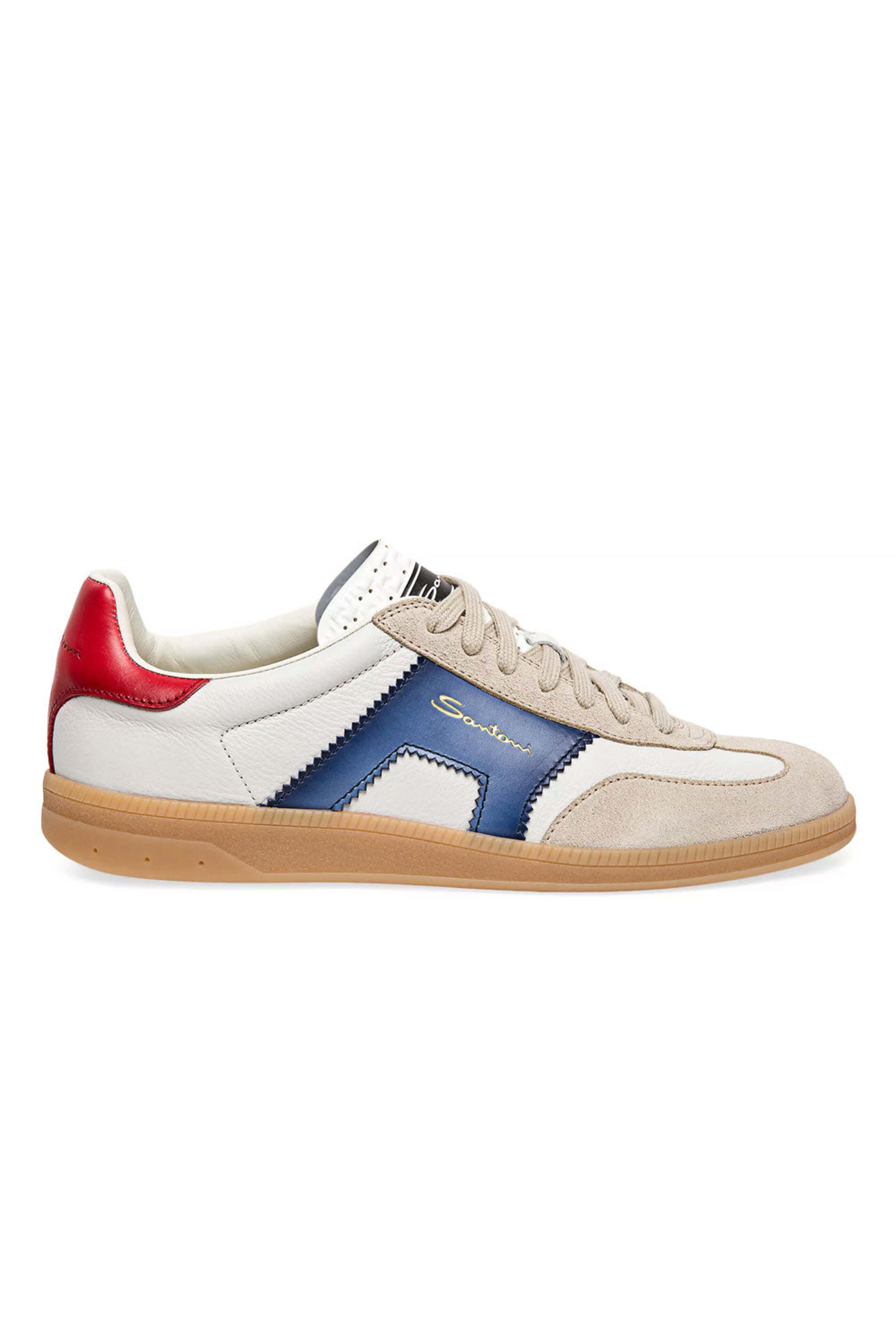 Leather upper and lining. Round toe. Lace-up vamp. Suede paneling. Rubber sole. Made in Italy.
