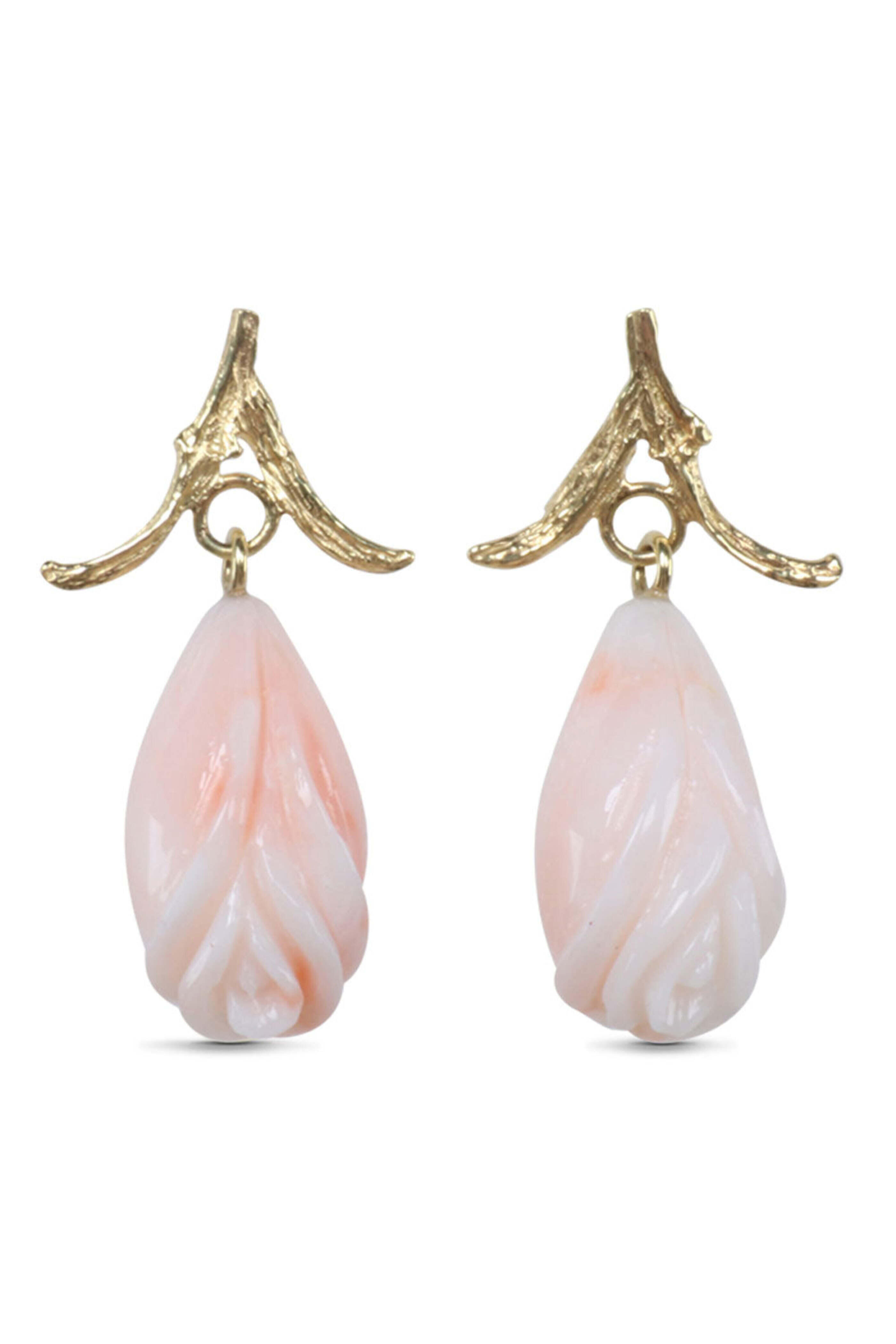 - K. Brunini Jewels Carved Angleskin Coral Floral Earrings