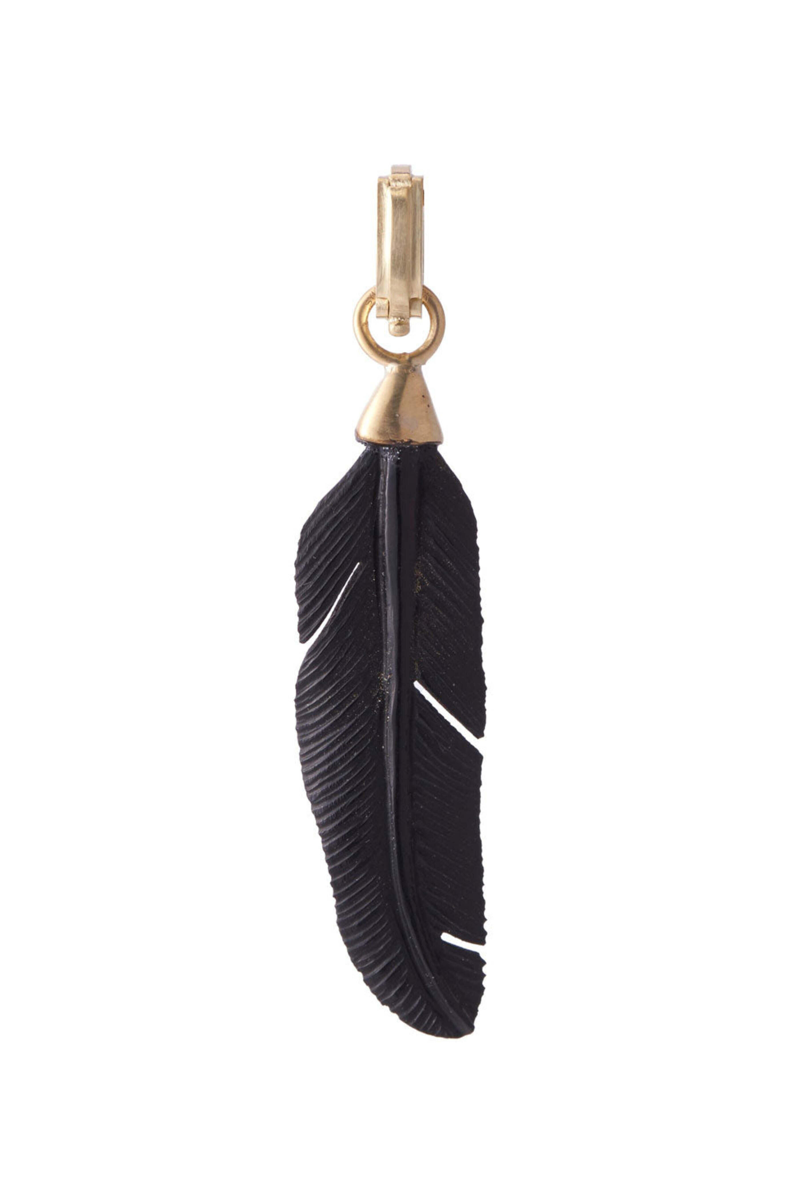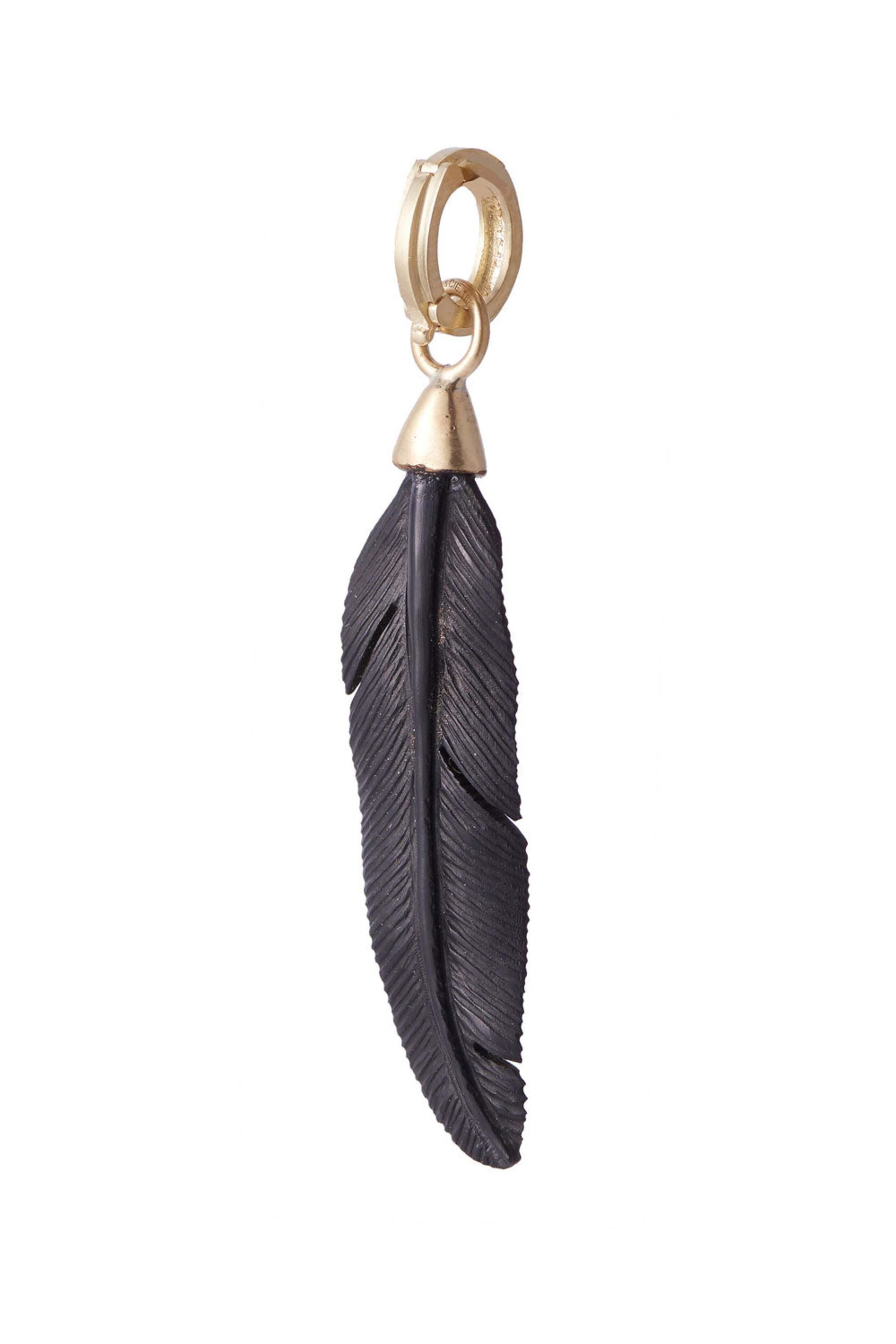 Sylva & Cie Ebony Feather Pendant. 18k yellow gold. Feather design. Latch bail. Made in the USA.