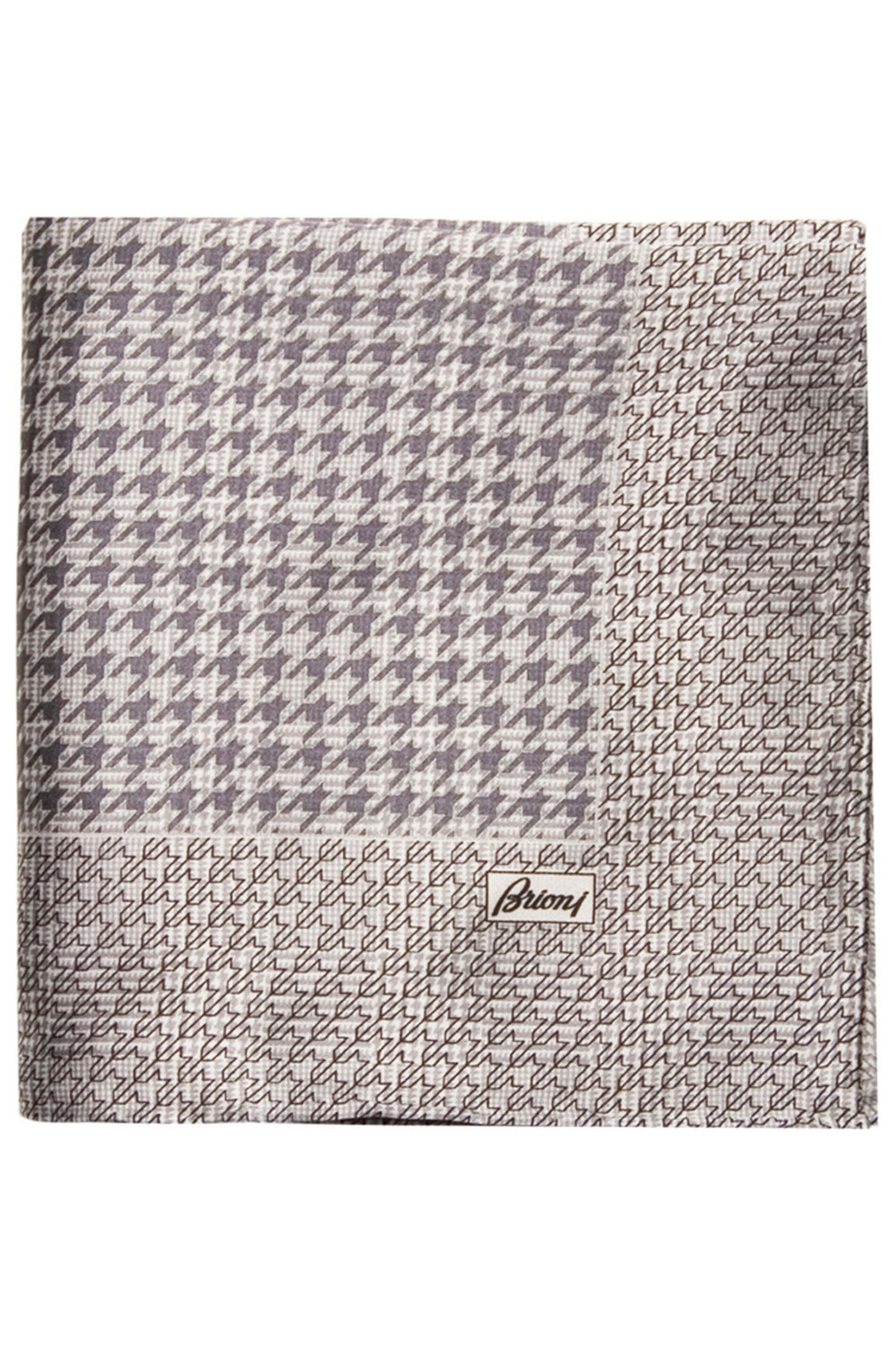 - Brioni Silver Exploded Houndstooth Pocket Square