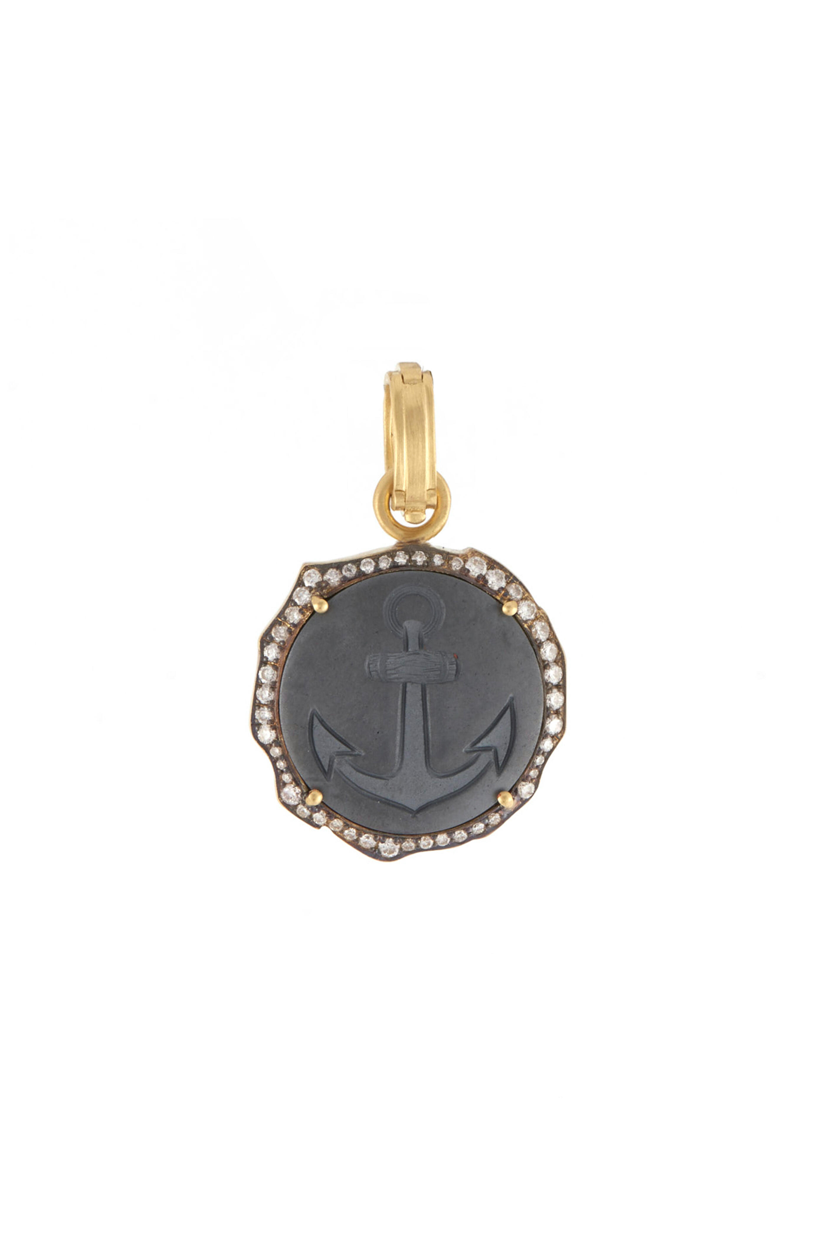 18k Yellow Gold Hematite Diamond Anchor Pendant