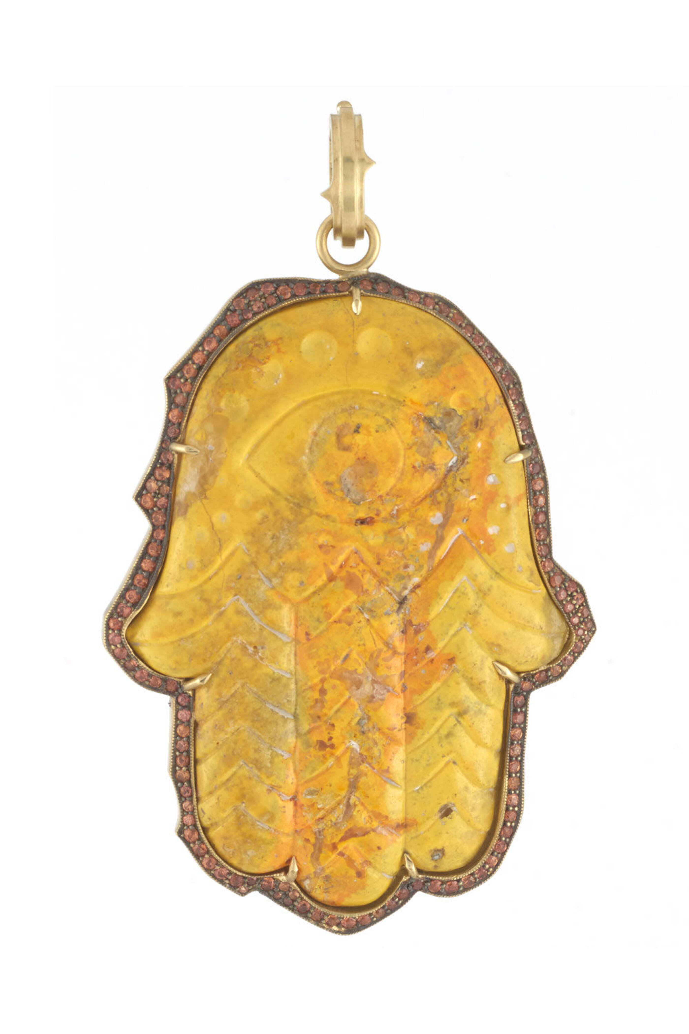 - Sylva & Cie Orange Sapphire Hamsa Pendant