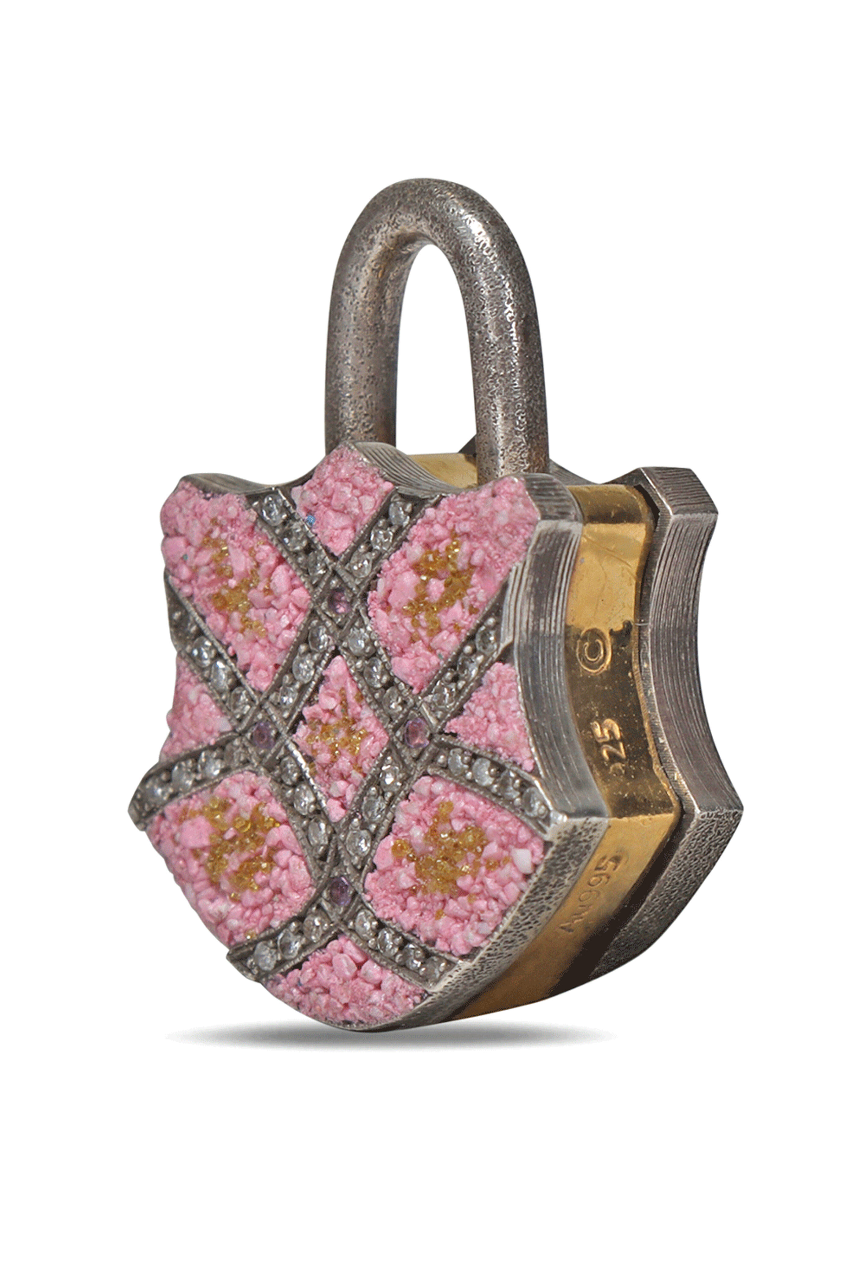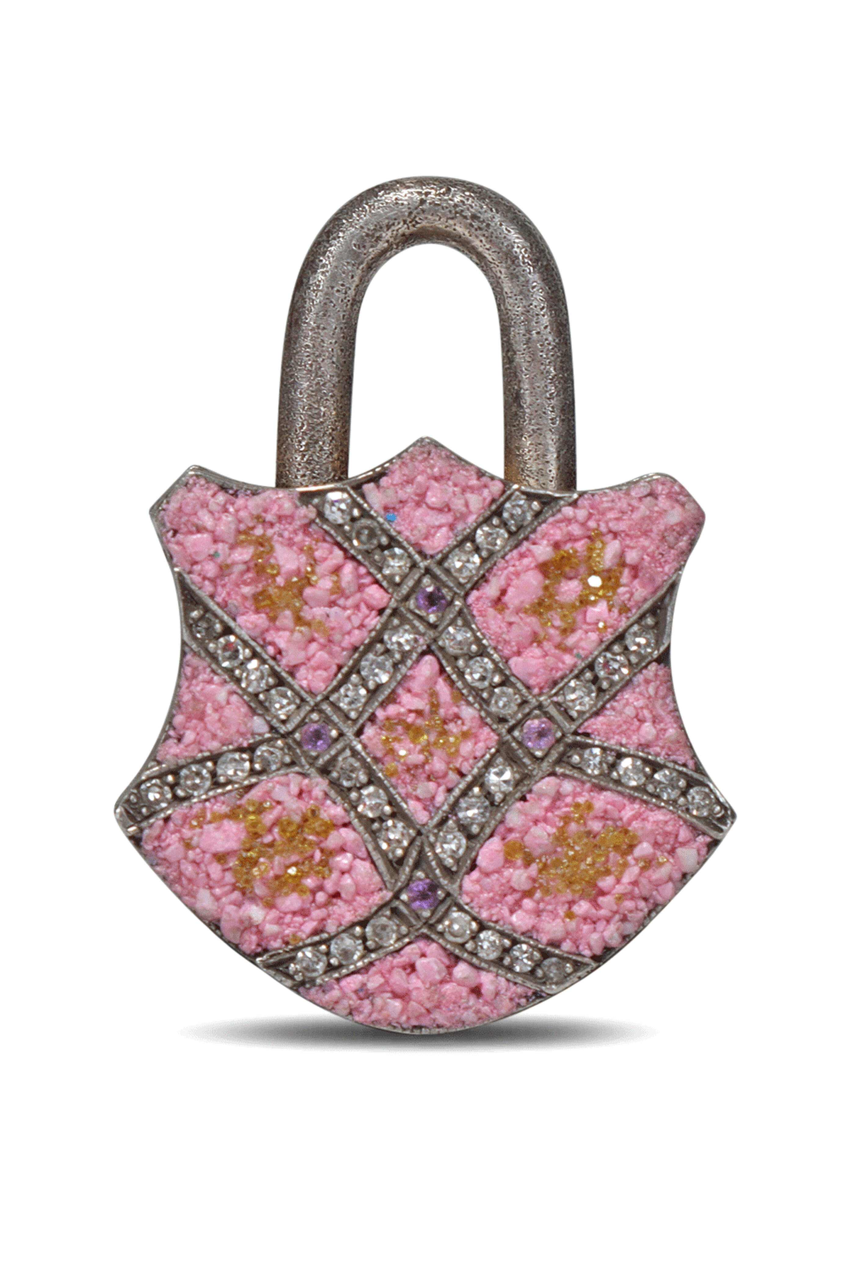 Micro Pink Mosaic Padlock Pendant