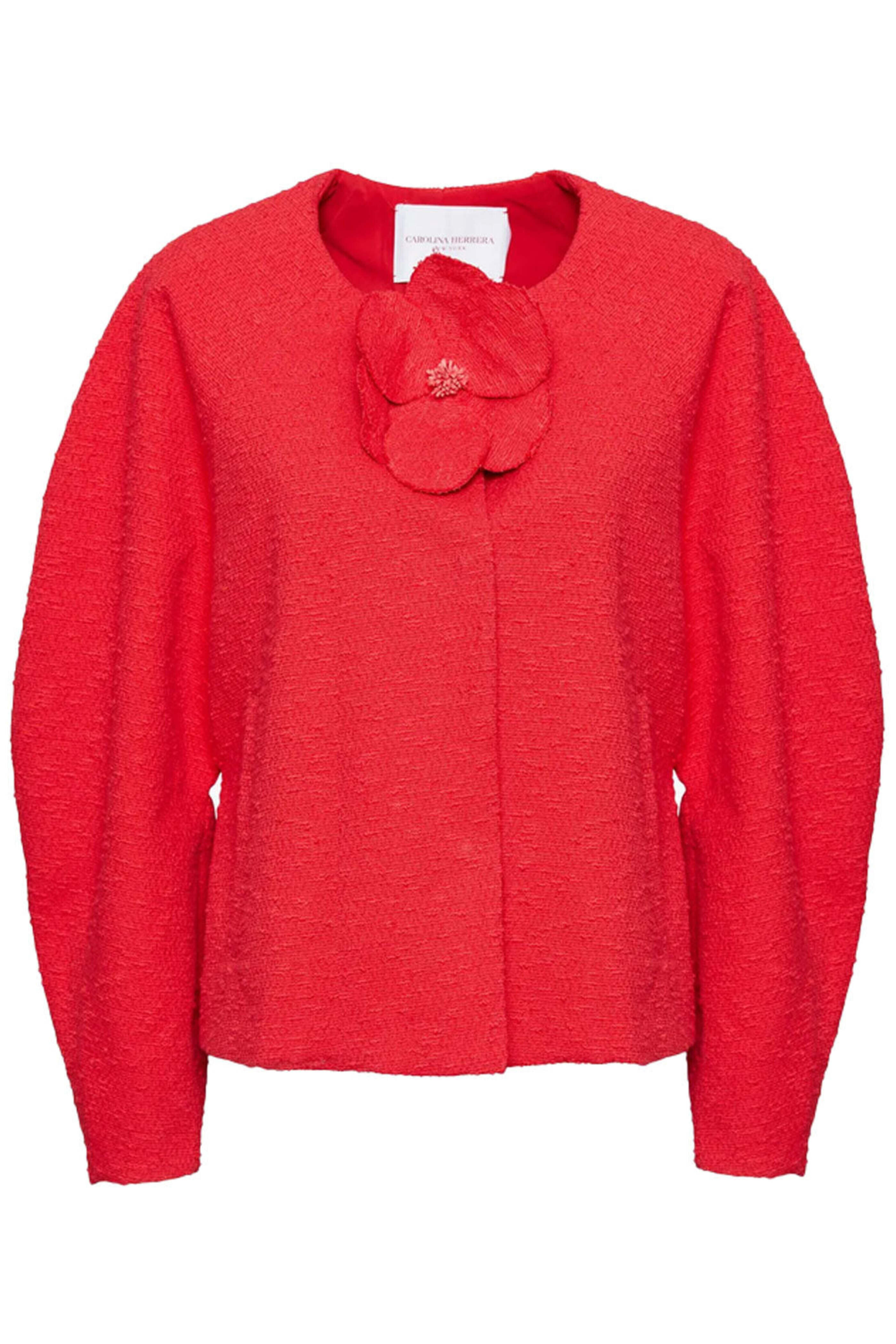 - Carolina Herrera Poppy Boucle Collarless Crop Jacket