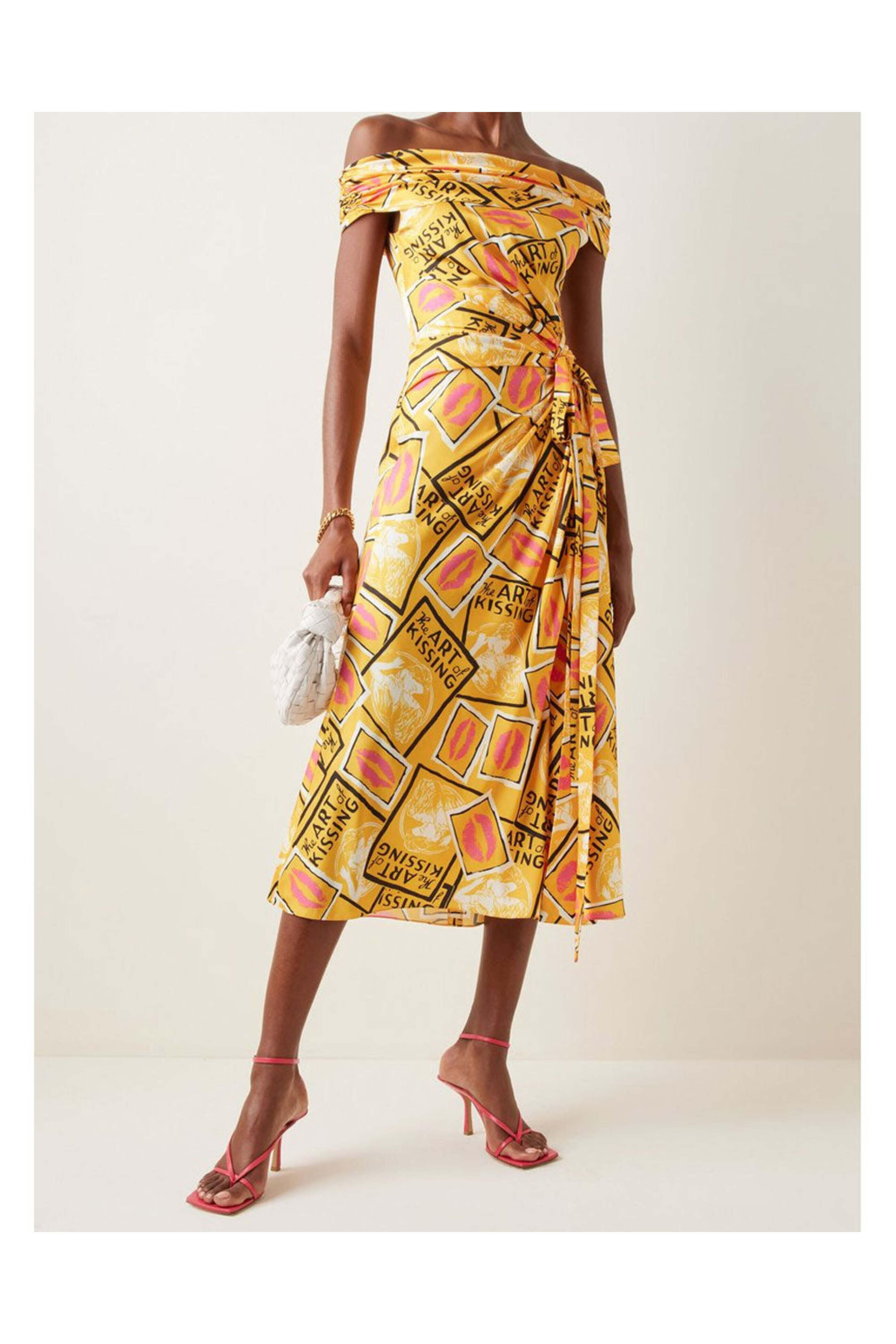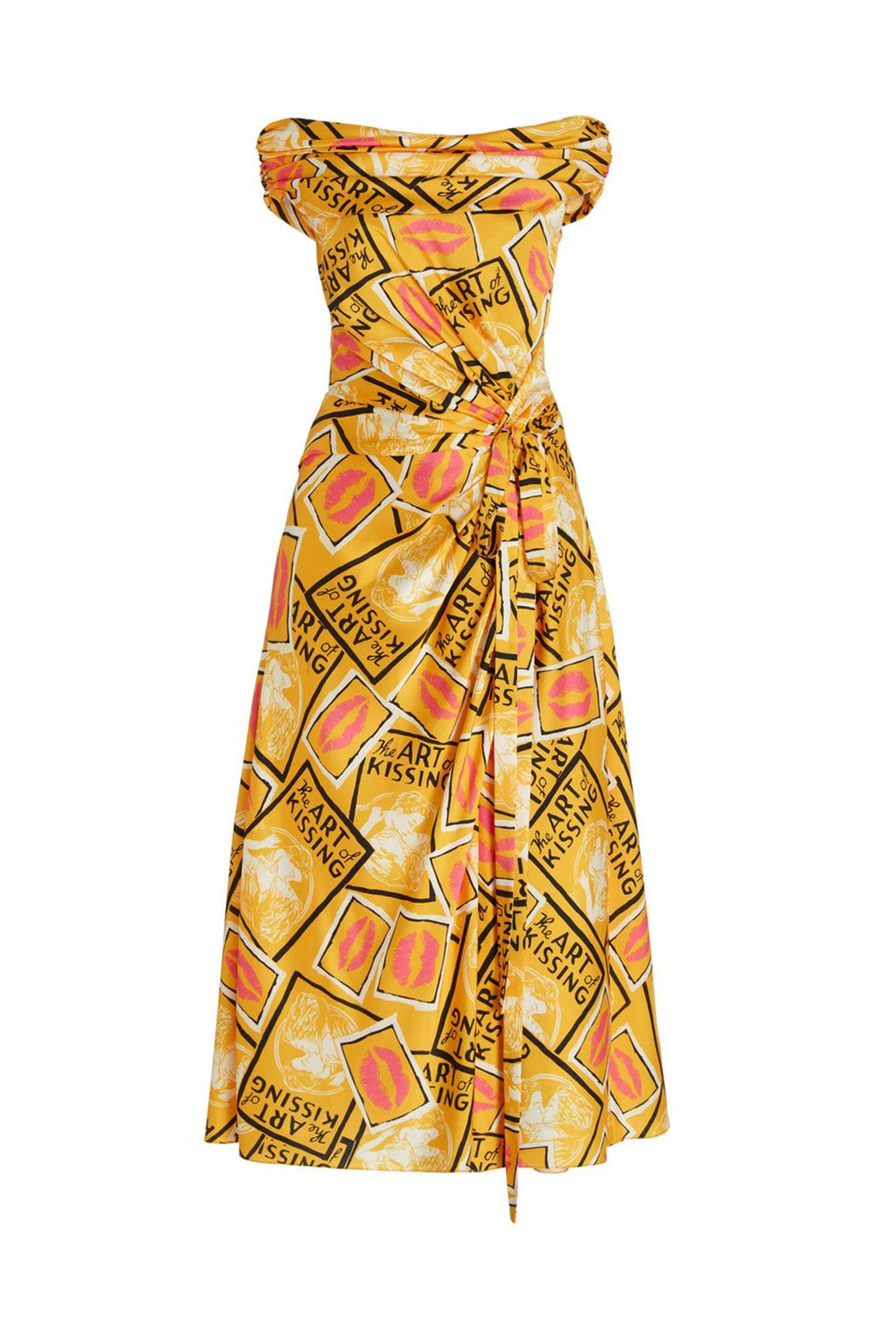 - Carolina Herrera Golden Rod Twist Shoulder Midi Dress