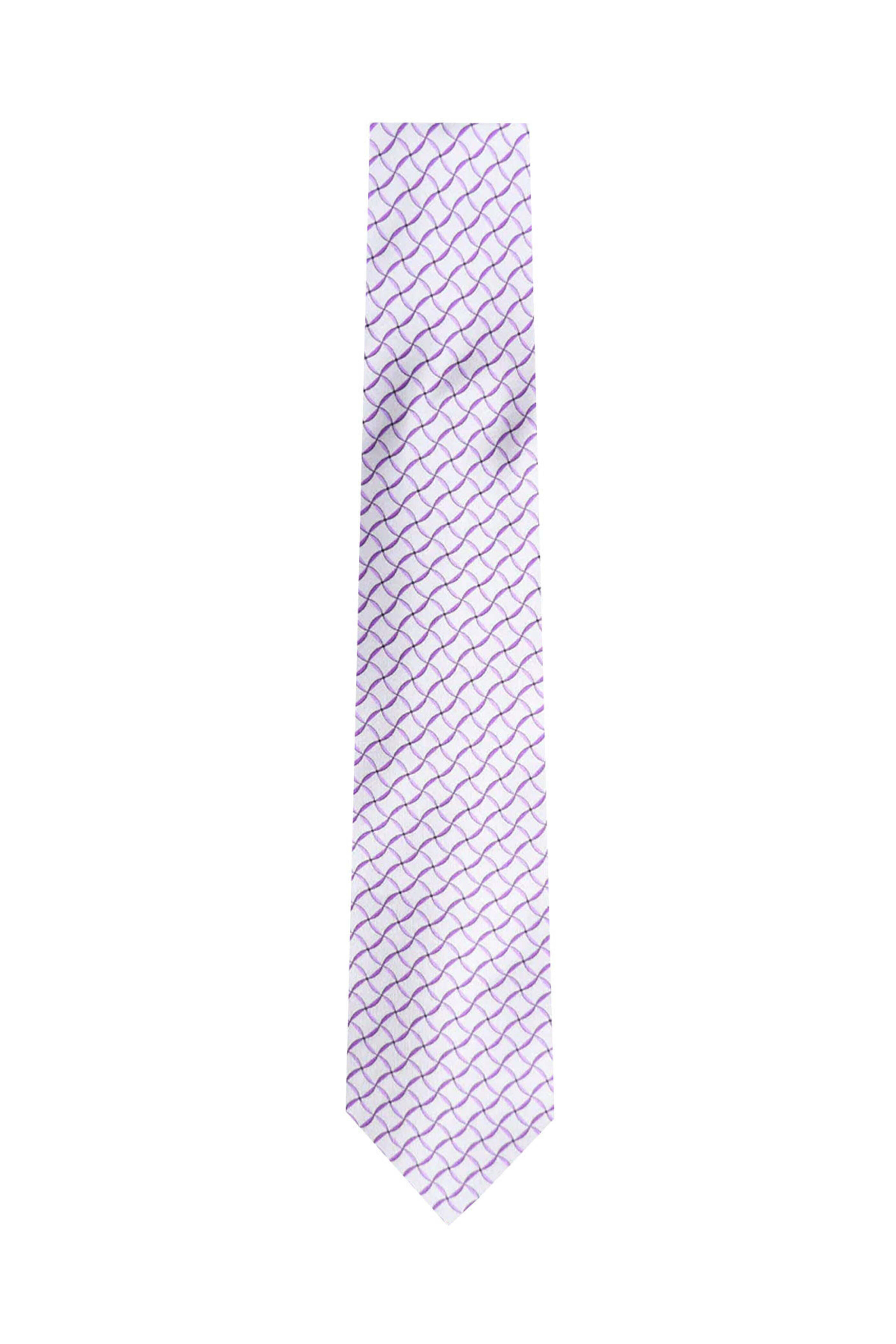Dolcepunta Purple and Grey Groovy Square Silk 11 Fold Tie. Eleven-fold tie. 59 L x 3.5 W. Made in Italy. Dry clean only. 100% Silk.