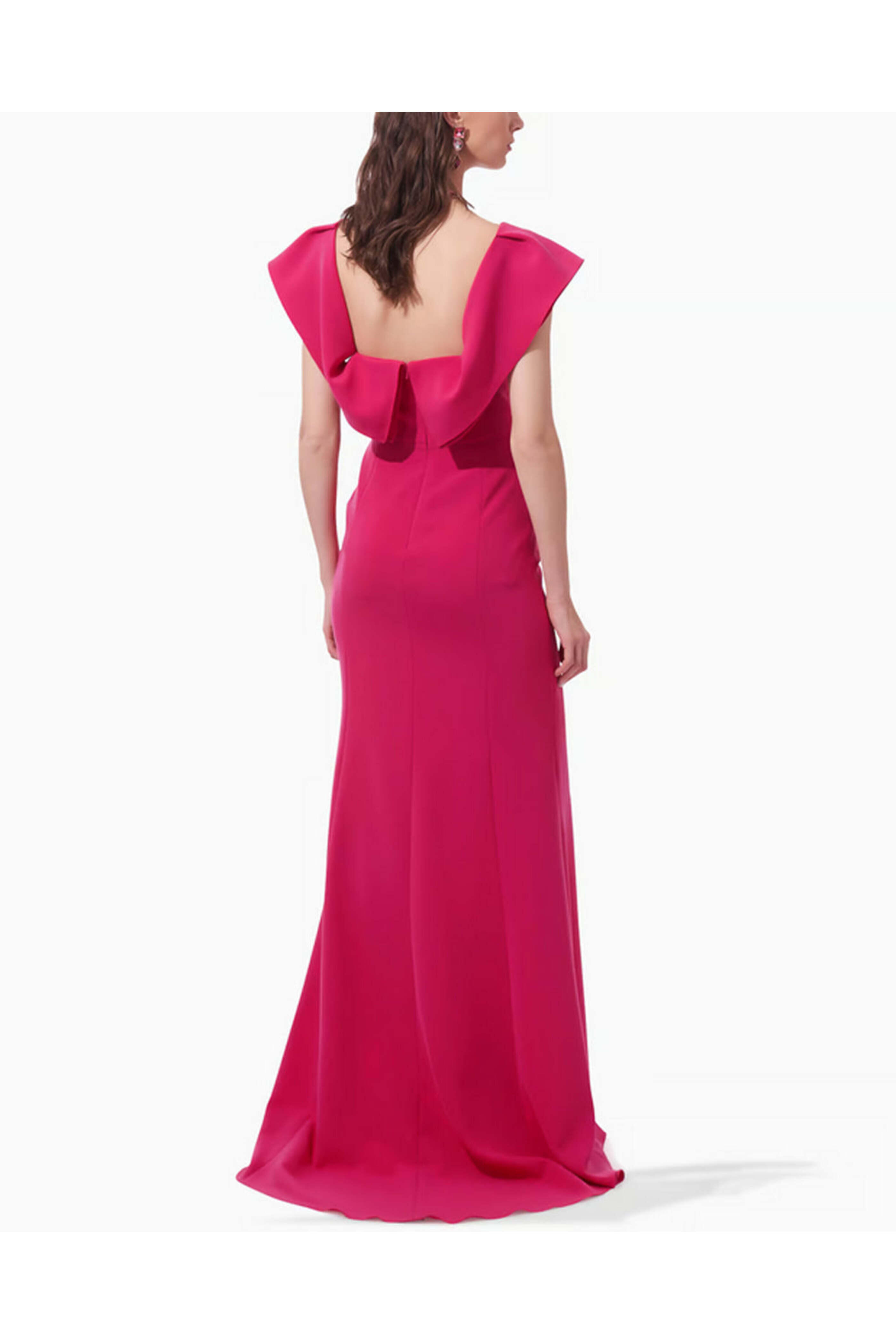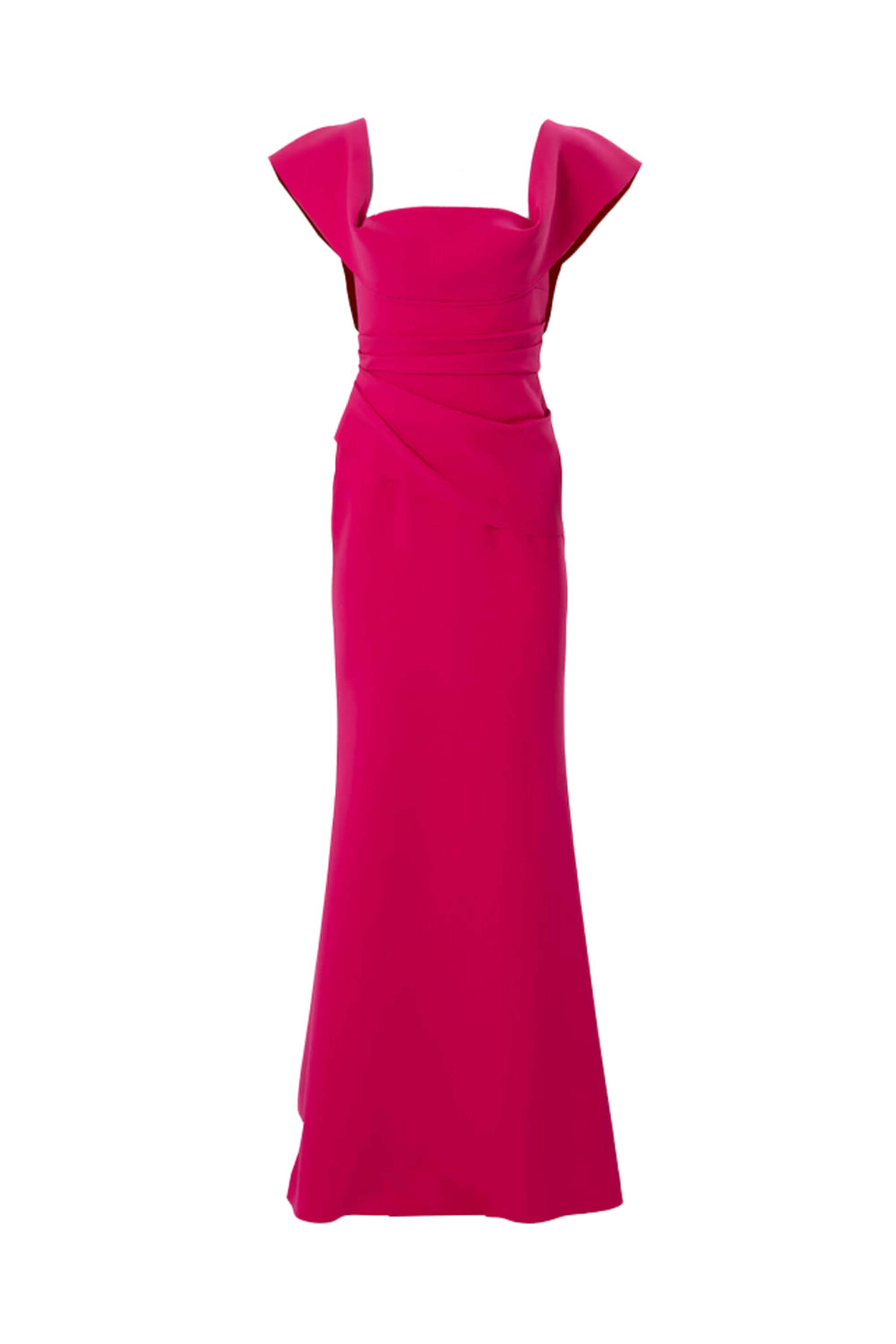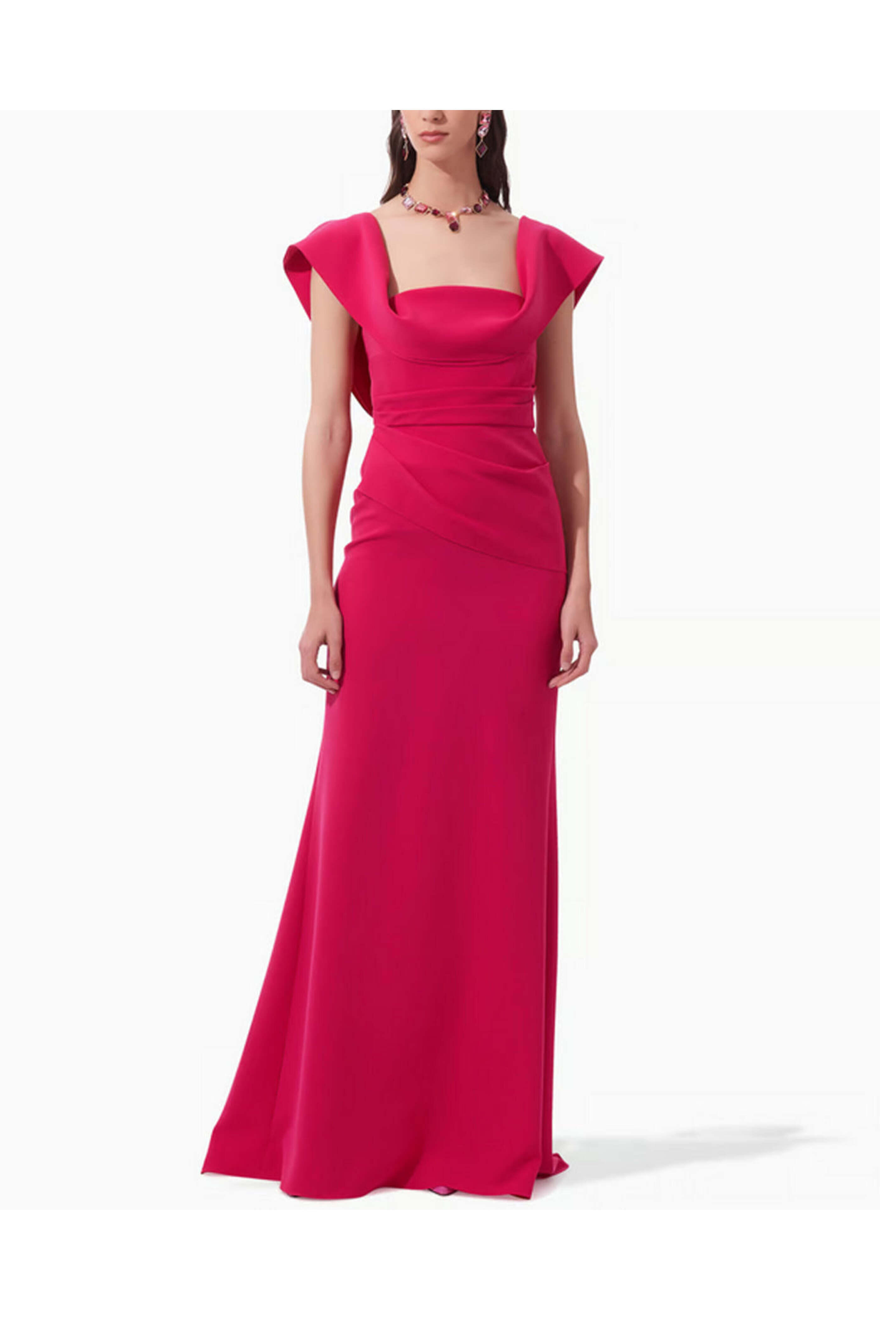 - Carolina Herrera Cerise Pink Drape Neck Flared Gown