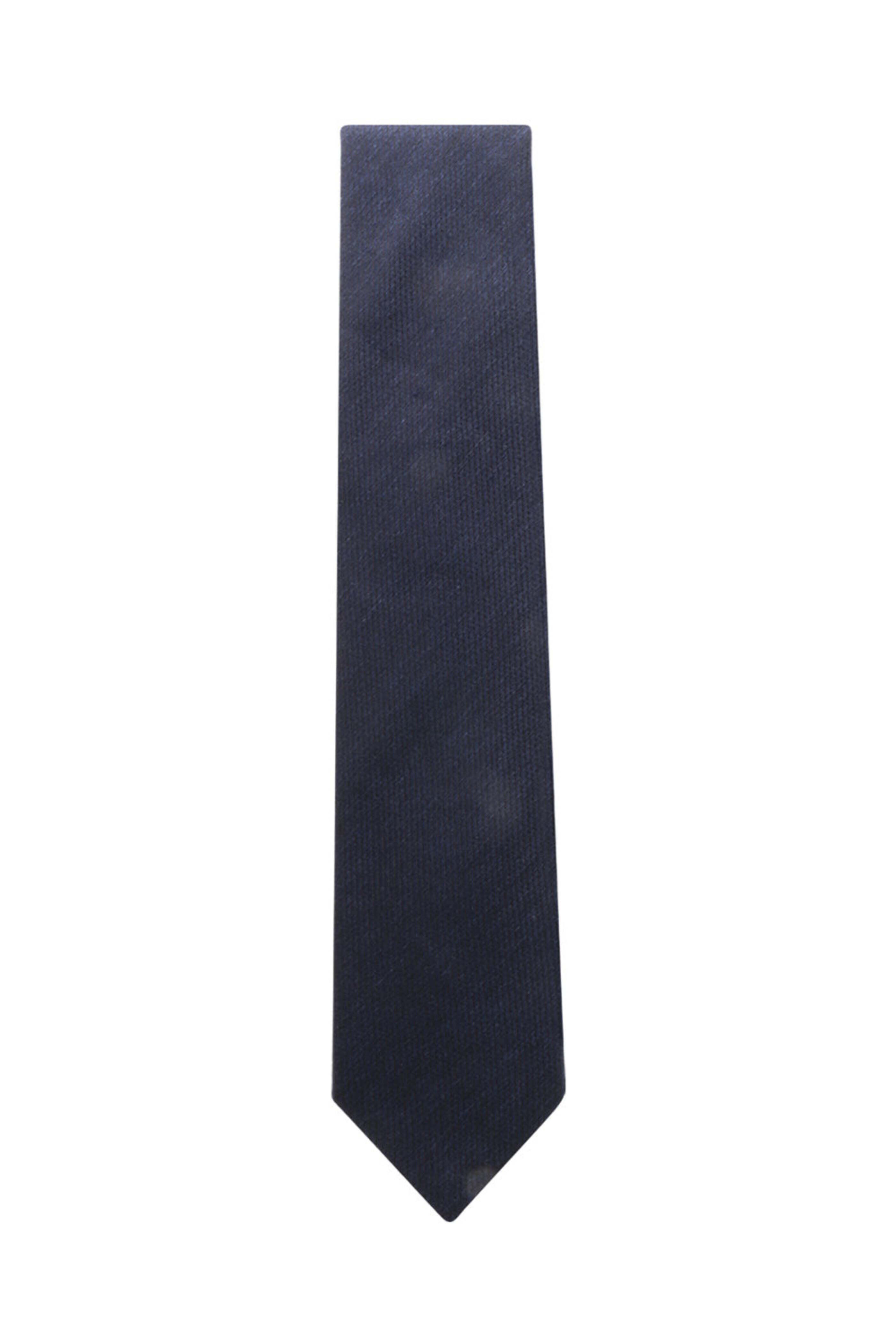 Navy and Black Jacquard Tie. Seven-fold tie. 59 L X 3.25 W. Handmade in Italy. Dry clean only. 19% silk 81% linen.