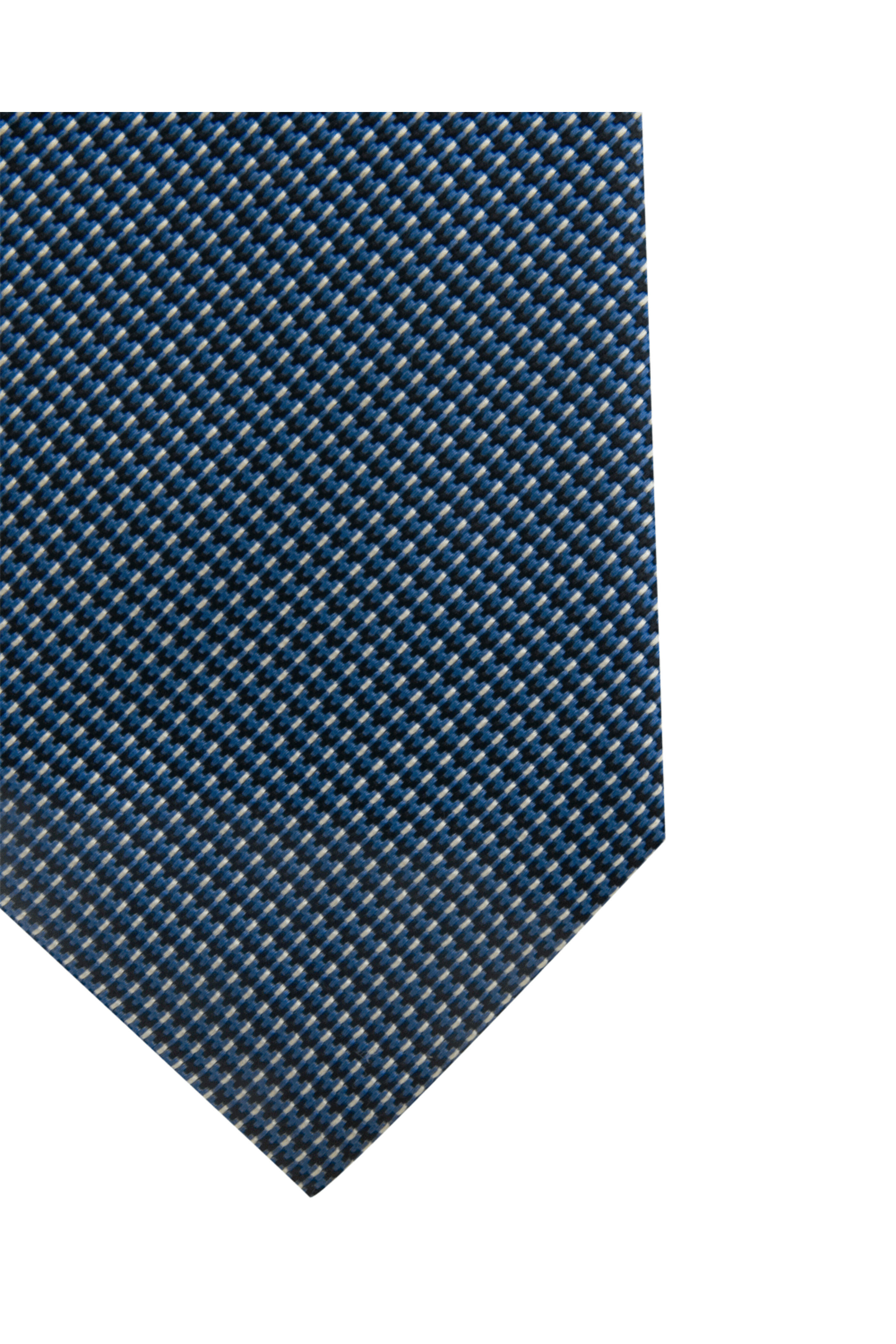 Brioni Blue and Midnight Micro Geometric Tie. Seven-fold tie. 59 long. 3.25 wide. Handmade in Italy. 100% silk.