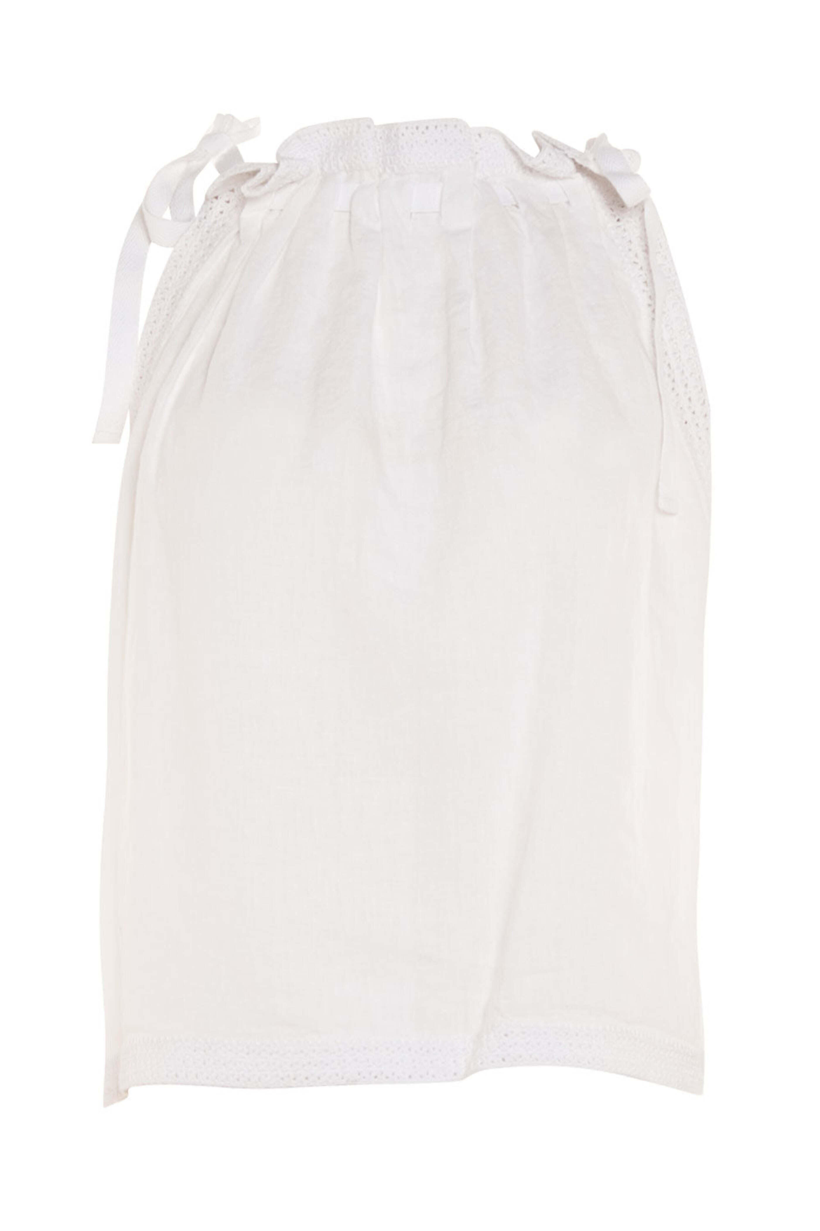 Ulla Johnson Bone Ezra Tank. Adjustable high neckline. Sleeveless. Self-tie shoulder straps. Trapeze silhouette. Crochet trim detailing. 100% linen.