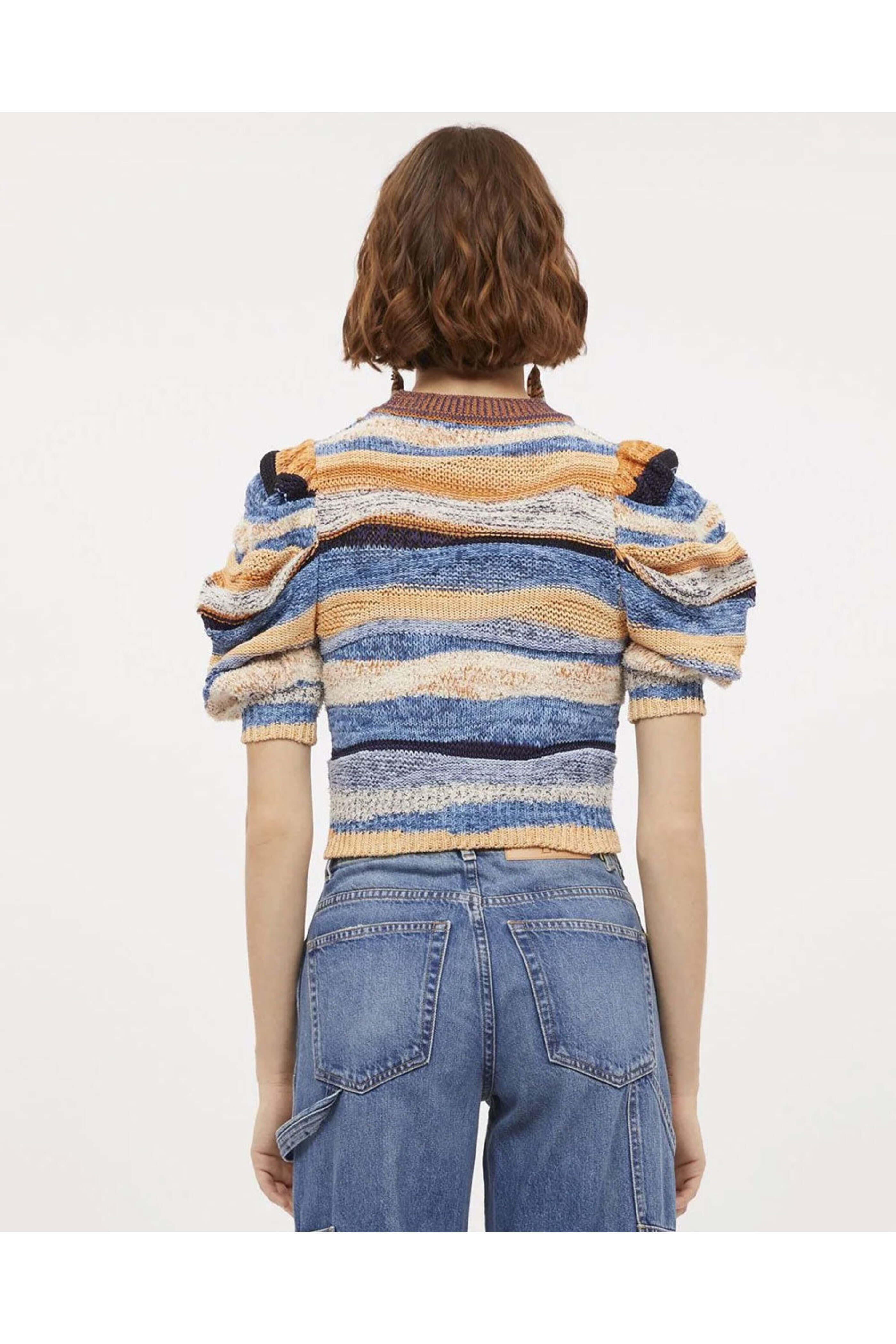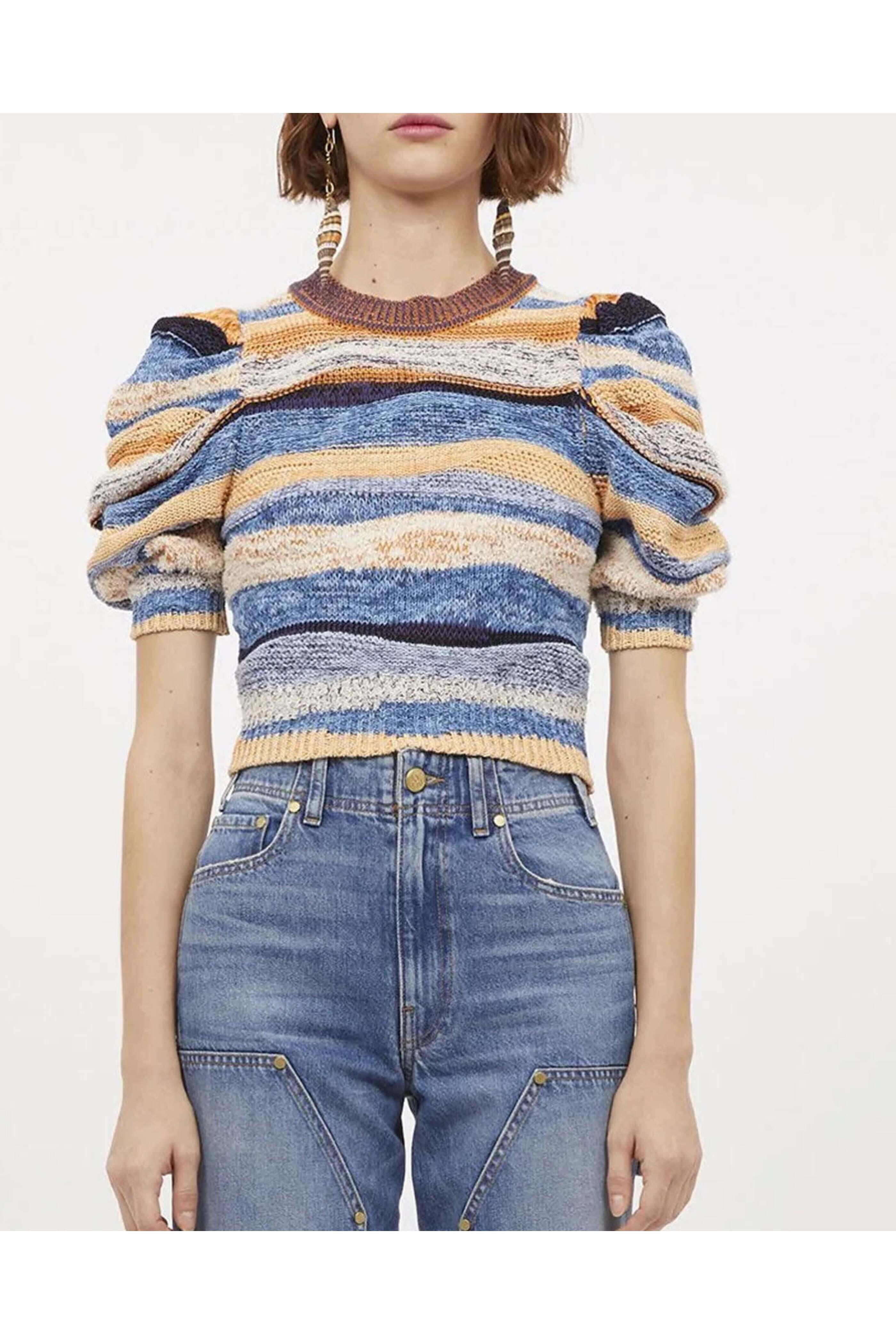 Ulla Johnson Aegean Odie Top. Crew neck . Puff sleeves . Relaxed fit . 86% cotton 14% nylon .