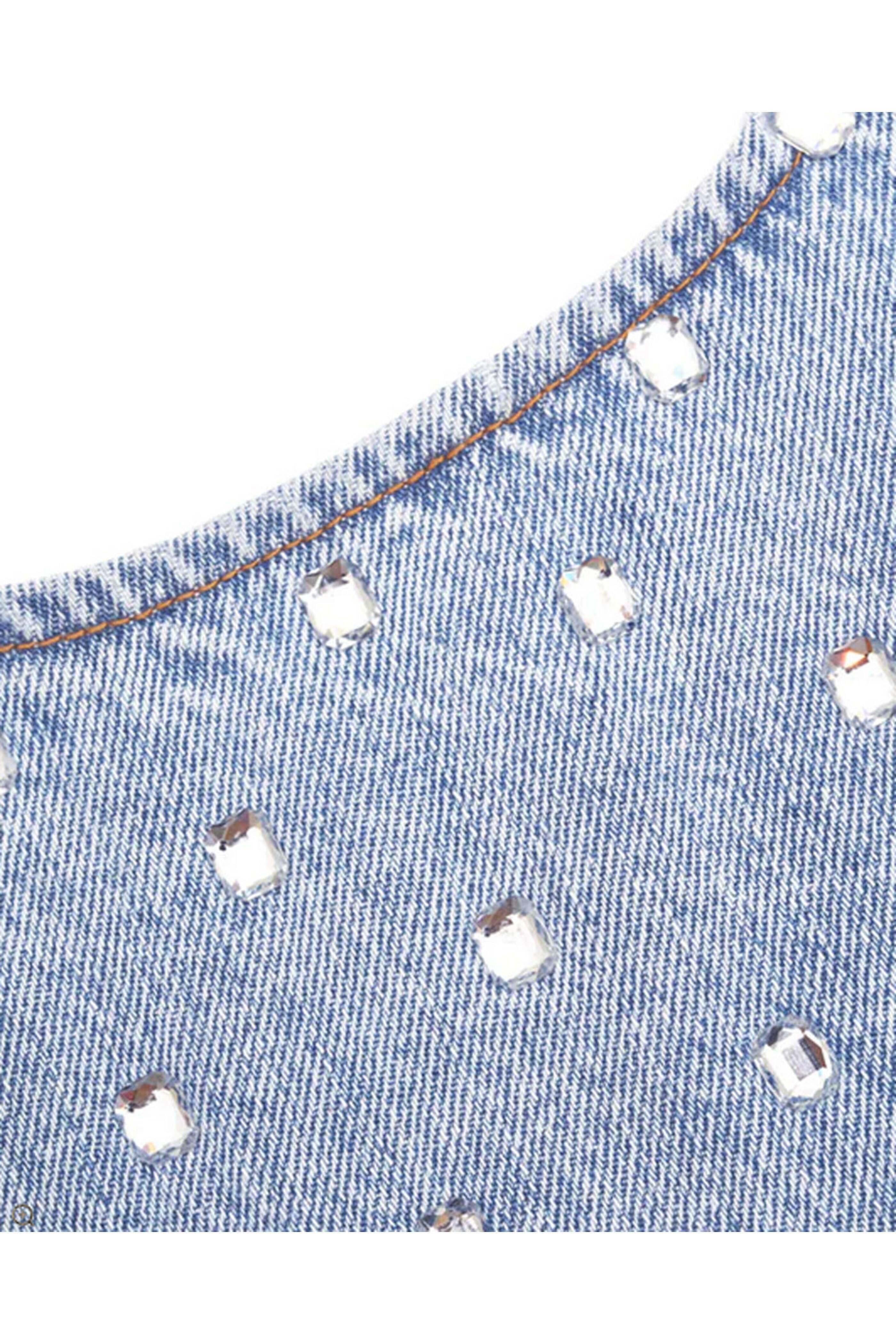 - Self-Portrait Light Blue Rhinestone Denim Mini Dress