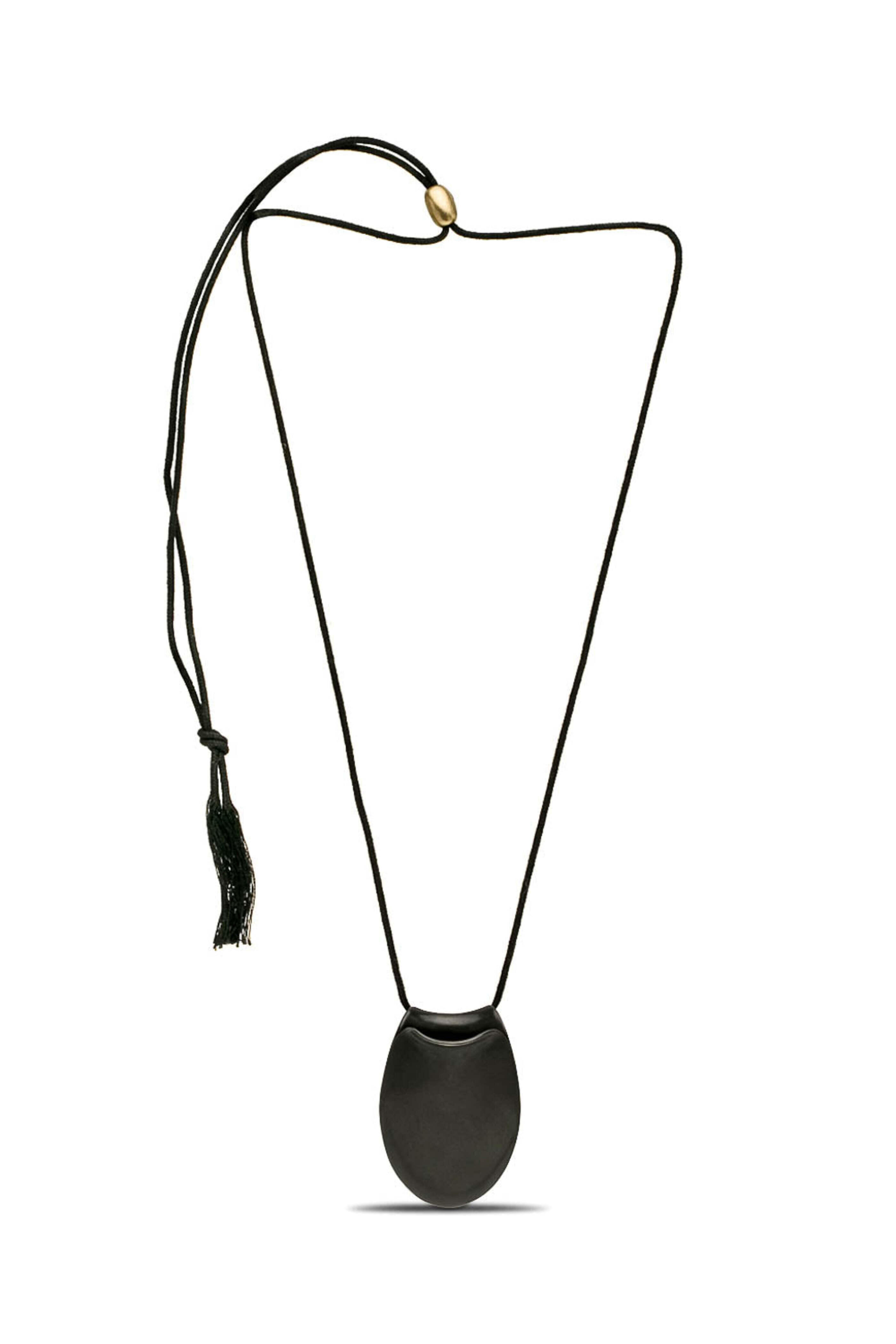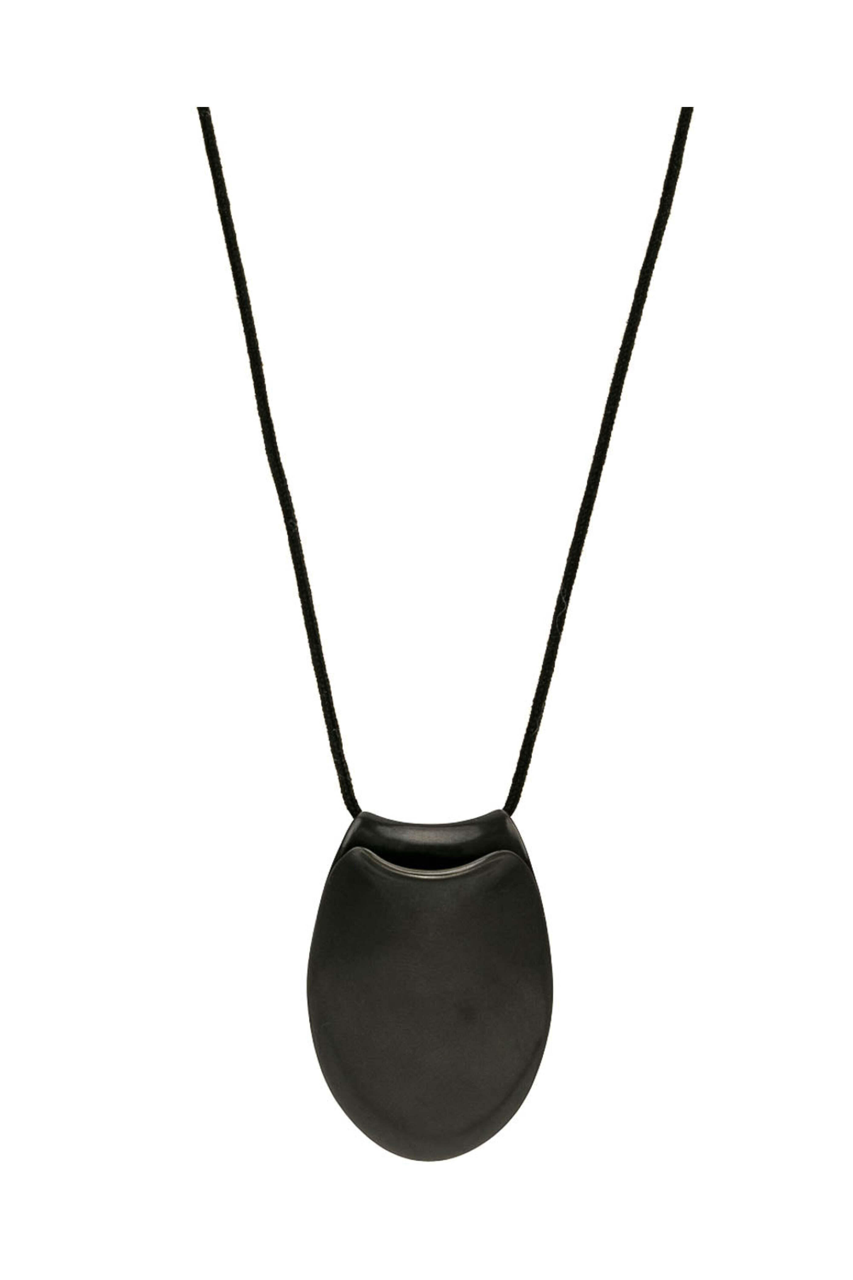 - Ted Muehling Black Turtle Box Pendant Black Silk Necklace 18k yellow gold Sterling silver Black cotton cord Black turtle box pendant Adjustable length Maximum length: 32 Pendant: 2 L x 1.5 W Pullover style