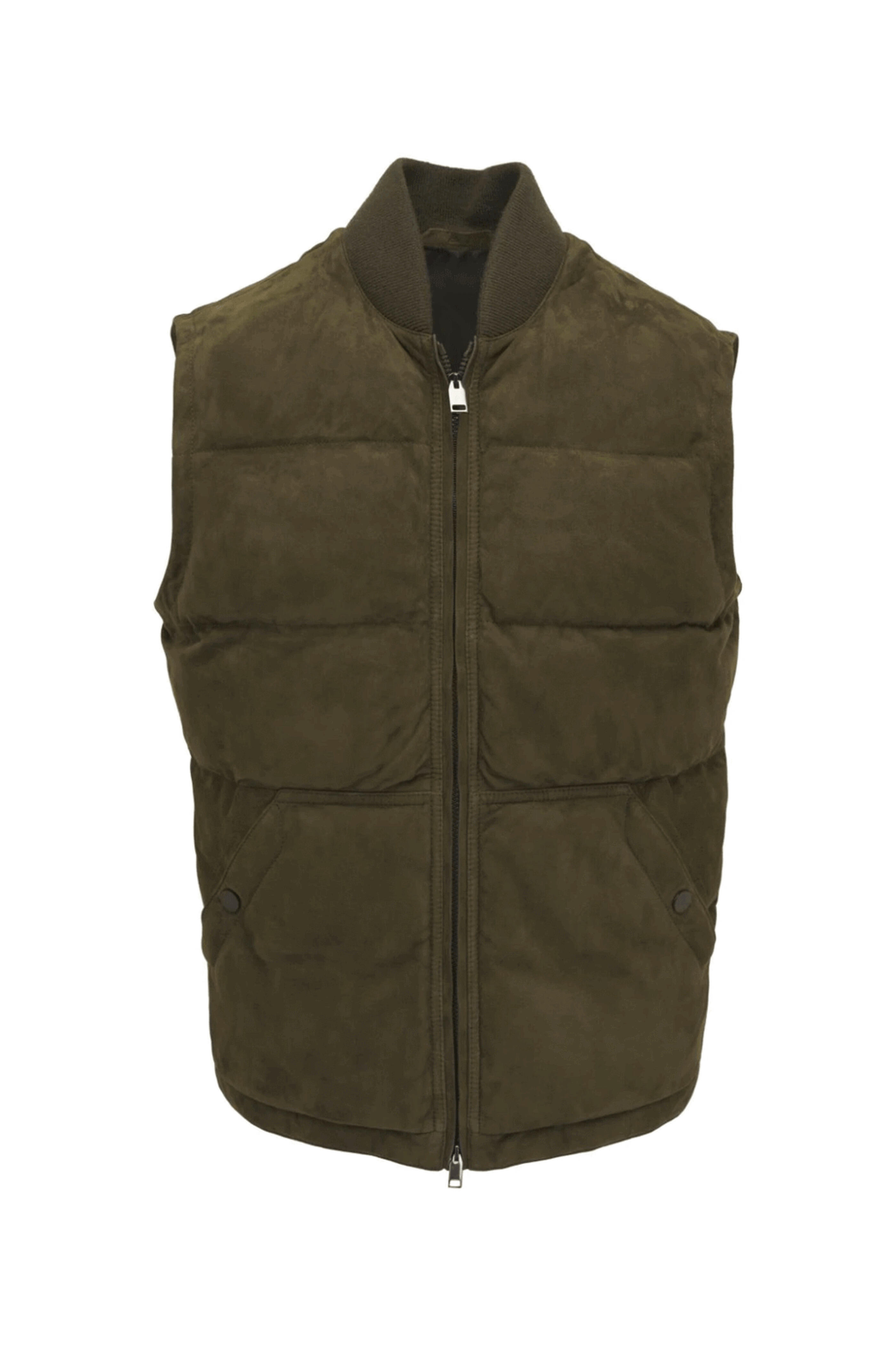 - Brioni Dark Green Suede Puffer Vest