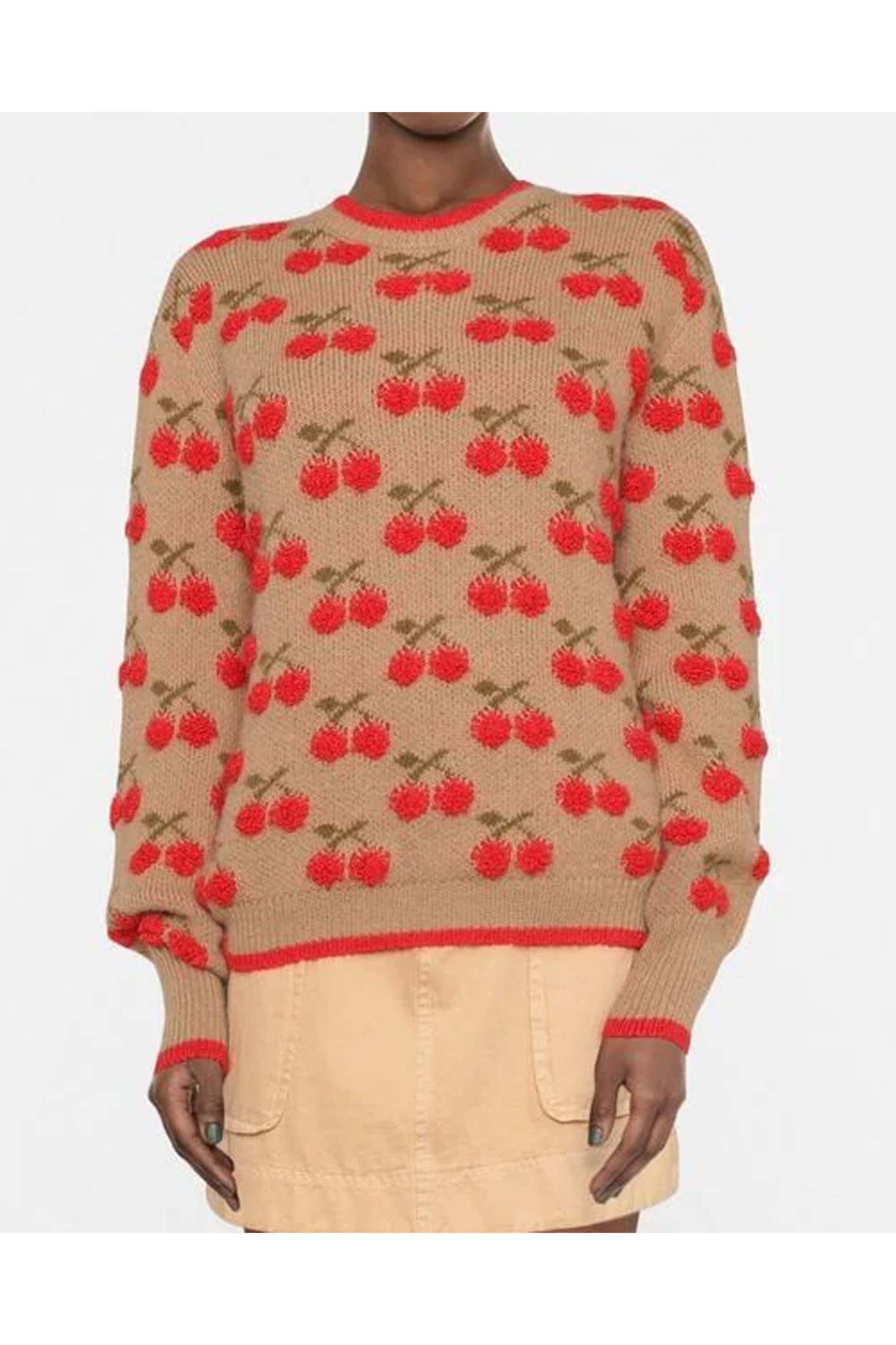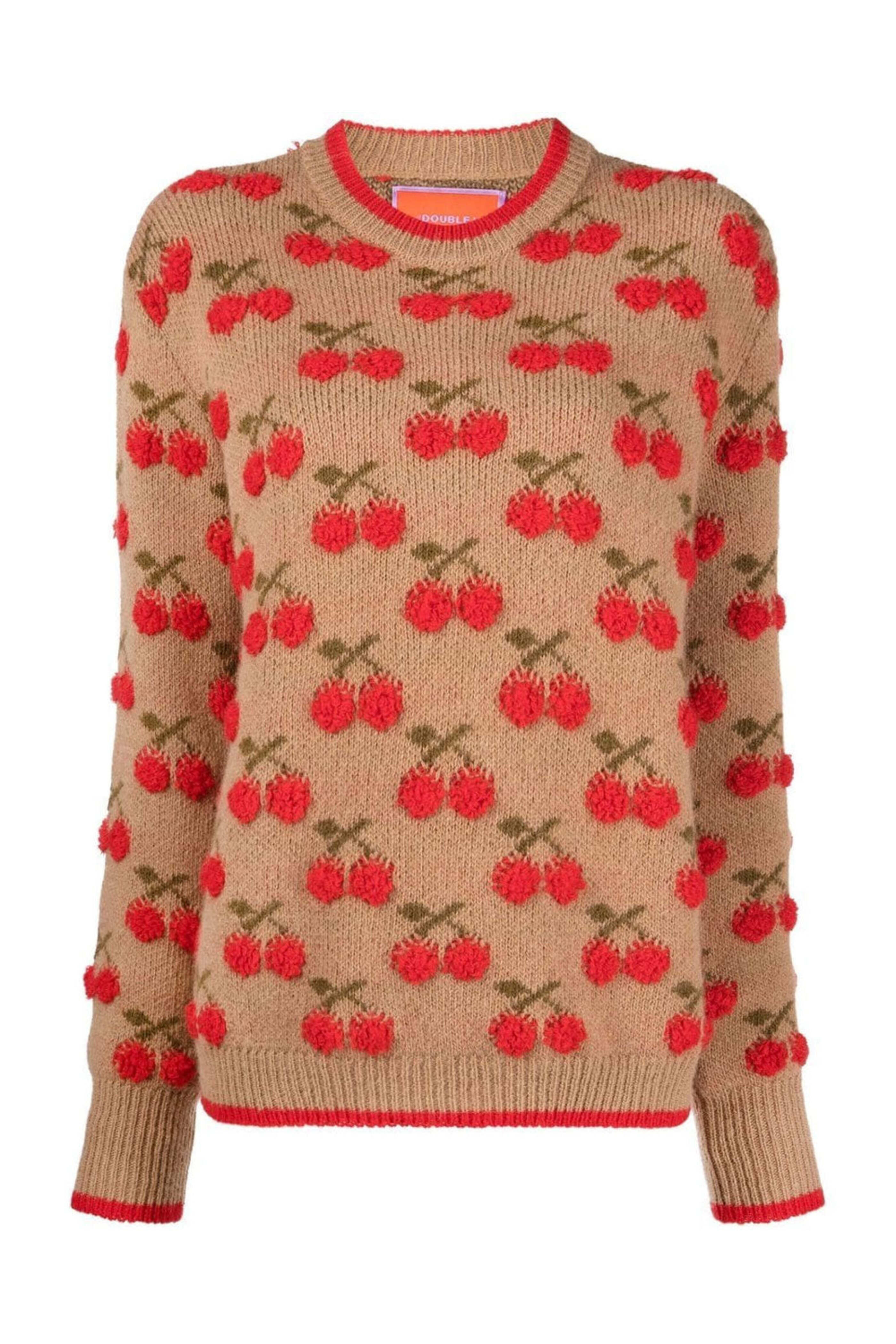 - La DoubleJ Camel Red Cherry Sweater