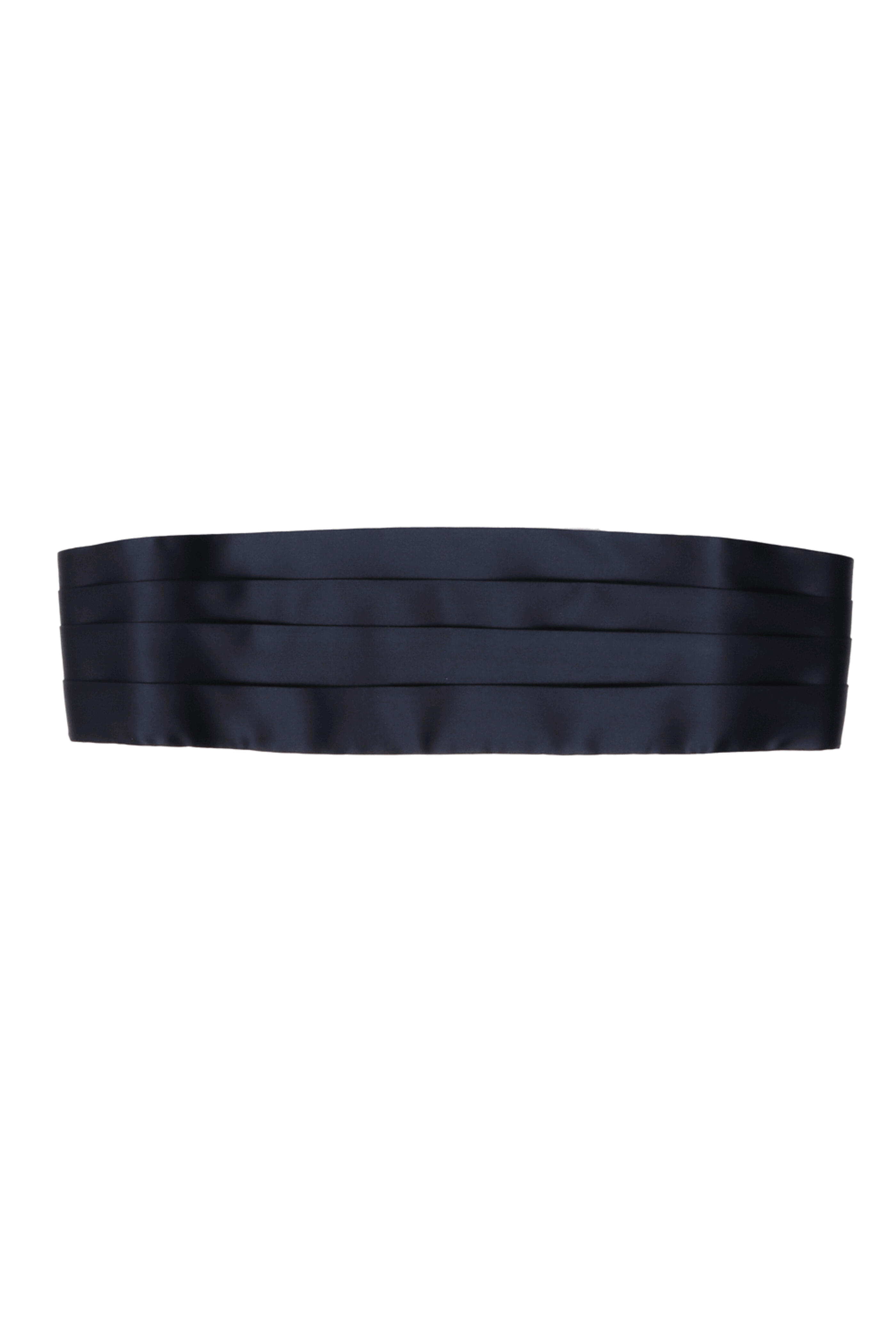 Brioni Navy Satin Cummerbund. Pleated front. Adjustable waist. Made in Italy .