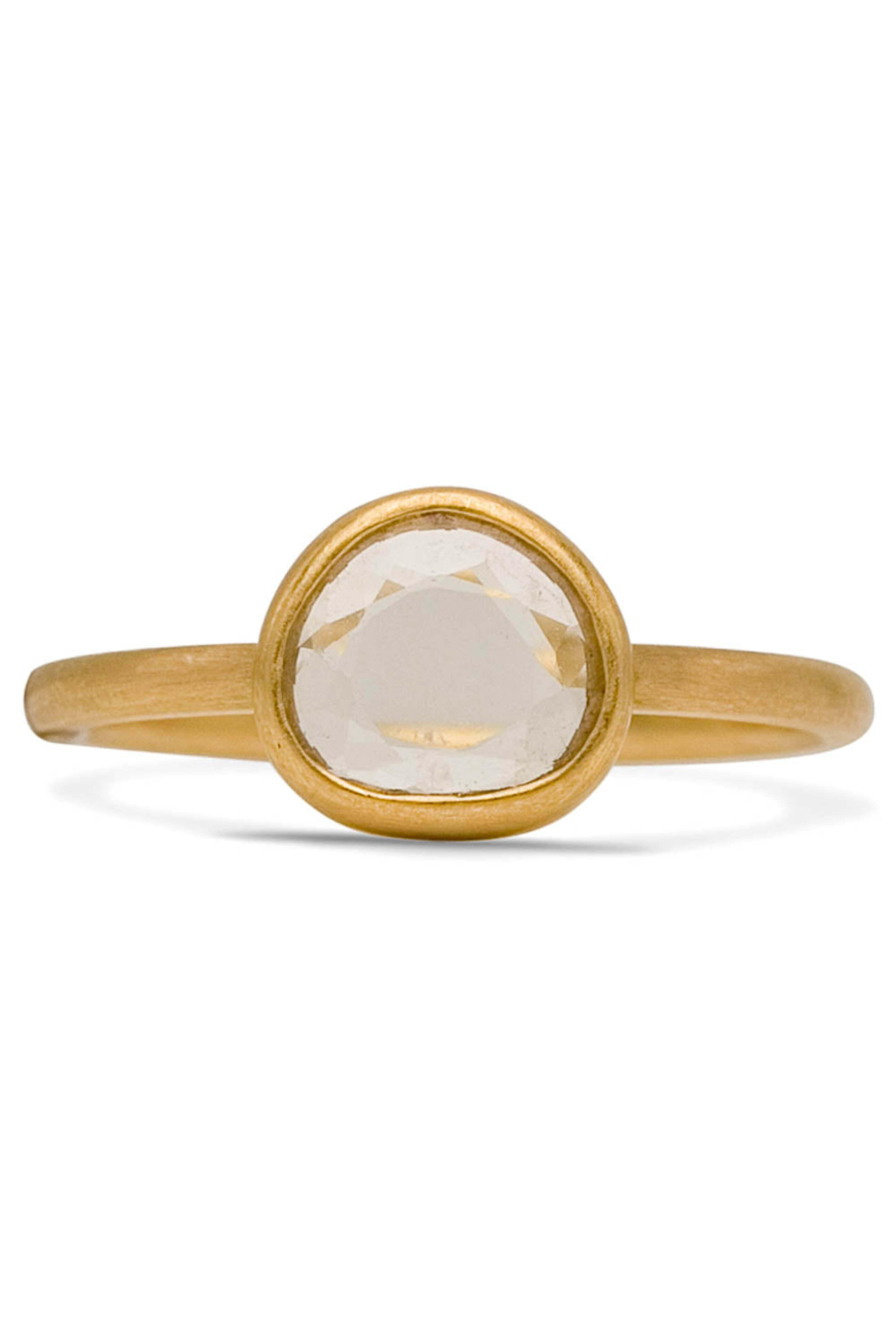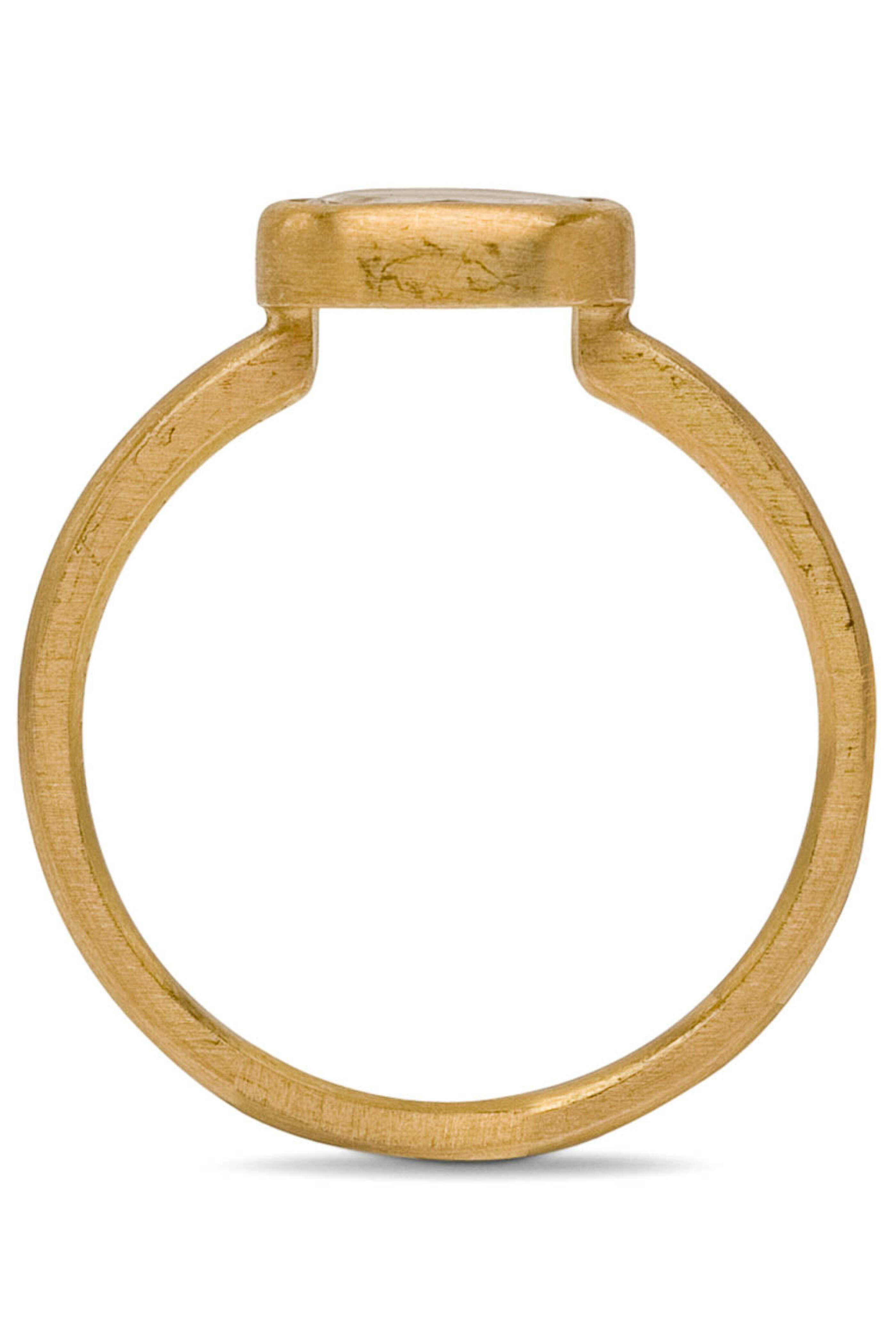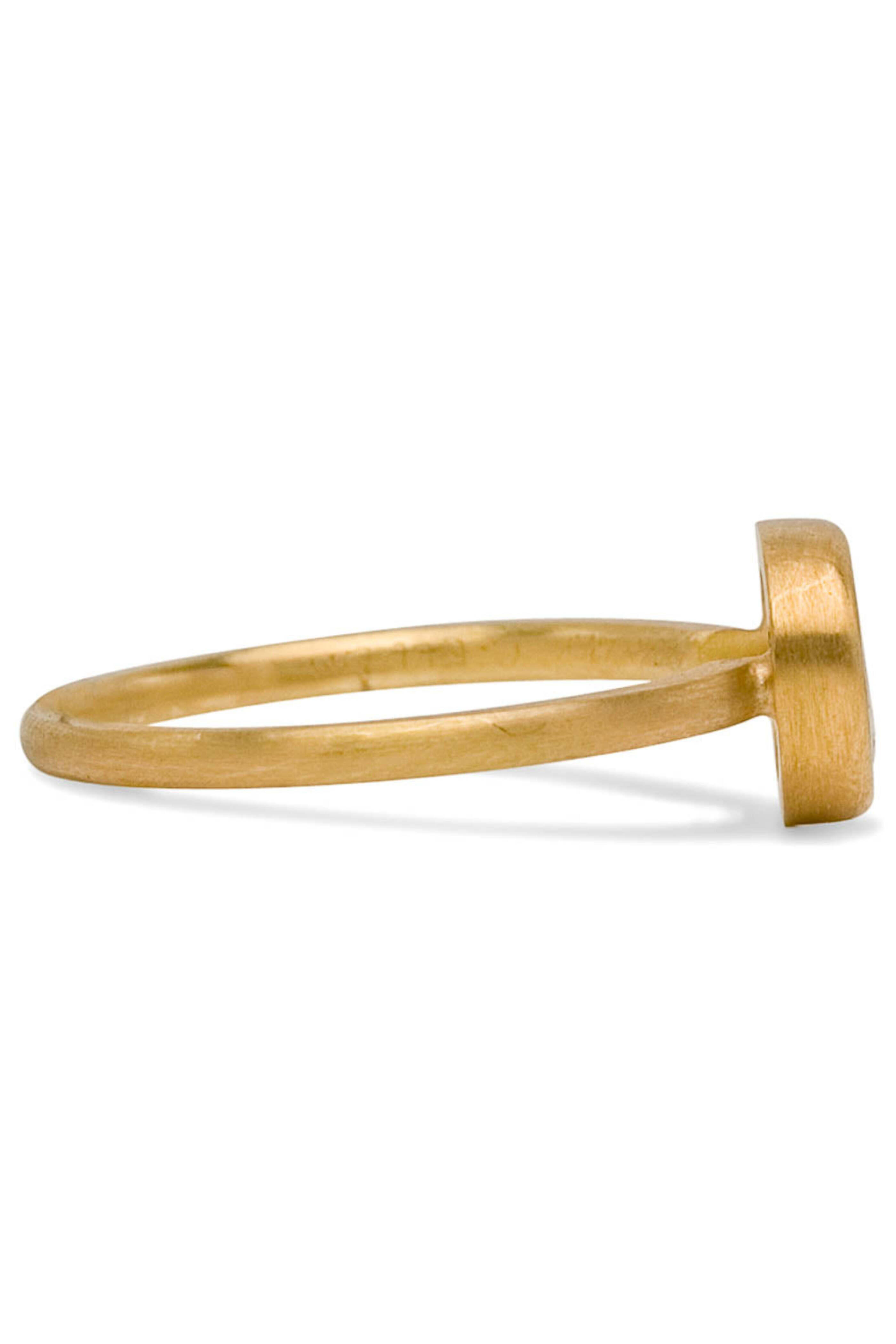 - Caroline Ellen Yellow Gold Rose Cut Round White Sapphire Ring 20k yellow gold band 22k yellow gold setting 0.92 ct. rose cut white sapphire Organic round shape Size 6.75