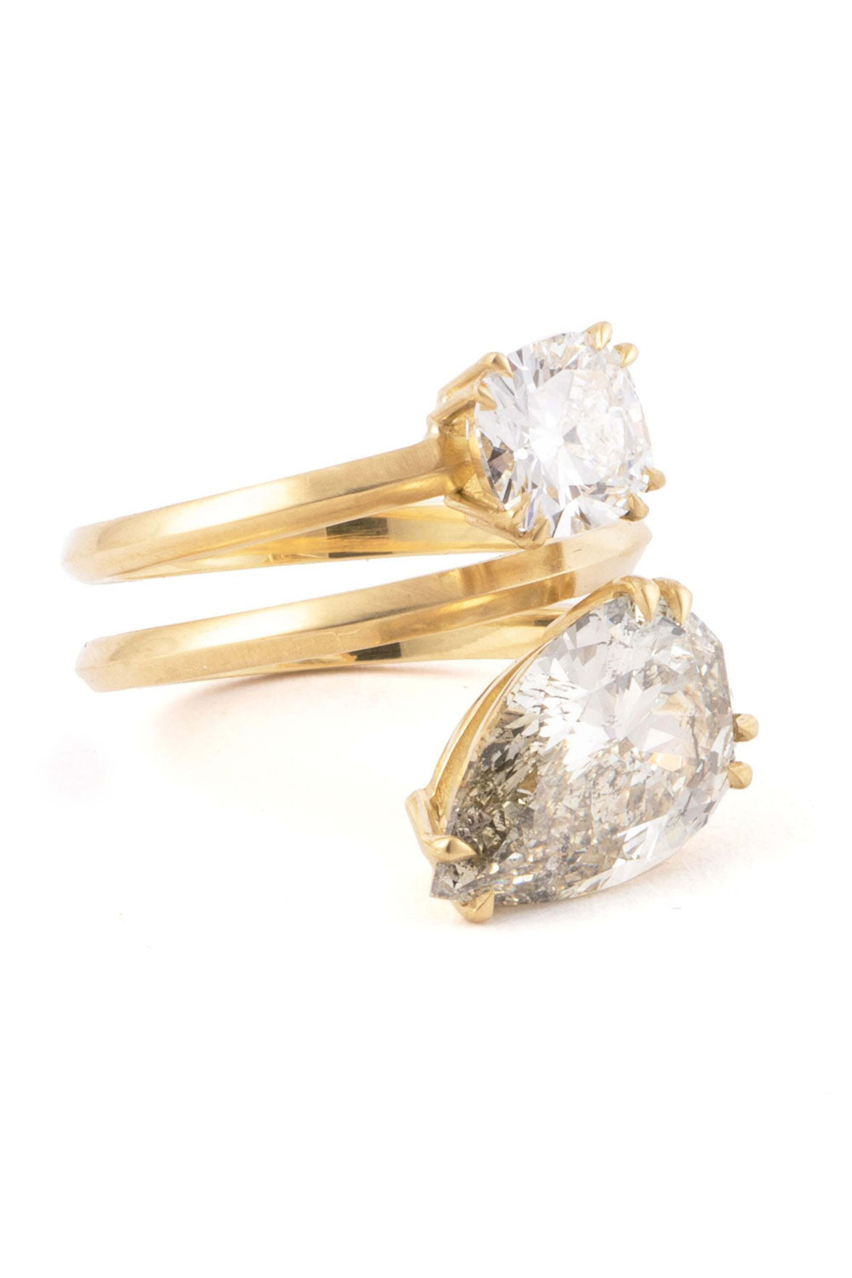 - Sylva & Cie Pear and Cushion Diamond Moi & Toi Ring