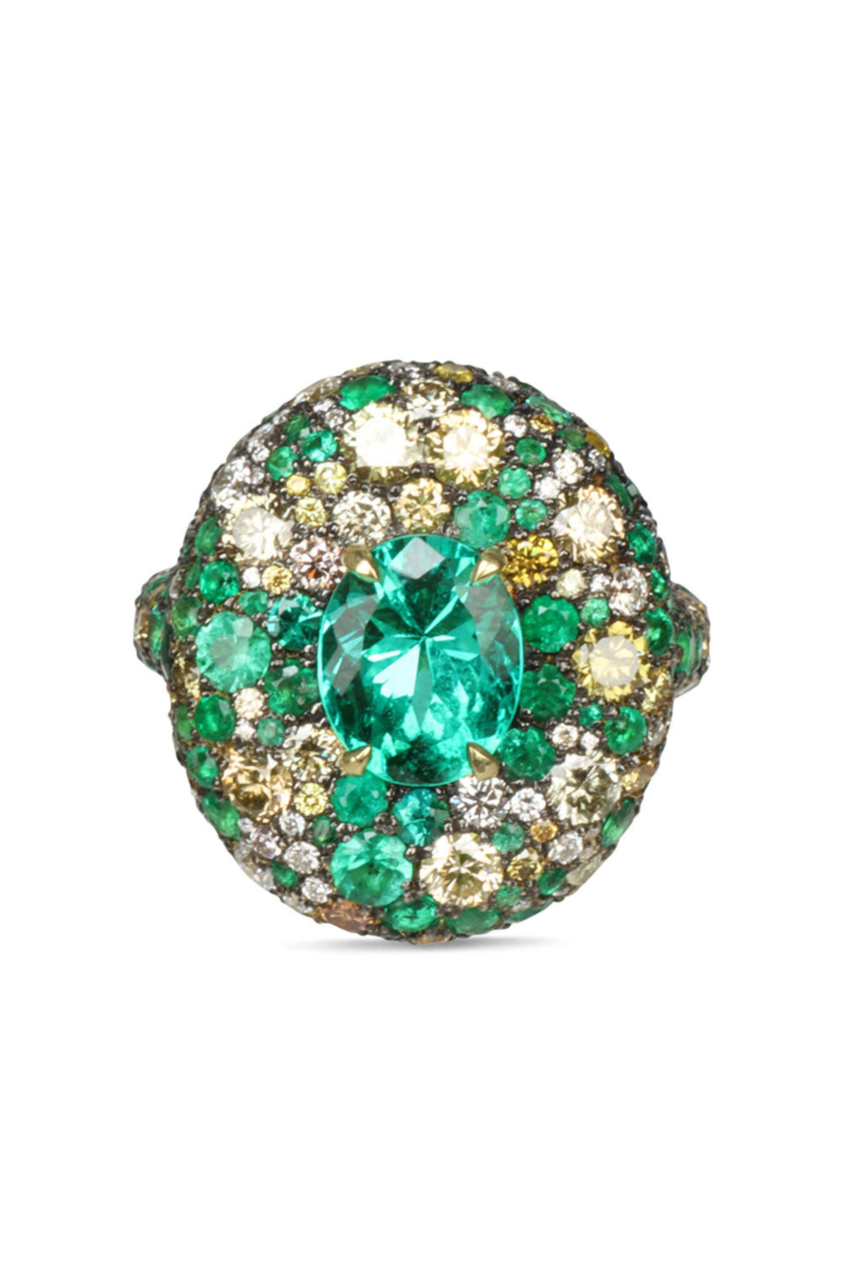 - Jared Lehr Columbian Emerald and Diamond Round Cocktail Ring