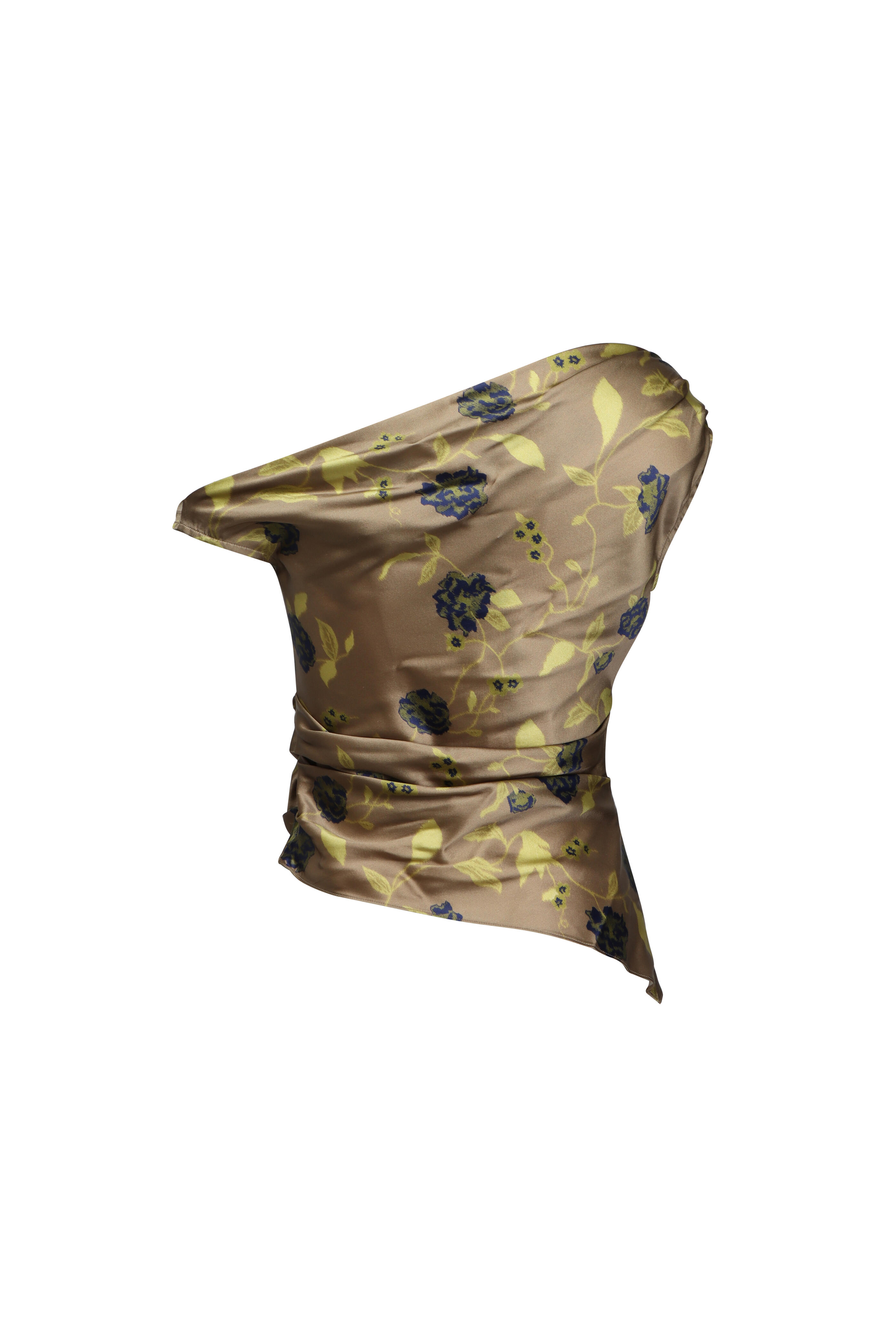Off the shoulder neckline. Short sleeve. Ruched detail. Slim silhouette. Straight hem. Imported. Bust 35.5” (US 4). Waist 29.5” (US 4). Length 21” (US 4). 93% silk, 7% spandex. Dry clean.